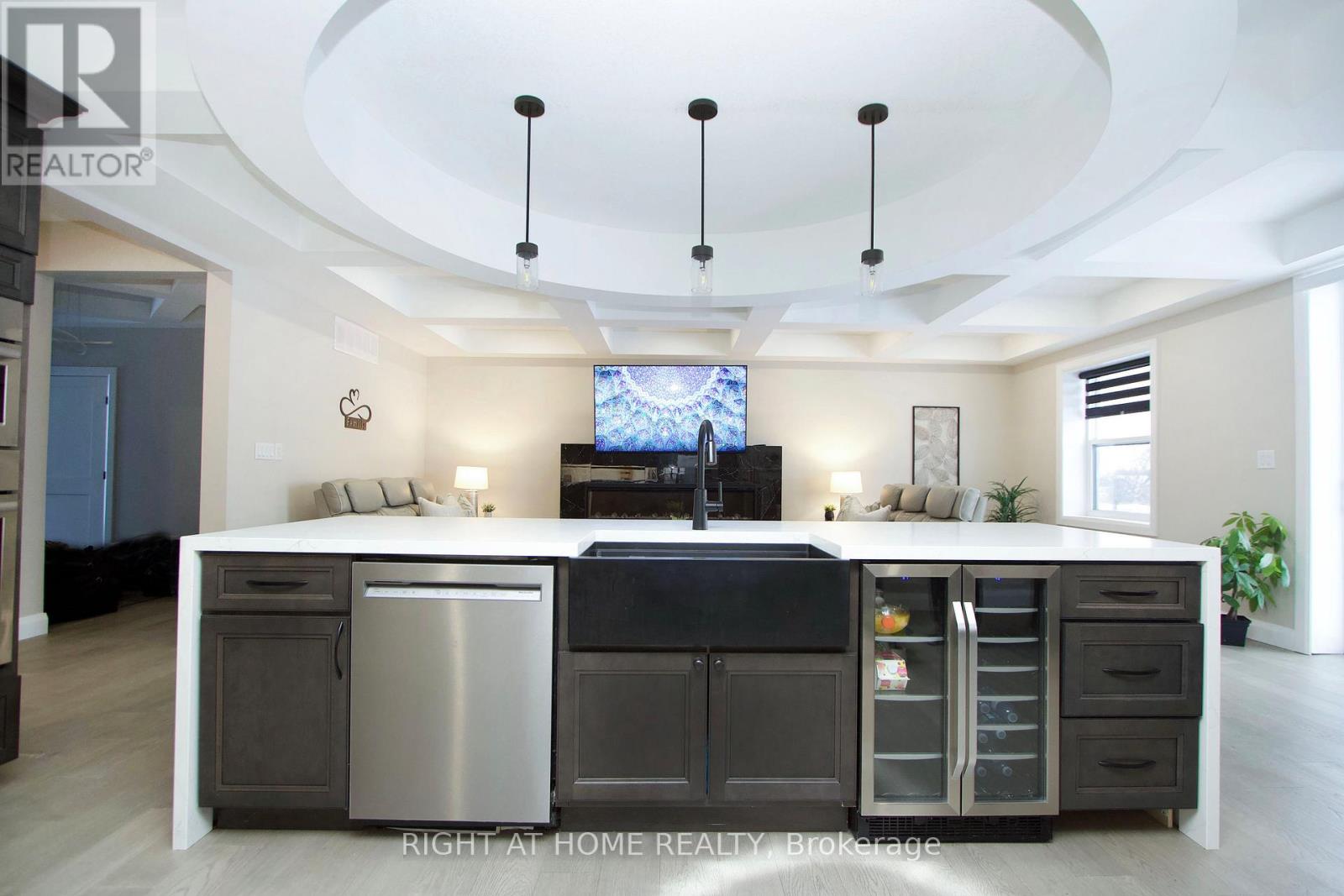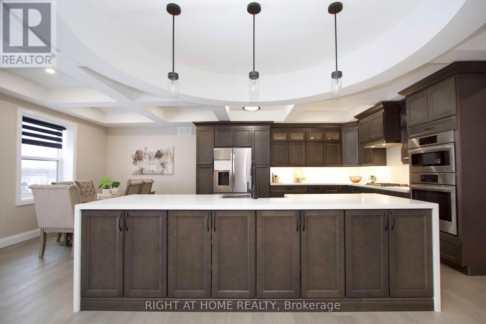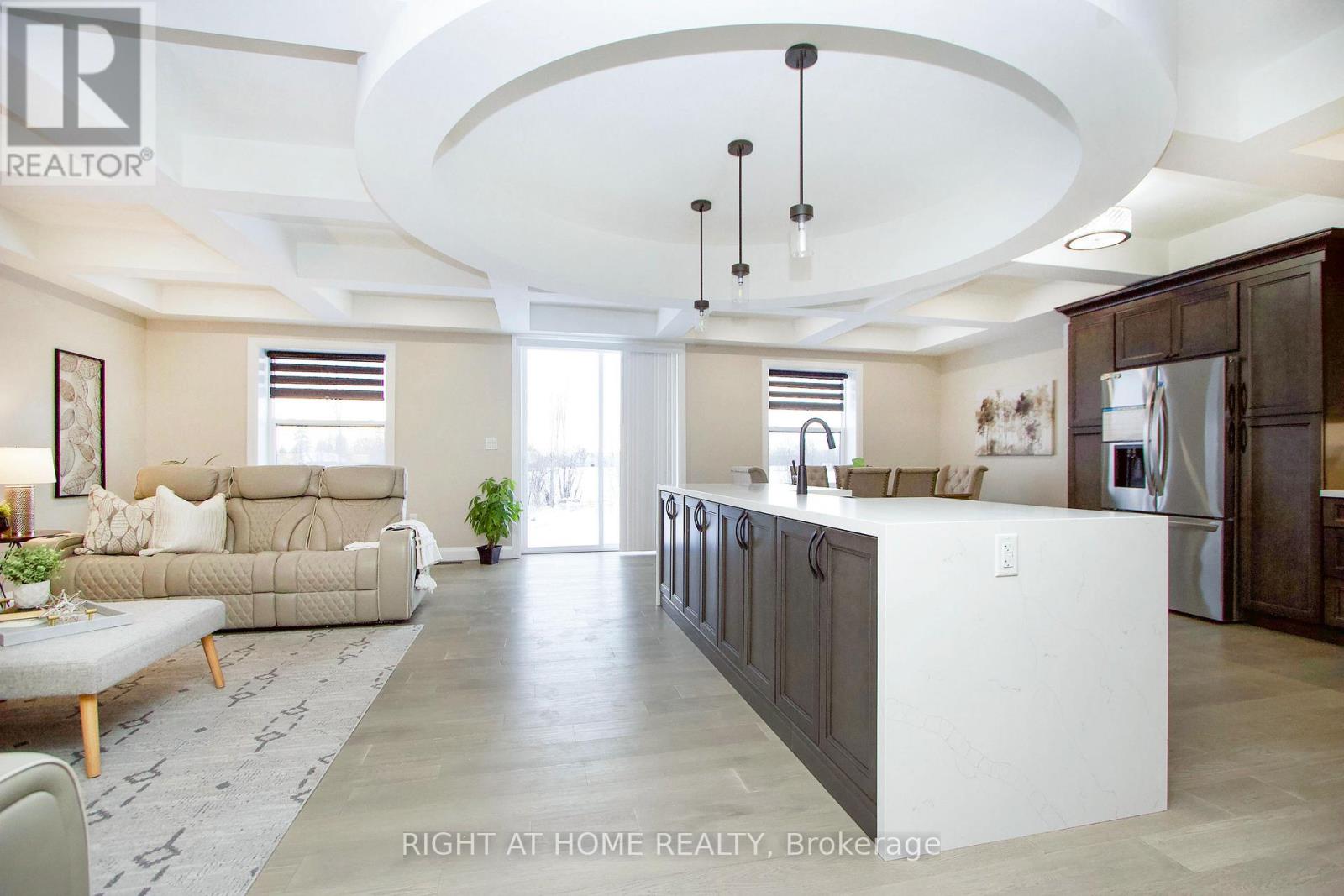 Exquisite Custom Raised Bungalow on 9.75 Private Acres in South Frontenac, Escape to your own private oasis just minutes from Kingston in beautiful South Frontenac. This stunning 5 + 2 bedroom, 3 + 2 bathroom raised bungalow offers over 7,200 sq ft of luxurious finished living space, combining superior craftsmanship, energy efficiency, and serene rural living on 9.75 acres with a tranquil private pond. Built with Insulated Concrete Form (ICF) construction, this home delivers exceptional durability, superior energy efficiency, soundproofing, and year-round comfort-perfect for modern family living or multi-generational households. Step into the grand foyer with luxury coffered ceilings that extend into the open-concept kitchen and living area, creating a dramatic sense of space and elegance.The expansive main floor ( 3600 sq ft finished) features convenient main-floor laundry, 5 spacious bedrooms, and high-end finishes throughout. Descend to the fully finished 3600 sq ft basement with a separate entrance & a dedicated in-law suite, rough-in for a second kitchen, radiant heated floors for ultimate comfort, multiple seating areas & a massive rec room. Car enthusiasts and hobbyists will love the massive 2000 sq ft Attached 3-car garage with in-floor heating and ample workspace.Outside, enjoy abundant parking for 12+ vehicles, expansive grounds ideal for outdoor entertaining, your very own private pond & Kids Playground - a peaceful retreat for relaxation or recreation.This rare property perfectly blends luxury, privacy, and convenience in one of Eastern Ontario's most desirable rural settings. 8 Min to Kingston, 13 min drive to Costco, Walmart, Rona + Much more. Close to Sought after schools, Queens University, St. Lawerence College & So much more. Don't miss this extraordinary opportunity! (id:64974)