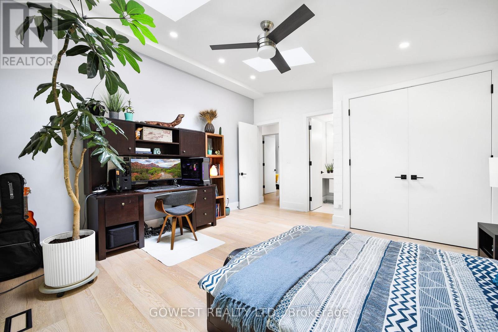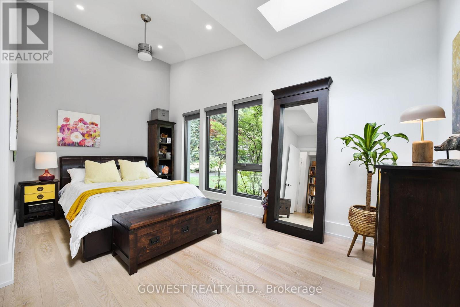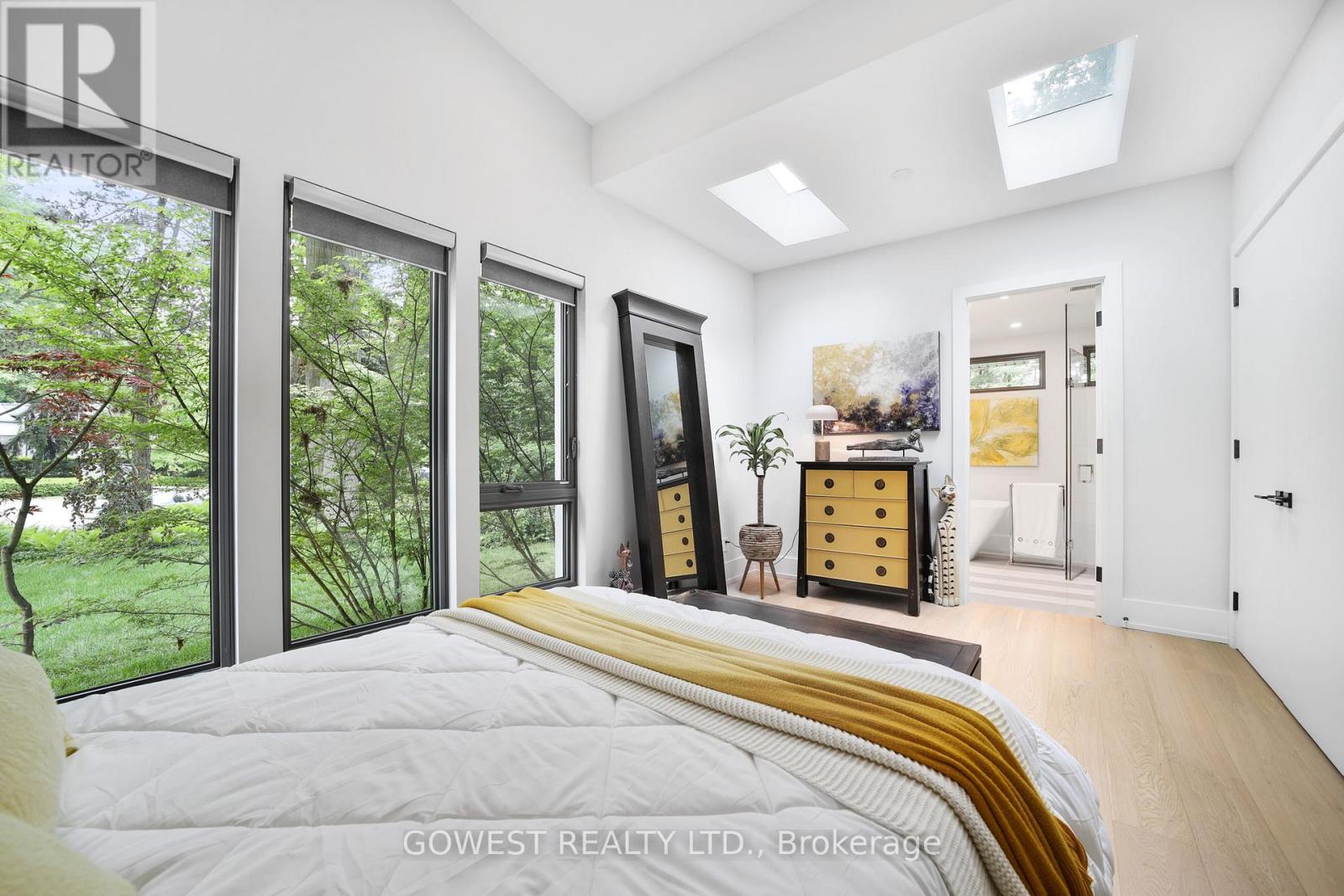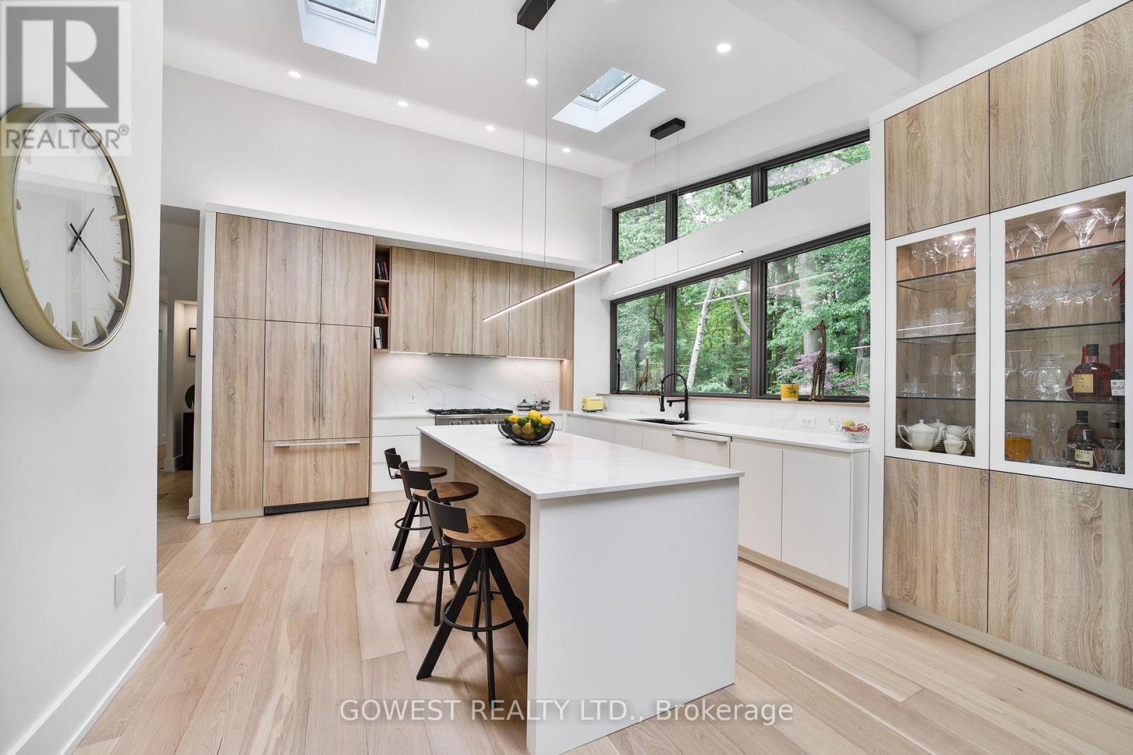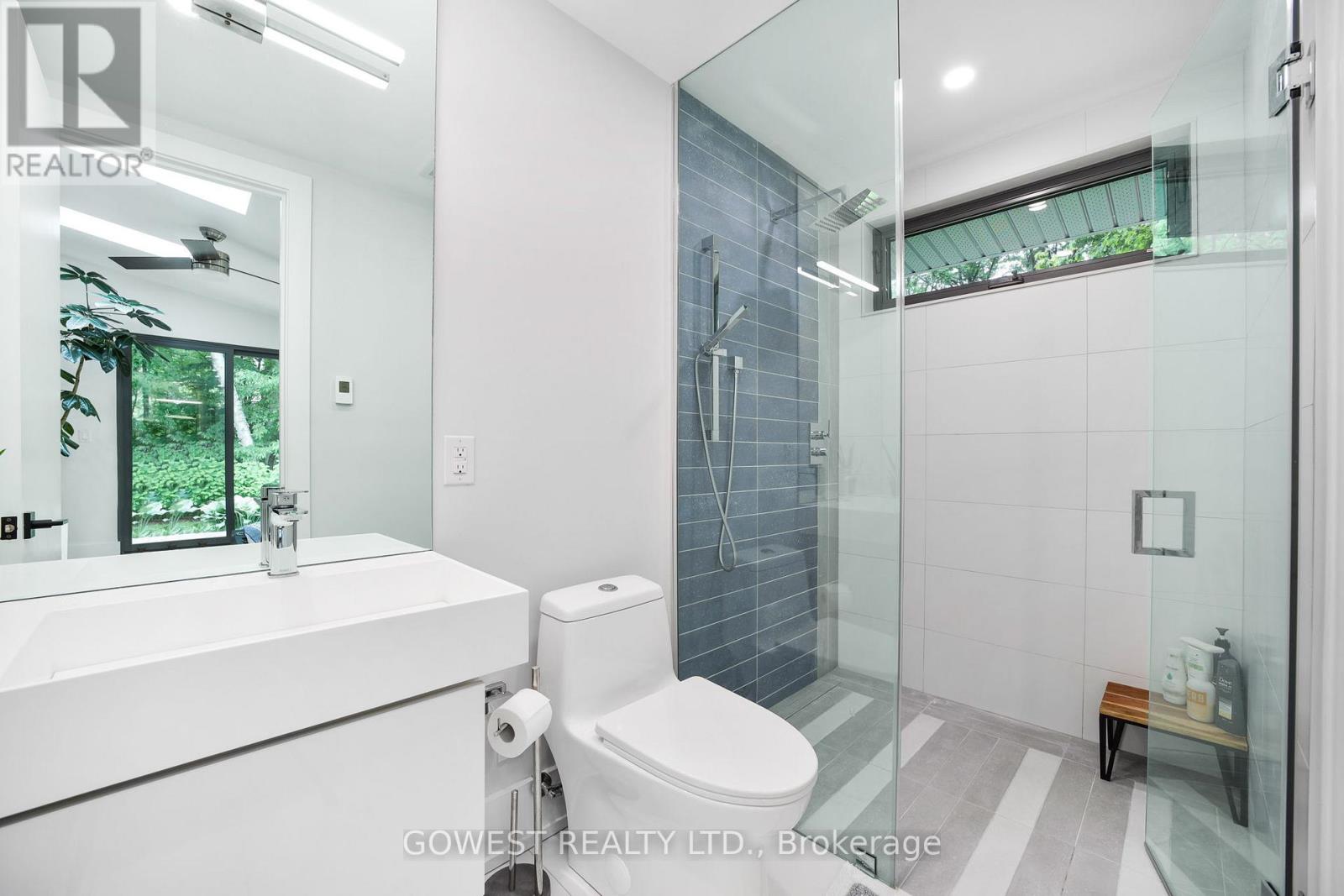 Modern luxury renovated bungalow on a massive, third-of-an-acre pie-shaped lot, backing into a park. Almost 3800 square feet of the total luxury finished livable space. Situated at the end of a quiet cul-de-sac on one of the most prestigious streets in South-East Oakville. Surrounded by mature trees, the west-facing backyard provides year-round privacy. Upon entering, you are greeted by soaring ceilings, skylights and 13-foot Inline Fibreglass windows providing a direct view into the private, treed backyard and patio. Complementing the great room with a fireplace is a spacious and modern kitchen, dining room, powder room, mudroom and laundry. There are three bedrooms on the main level, two with en-suite bathrooms, and the third is currently used as a home office. The lower level has been completely redesigned and can function as a separate unit with its own entrance or as an in-law or nanny suite. Complete with a large open concept living room and kitchen, there are three bedrooms, two bathrooms, a gas fireplace and a dedicated laundry. All upgraded "Inline" fibreglass windows throughout. All upgraded electrical with 200 Amp Service, All Upgraded Gas Line. The house has a double-car garage with a Tesla charging station, a large park-like, landscaped lot with a storage shed and big patios. Cul-de-Sac in South East Oakville with a gorgeous forest view! Not to be missed! **EXTRAS** Please note the house is backing into a park - but it's not subject to conservation authority - for a client interested in future development. It's approximately 216' across the back of the property. Original Survey attached. Brand New Commercial Flat Roof with Skylights installed in 2025. (id:64974)