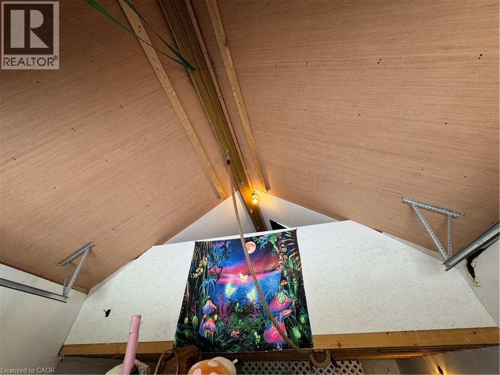 Experience the perfect blend of 1915 historic character and modern versatility in this gable-roofed century home. Nestled in the vibrant heart of downtown Guelph, this residence offers an unbeatable walk ability score (bus stop close) and timeless charm that is increasingly rare. As you approach, the unique cement and green living driveway immediately stands out. This eco-friendly, permeable system blends structural durability with natural aesthetics, creating a living parking surface that naturally manages storm water runoff and recharges the local water table—a perfect match for the environmentally conscious homeowner. Step from the welcoming front porch into a light-filled interior boasting original hardwood floors and sun-drenched living spaces. The main floor transitions seamlessly from a bright dining room into a cozy living area anchored by a classic red gas stove. The kitchen is a chef’s delight, featuring natural wood cabinetry and a double gooseneck sink overlooking the side yard. Nearby, a semi-finished mudroom awaits your final creative touch. Upstairs, you will find a primary suite featuring custom 8-drawer, 3 door built-in storage, maximizing every inch of the home's historic footprint. The true show-stopper is the 2020-built, $47k+ custom garage and studio. Professionally equipped with an air-source heat pump for year-round assistive energy-efficient climate control and a loft bed/den lit by skylights, this space is a dream for remote professionals, artists, or fitness enthusiasts. Enjoy total peace of mind with extensive high-ticket upgrades already completed: 2023: New professional roof ($6,275) and a modern water softener. 2022: Full bathroom remodel ($9,715) featuring chic subway tile and a unique peek-a-boo shower window. 2017: High-efficiency furnace, AC, and water heater ($9,492). Own this downtown Guelph gem for approximately $2,367/month (P&I) based on 20% down, 3.79%, 5-year term, 25-year amortization. (id:64974)