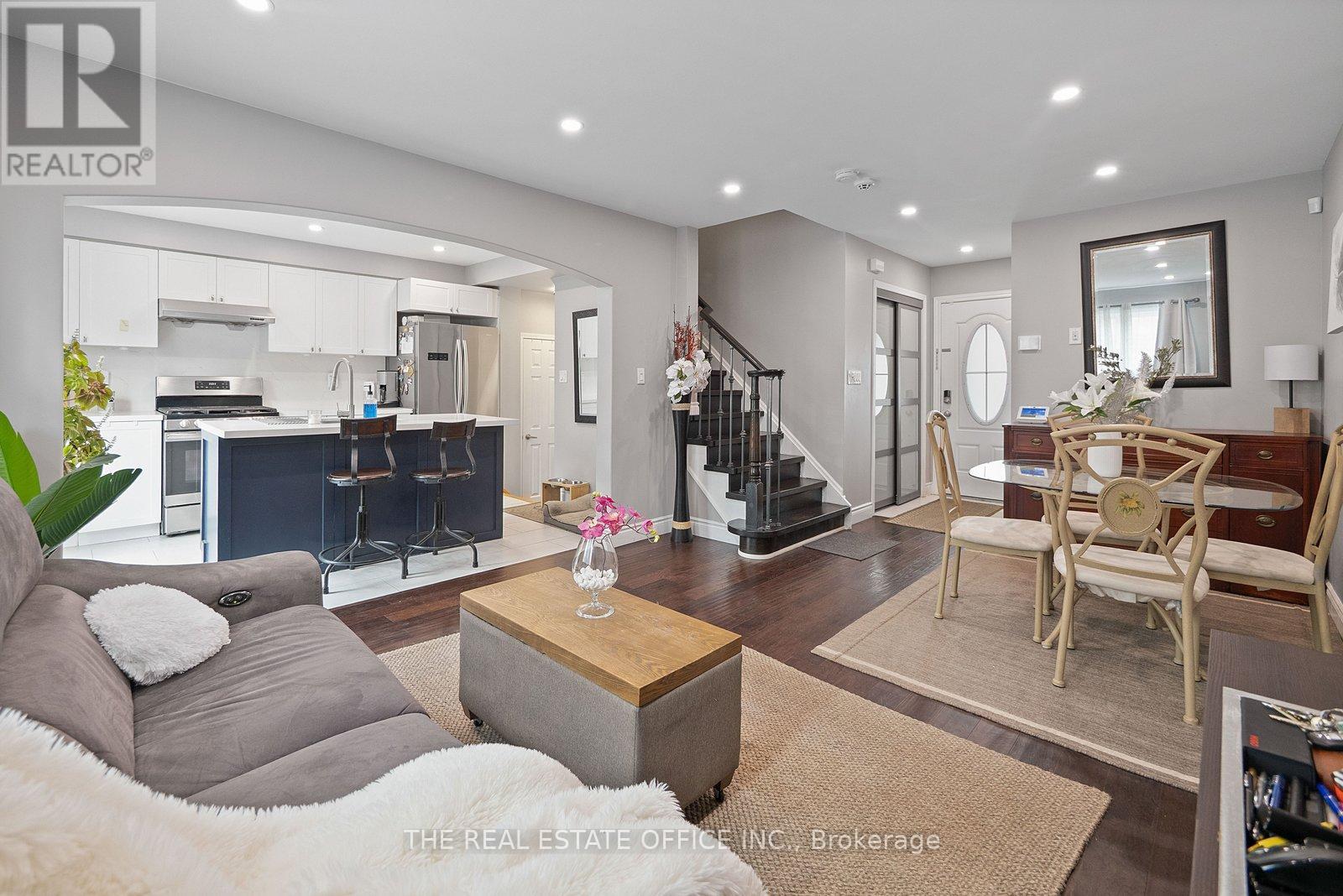 Newly renovated and spacious 3-bedroom, 2-bath townhouse located on a quiet court in a highly convenient neighbourhood. Thoughtfully designed open-concept layout featuring a bright and expansive great room with dark hardwood flooring. Upgraded eat-in kitchen with stainless steel appliances and a center island, perfect for everyday living and entertaining. Generous bedrooms including a large primary suite with a 3-piece ensuite. Desirable north-east exposure fills the home with abundant natural light. Just steps to grocery stores, restaurants, banks, daycare, and public transit, and close to top-rated schools including PL Robertson PS (English & French programs up to Grade 8). A smart move for families or investors alike! (id:64974)