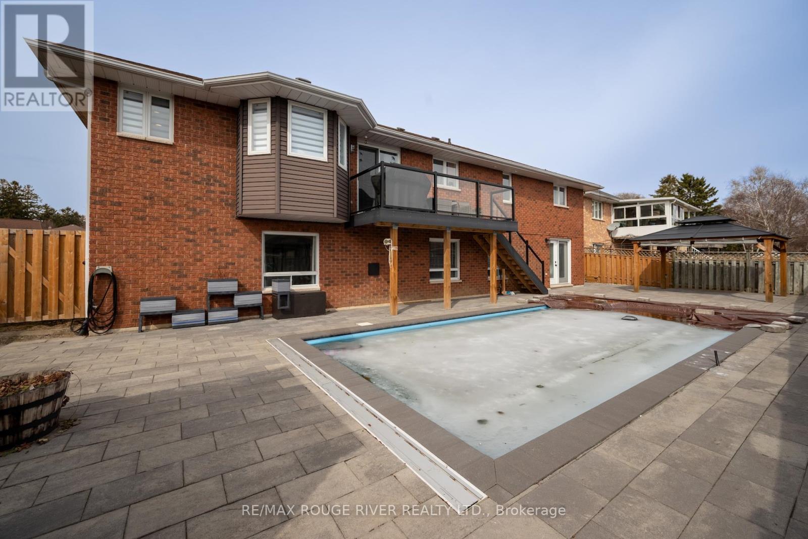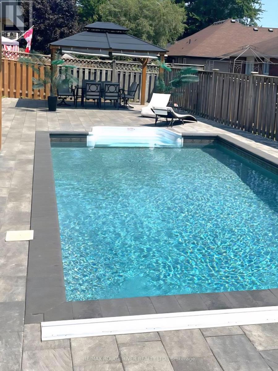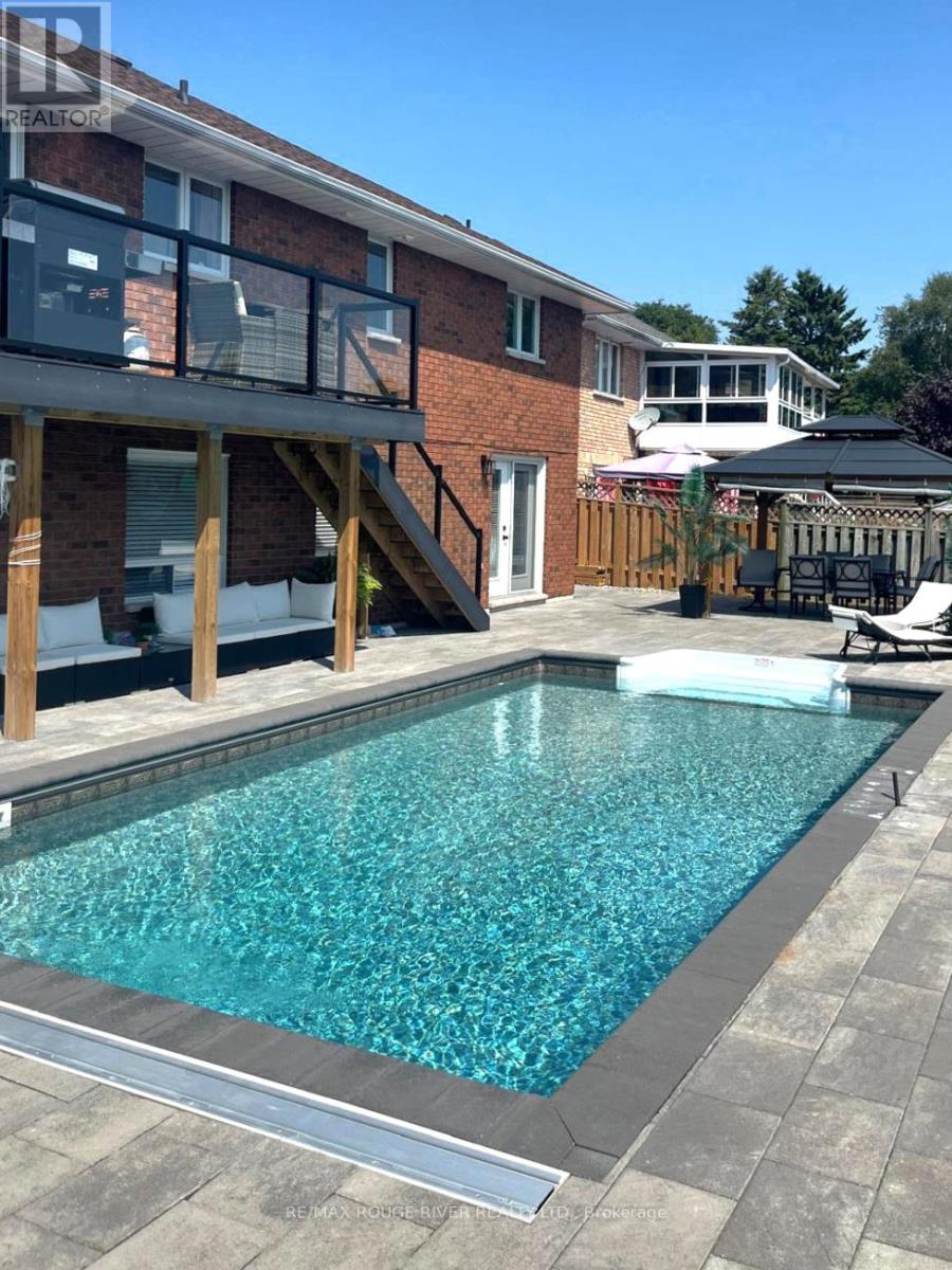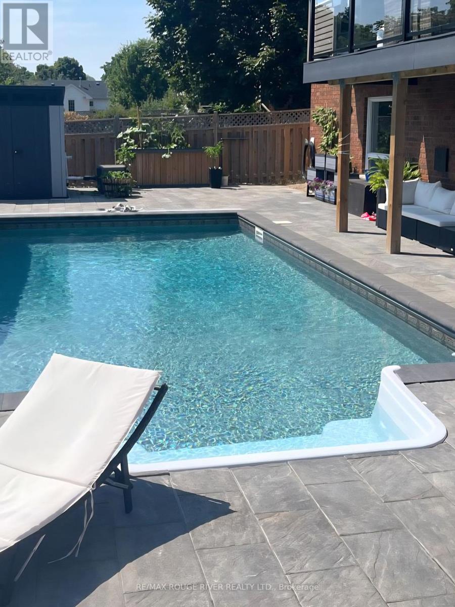 Nestled in a quiet court within one of Cobourg's most desirable neighbourhoods, this solid brick bungalow blends timeless charm with elevated, modern living, just minutes from the heart of town and the YMCA. Thoughtfully renovated with both style and function in mind, the home showcases a bright, open-concept living, dining, and kitchen space designed for effortless everyday living and entertaining. Just off the kitchen, a versatile office or den offers the perfect retreat for work or quiet moments. Step outside to a sun-drenched deck overlooking a stunning heated saltwater pool, your own private backyard oasis, designed for laid-back luxury, summer gatherings, and total relaxation. The main floor features two spacious bedrooms and two beautifully appointed bathrooms, including a serene primary suite complete with a spa-like ensuite and walk-in closet. Main-floor laundry and direct garage access add an extra layer of everyday convenience. The lower level continues to impress with high ceilings, oversized windows, and patio doors that lead seamlessly to the backyard retreat. A cozy gas fireplace anchors the inviting family room, while a third bedroom and full bath provide ideal space for guests or extended family. The unfinished area offers incredible flexibility, ready to be transformed into a recreation space, home gym, hobby area, or in-law suite .The three-car garage is a rare and exceptional feature, offering ample space for vehicles, storage, and all your toys, complete with convenient direct access to the basement. (id:64974)