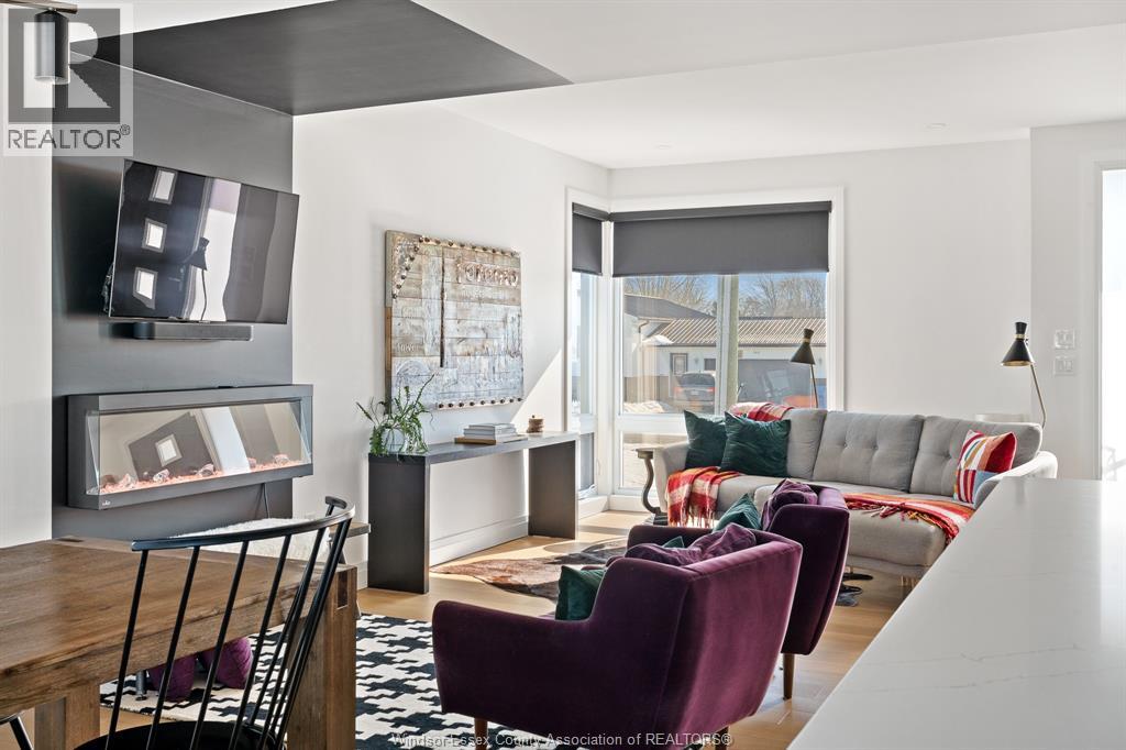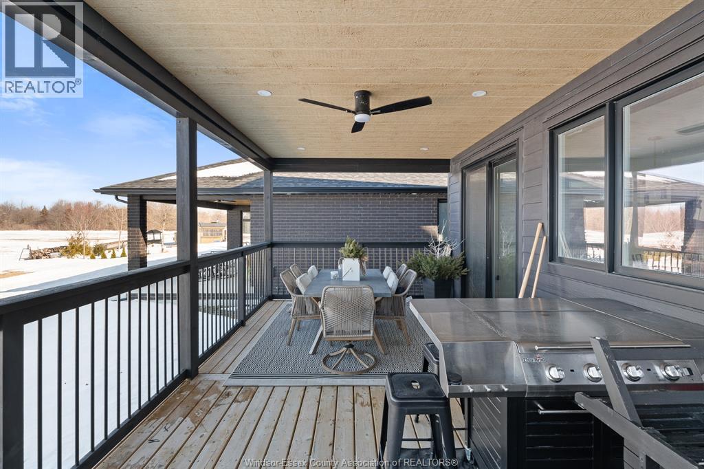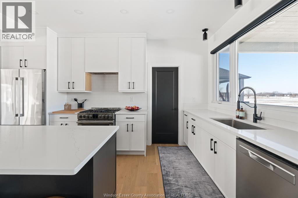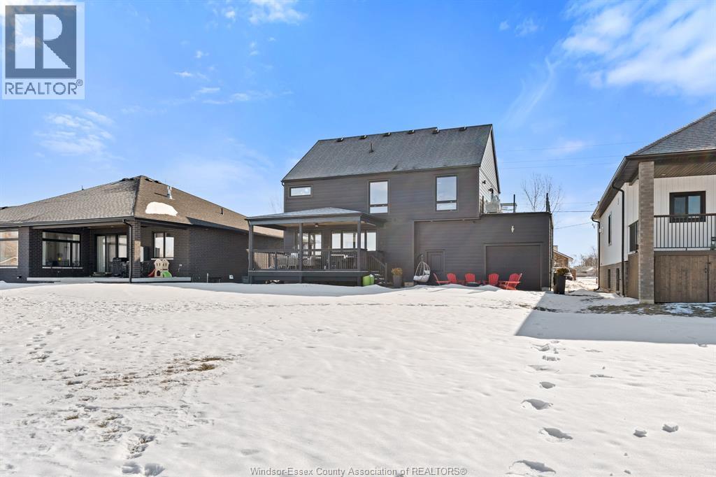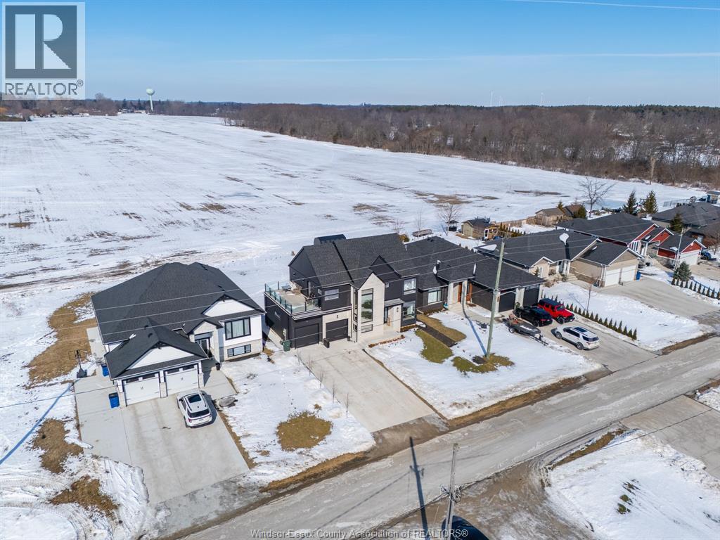 Modern design meets comfort in this stunning, 2-storey. Featuring 4 bedrooms and 3.5 baths, including a gorgeous primary suite with walk-in closet, walk-in shower, and soaker tub. The bright, open kitchen offers a centre island, walk-in pantry, and all major appliances included. The finished lower level boasts 10-ft ceilings, a cozy gas fireplace, and full bath. A wet bar opens to a 25' x 12' rooftop terrace with glass railing — perfect for relaxing or entertaining. Enjoy premium finishes throughout including James Hardie siding, a full-stone entrance, covered rear porch, concrete driveway, and rear pad off the tandem garage door. Steps from Lake Erie and Holiday Harbour, and just minutes to Leamington. Move in and start living your lakeside lifestyle today! (id:64974)