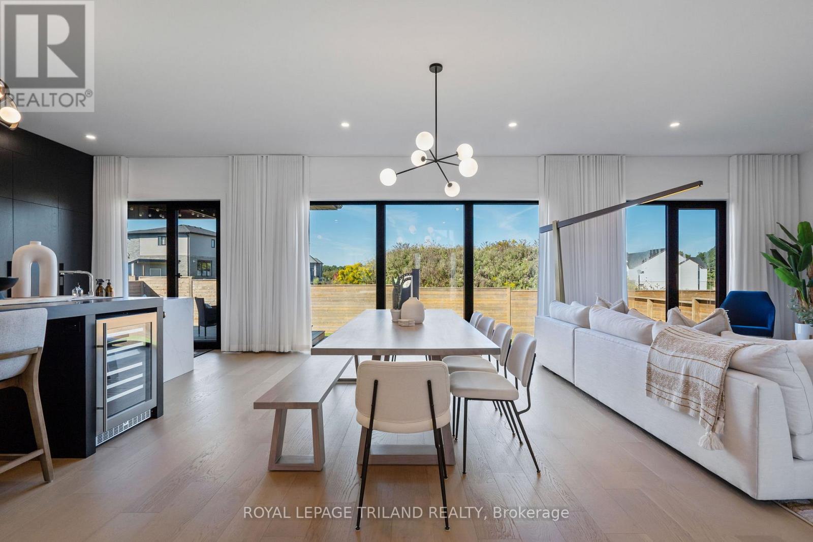 Welcome to this exceptional, high-end bungalow nestled in one of South London's Silverleaf Estates. This meticulously designed 2+2 bedroom, 3-bathroom home combines luxurious finishes, thoughtful upgrades and seamless living, creating the perfect space for both entertaining and everyday comfort. Step inside and be immediately impressed by the open-concept layout, where natural light floods the space, highlighting the flawless details and superior craftsmanship. The main floor boasts a spacious living room featuring a cozy gas fireplace, creating a warm and inviting atmosphere with floor to ceiling windows and grandious window coverings. The gourmet kitchen is a chefs dream, outfitted with top-of-the-line Fisher and Paykel appliances, custom cabinetry, a sleek bar fridge, and ample counter space for meal preparation. The adjoining dining area is perfect for hosting family gatherings or intimate dinners. Retreat to the master suite, a true sanctuary, complete with a walk-in dream closet and a spa-like en-suite bathroom offering a luxurious soaking tub, glass-enclosed shower, and double vanities. An additional bedroom, a full bathroom, and a den ideal for a home office or library complete the main floor. Downstairs, the fully finished basement extends the living space with two additional bedrooms, a third full bathroom, and a large recreational area, perfect for relaxing or entertaining. Outside, the sprawling deck is an entertainers paradise, offering plenty of space for alfresco dining, relaxation, and enjoying the beautifully landscaped surroundings. The fully fenced yard ensures privacy and security, while the in-ground sprinkling system keeps the lawn lush and green with minimal effort. Additional features include a large double car garage, concrete driveway, built-in security system, and a host of other thoughtful touches throughout the home. (id:64974)