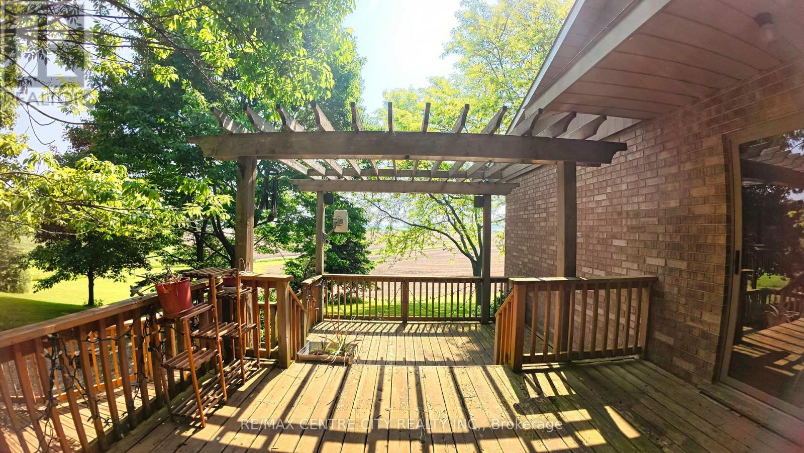 This stunning home is nestled on 83 acres of picturesque farm land in Southwold, offering the perfect blend of country living and modern convenience. The property includes a spacious barn with attached office, ideal for various uses, previously an airplane hanger. Upon arrival, you are welcomed by a charming side deck, offering breathtaking views and an excellent space for entertaining, with convenient access to the kitchen. As you enter the home through the large front doors, you'll be greeted by a bright foyer. A few steps lead you into the inviting living room, complete with a cozy gas fireplace, and an elegant dining room with expansive windows that provide stunning views of the surrounding land. The eat-in kitchen features a breakfast bar and a walk-out to the deck, making it an ideal spot for family meals, entertaining, or summer BBQs. Down the hall, the spacious primary bedroom includes a walk-in closet and a cheater 5-piece ensuite, offering a peaceful retreat. A second bedroom completes this level.The lower level is designed for relaxation and entertainment, featuring a cozy sitting room and a spacious recreation room, as well as a sunk-in area with a charming wood-burning stone fireplace, perfect for curling up with a good book. This level also includes a laundry room, two additional bedrooms, and a 4-piece bathroom. With its ample space, serene surroundings, and versatile layout, this home offers a unique opportunity to enjoy a tranquil lifestyle with easy access to major highways. (id:64974)