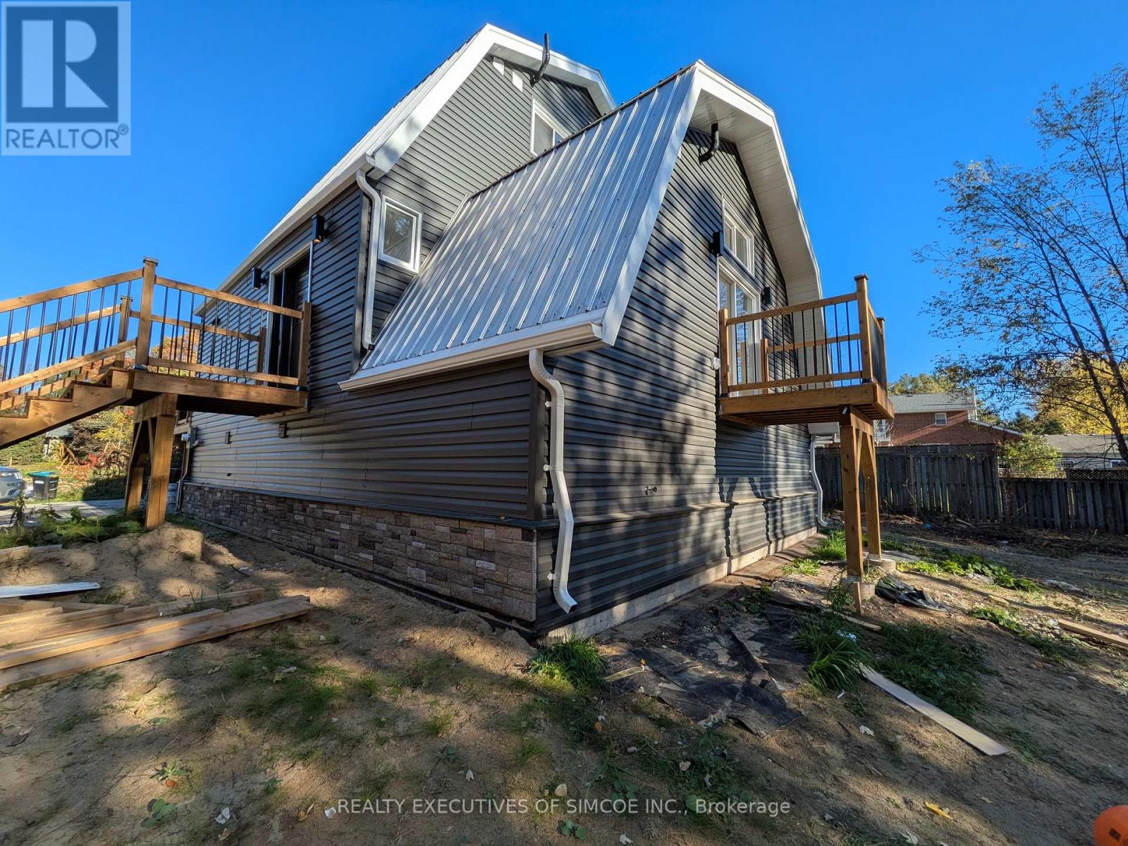 Set on a half-acre lot with municipal water and sewer, this home is where modern living meets natural beauty. At the heart of the home is a beautiful kitchen featuring a large center island with sink, a second sink for convenience, and an easy flow into the family room, creating a space that feels both social and serene. Step through the patio doors and onto a huge deck - perfect for morning coffee, evening dinners, or simply enjoying the peaceful backdrop of the surrounding trees. The main-floor primary bedroom includes a 4-piece ensuite, walk-in closet, and a private balcony with serene treed views. Upstairs, two bedrooms with soaring ceilings and ceiling fans offer space for everyone, while the loft-bright and versatile-can become a home office, reading nook, or creative retreat. Second floor in addition features a 4-piece bath, second-floor laundry room. 34 Pot lights, 200 Amp electrical service. Exterior features include a metal roof, two large decks, and a driveway for up to 10 vehicles and the perfect lot for a Workshop and or Garage. Fantastic location near boat launches, beaches, and quick Hwy 11 access. A beautiful home that offers style, space, and privacy - all in one. Appliance package is negotiable. (id:64974)