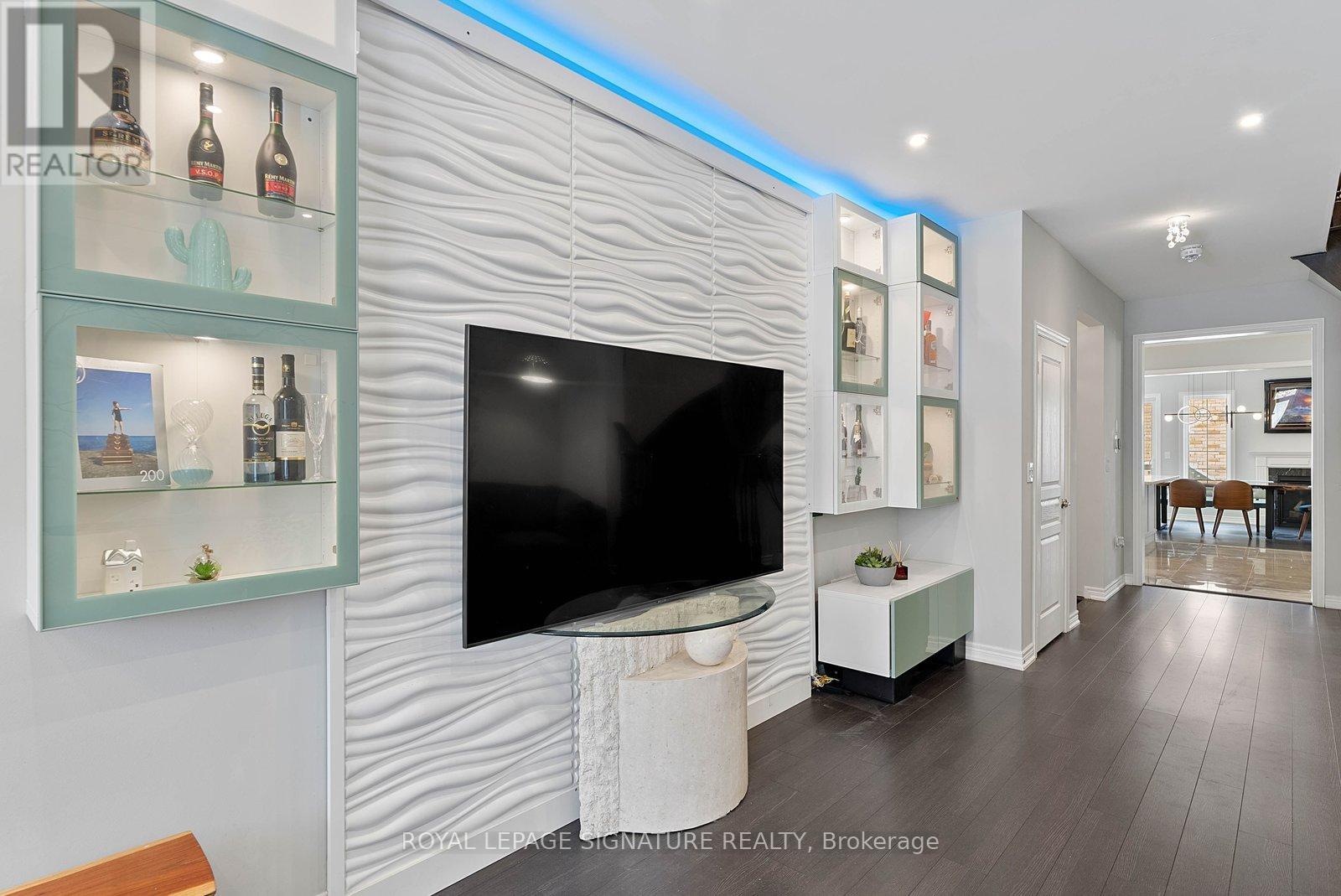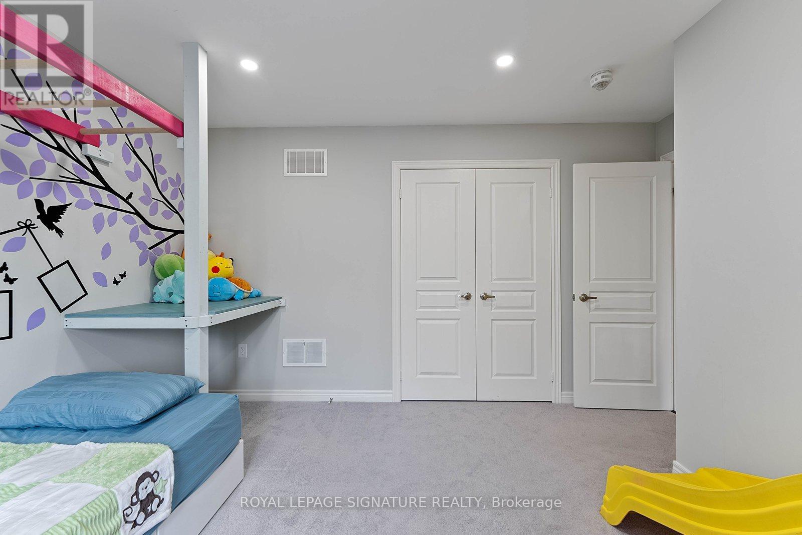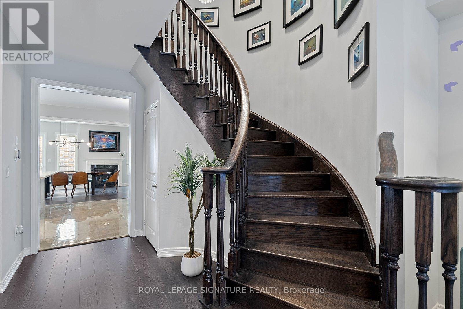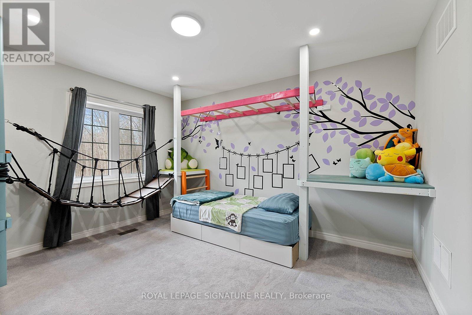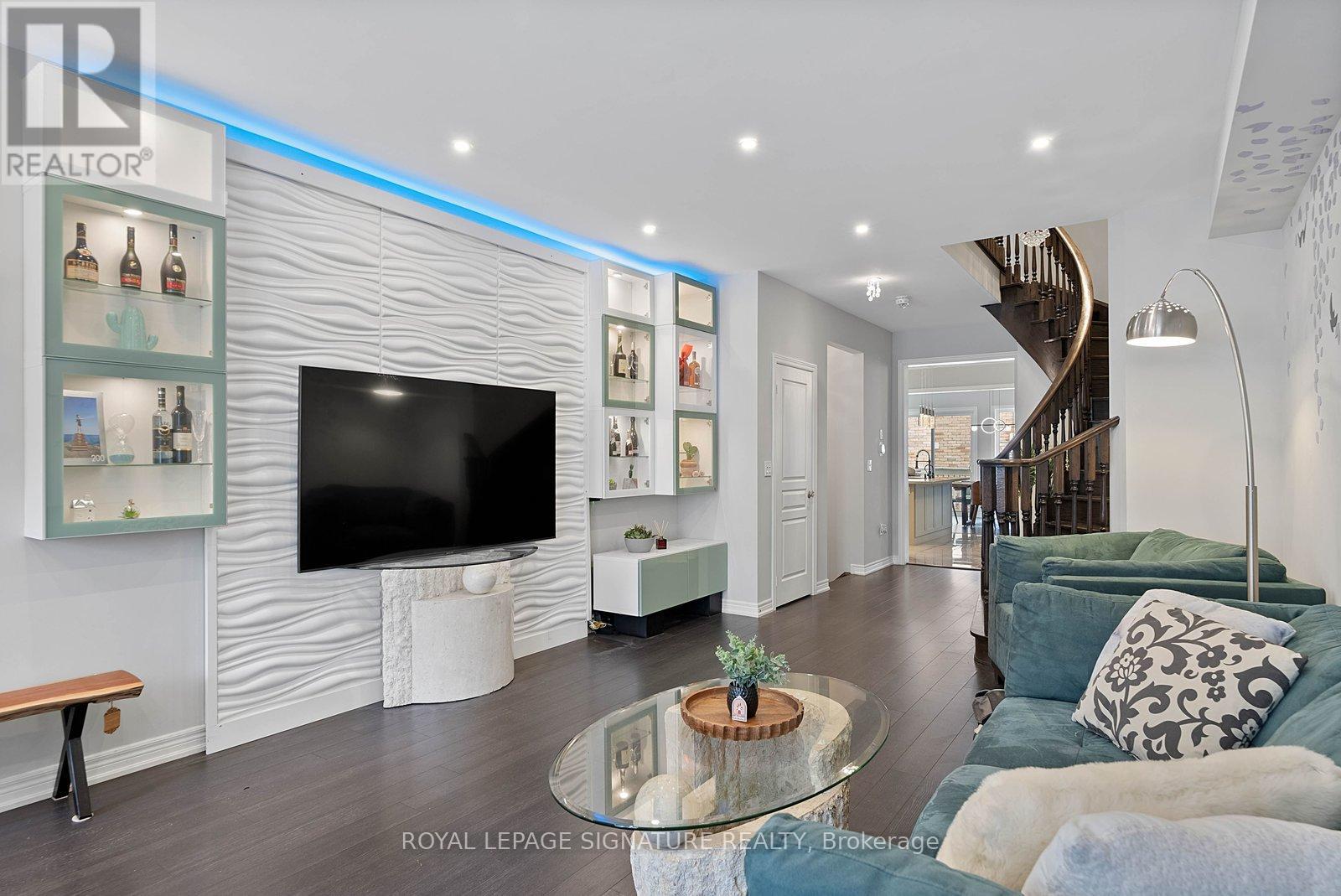 Stunning stone and brick 4-Bedroom, 2.5-Bathroom freehold townhouse located in the sought-after North Oakville neighbourhood. Facing a lush forest, this 2-storey home offers privacy, beautiful natural views, and plenty of street parking for multiple vehicles. With over 2,339 sq.ft of well designed living space and modern finishes, this home has been well-loved and upgraded from top to bottom. Main floor features 9-ft ceilings and a bright open-concept layout, ideal for family living and entertaining. Living room showcases a custom wall panel with built-in display shelves, adding warmth and character. In the kitchen, you'll find quartz countertops, black stainless-steel appliances, gas stove, centre island with breakfast bar, along with plenty of cabinetry. A sliding barn door offers separation from the living area when you want added privacy. The dining area is spacious and highlighted by a natural gas fireplace, with a walk-out to the deck complete with a gas line for BBQs. Upstairs, all four bedrooms are generously sized. The 18'x13' primary bedroom features a custom walk-in closet and 4-piece ensuite with both shower and soaking tub. The 3rd bedroom is a child's dream, with an indoor playground that can stay or be removed. The unfinished basement is a blank canvas, ready for a rec room or gym, and includes a cold room for more storage. Thoughtful upgrades throughout include stone vanities in every bathroom, kitchen hardware, lighting, faucets, stained oak stairs, and 240-volt outlet for EV charging. Location couldn't be more convenient - steps to parks and school bus route serving multiple schools. Highways and 407 are just minutes away, with supermarkets, shopping, trails, hospitals, and the new Sixteen Mile Community Centre & Library, a 65,000-sq.ft facility with aquatic facilities, fitness centre, indoor track, gymnasium, and community spaces. Don't miss your chance to move into a warm, welcoming home in one of North Oakville's most sought-after communities. (id:64974)