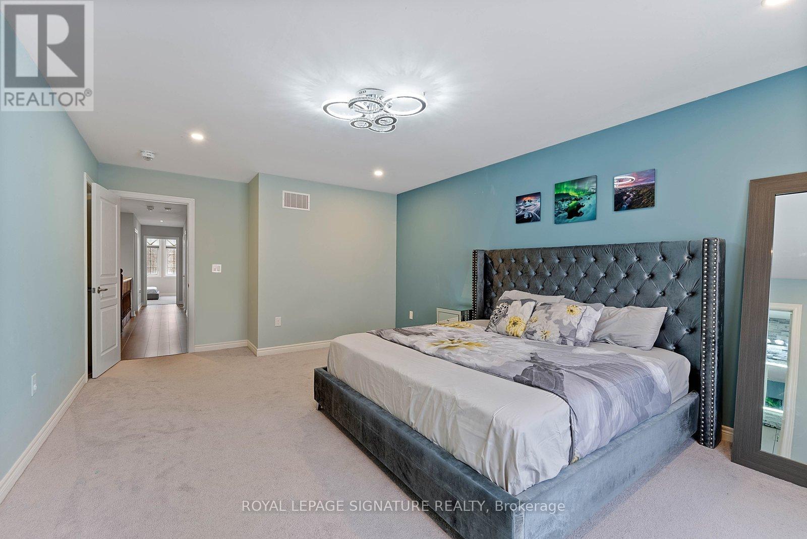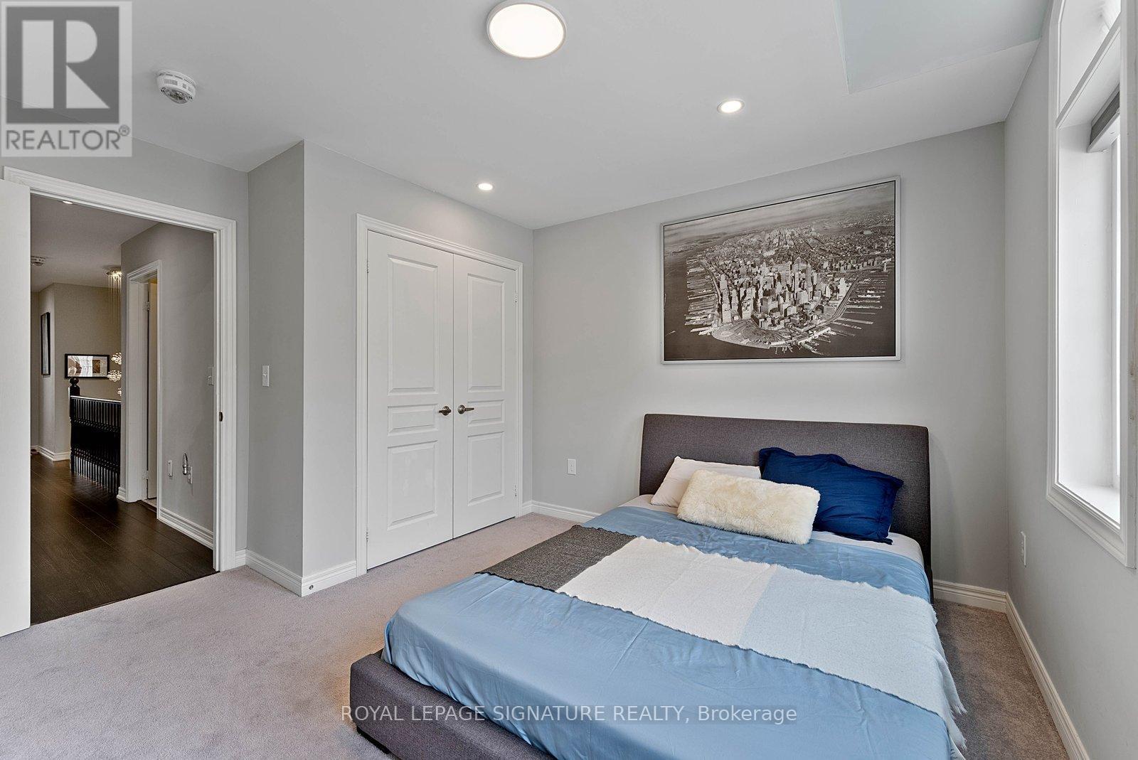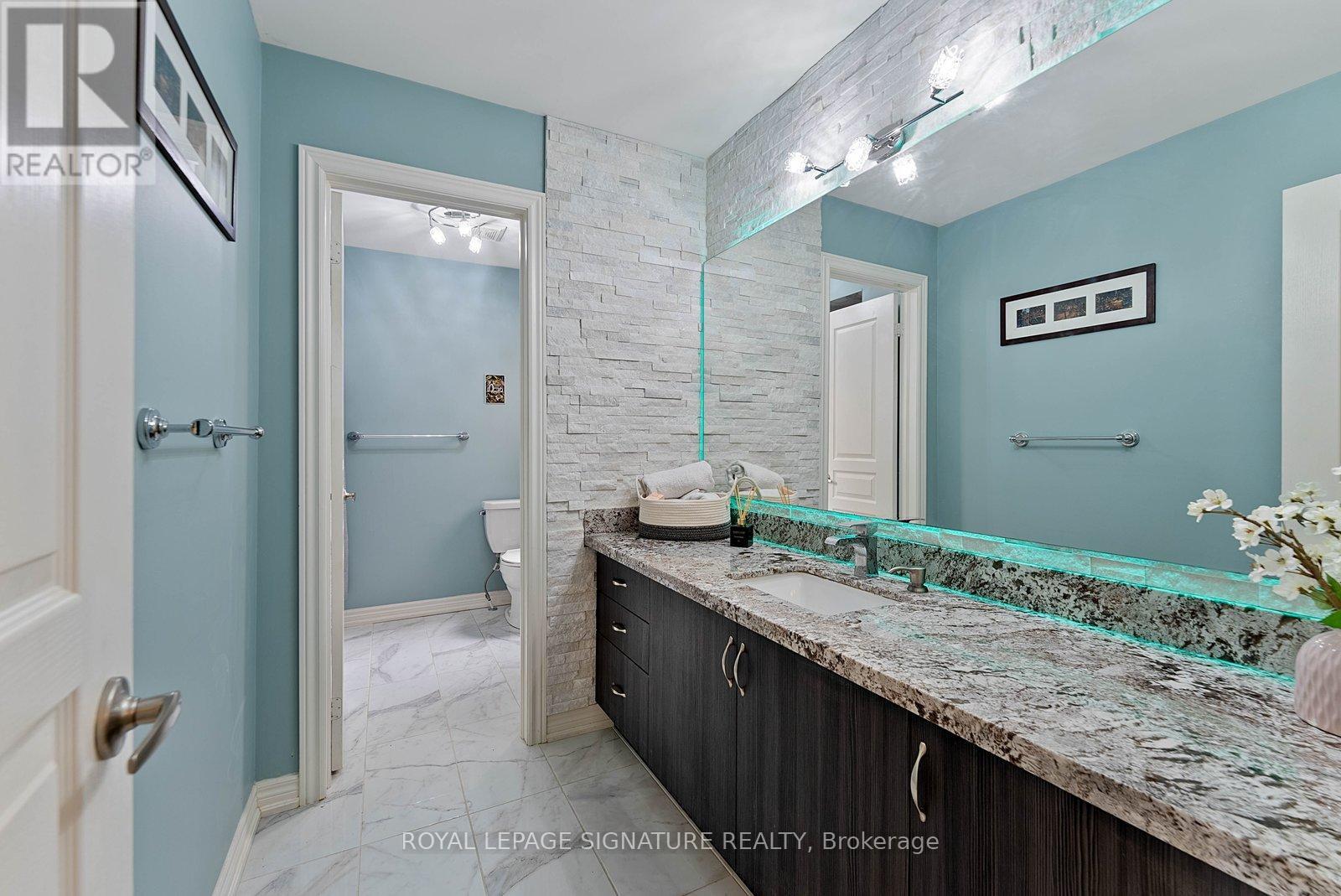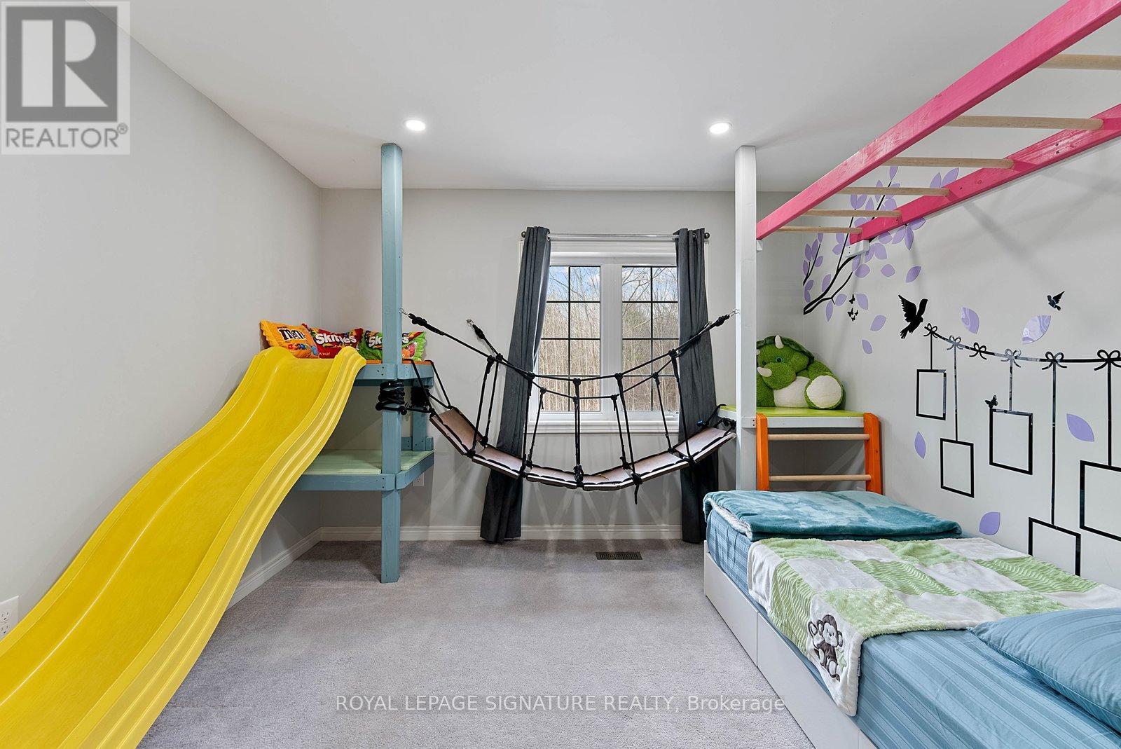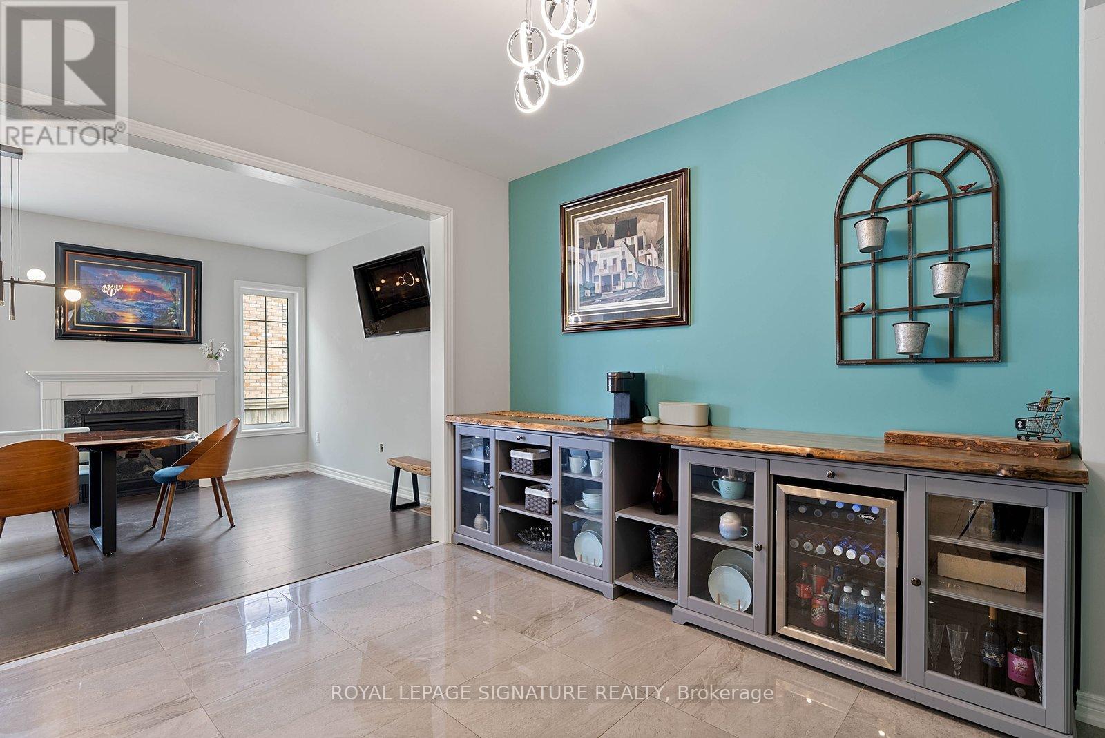 Stunning stone and brick 4-Bedroom, 2.5-Bathroom freehold townhouse located in the sought-after North Oakville neighbourhood. Facing a lush forest, this 2-storey home offers privacy, beautiful natural views, and plenty of street parking for multiple vehicles. With over 2,339 sq.ft of well designed living space and modern finishes, this home has been well-loved and upgraded from top to bottom. Main floor features 9-ft ceilings and a bright open-concept layout, ideal for family living and entertaining. Living room showcases a custom wall panel with built-in display shelves, adding warmth and character. In the kitchen, you'll find quartz countertops, black stainless-steel appliances, gas stove, centre island with breakfast bar, along with plenty of cabinetry. A sliding barn door offers separation from the living area when you want added privacy. The dining area is spacious and highlighted by a natural gas fireplace, with a walk-out to the deck complete with a gas line for BBQs. Upstairs, all four bedrooms are generously sized. The 18'x13' primary bedroom features a custom walk-in closet and 4-piece ensuite with both shower and soaking tub. The 3rd bedroom is a child's dream, with an indoor playground that can stay or be removed. The unfinished basement is a blank canvas, ready for a rec room or gym, and includes a cold room for more storage. Thoughtful upgrades throughout include stone vanities in every bathroom, kitchen hardware, lighting, faucets, stained oak stairs, and 240-volt outlet for EV charging. Location couldn't be more convenient - steps to parks and school bus route serving multiple schools. Highways and 407 are just minutes away, with supermarkets, shopping, trails, hospitals, and the new Sixteen Mile Community Centre & Library, a 65,000-sq.ft facility with aquatic facilities, fitness centre, indoor track, gymnasium, and community spaces. Don't miss your chance to move into a warm, welcoming home in one of North Oakville's most sought-after communities. (id:64974)