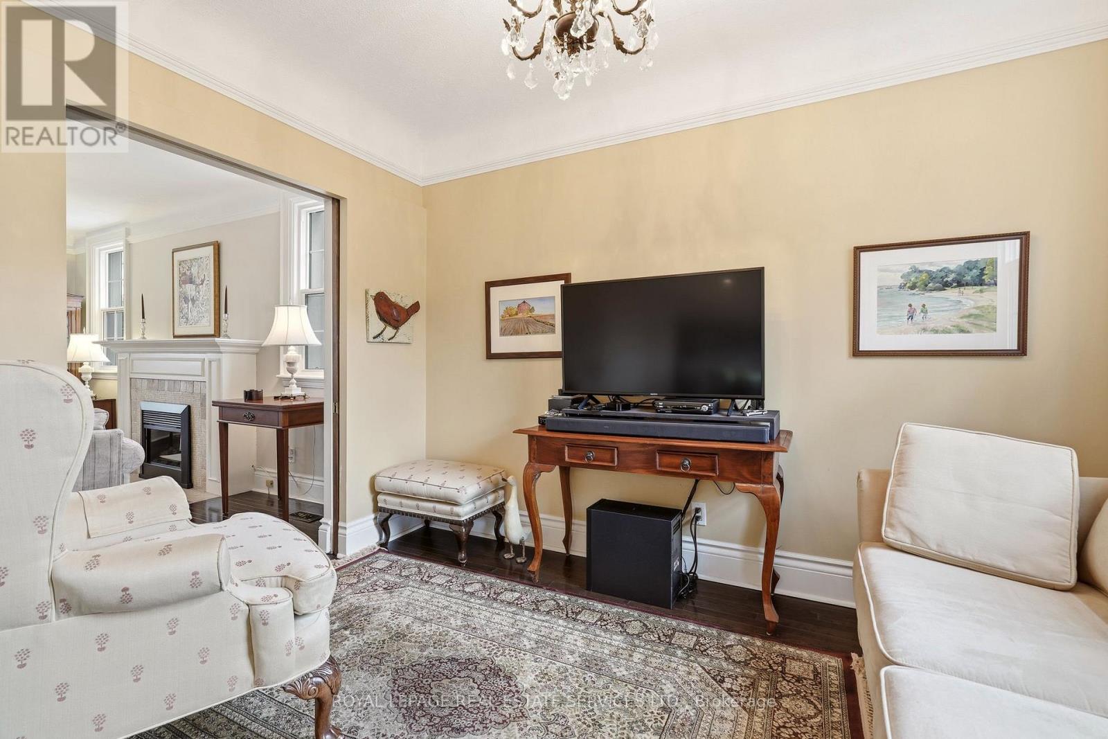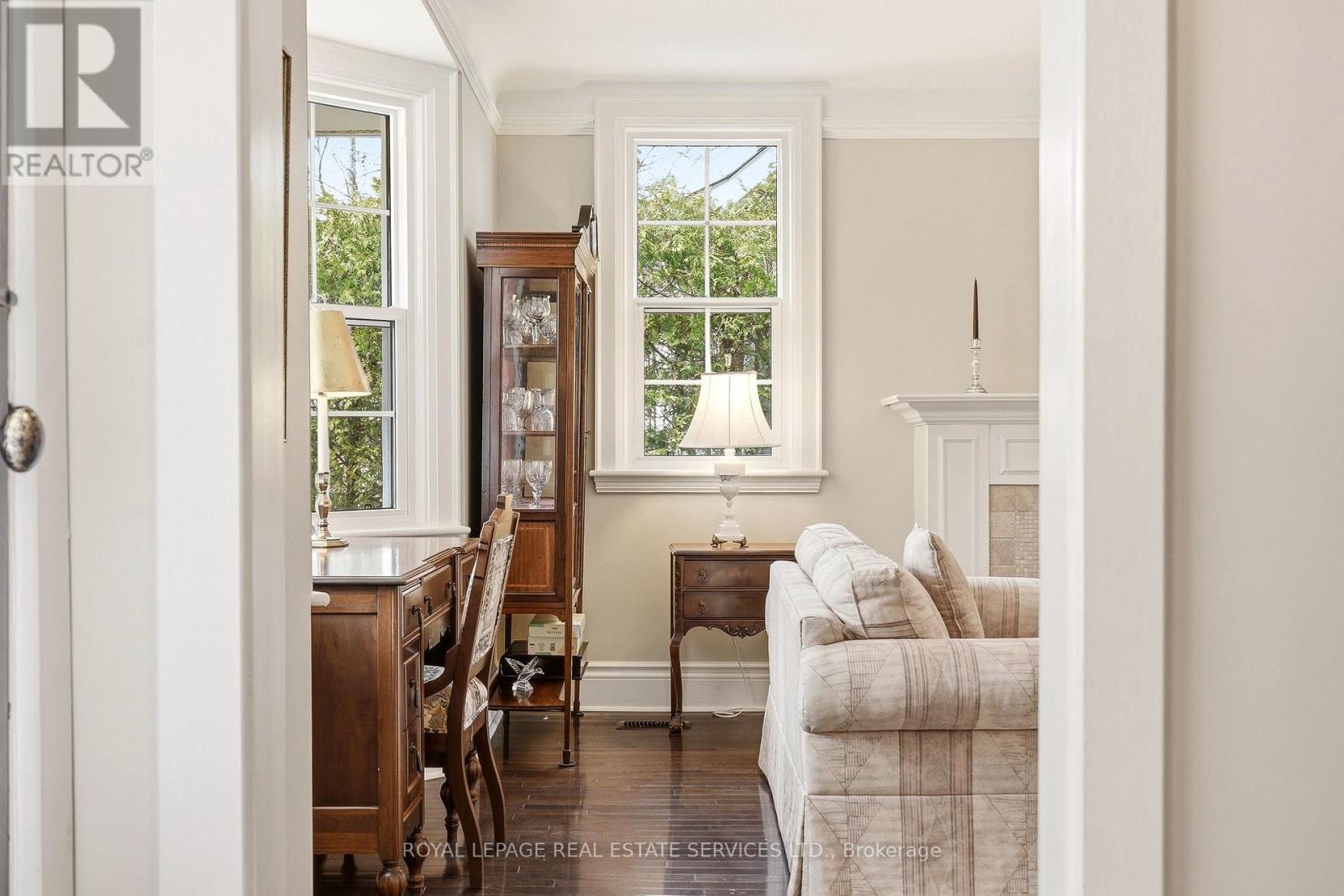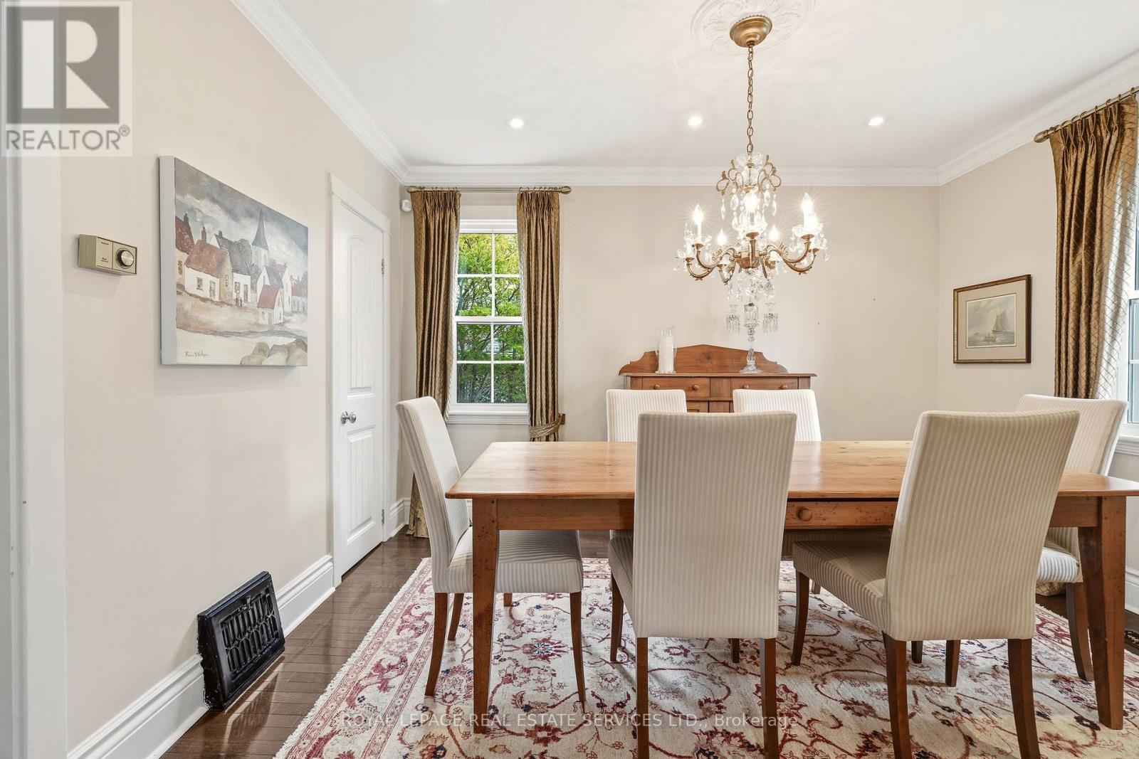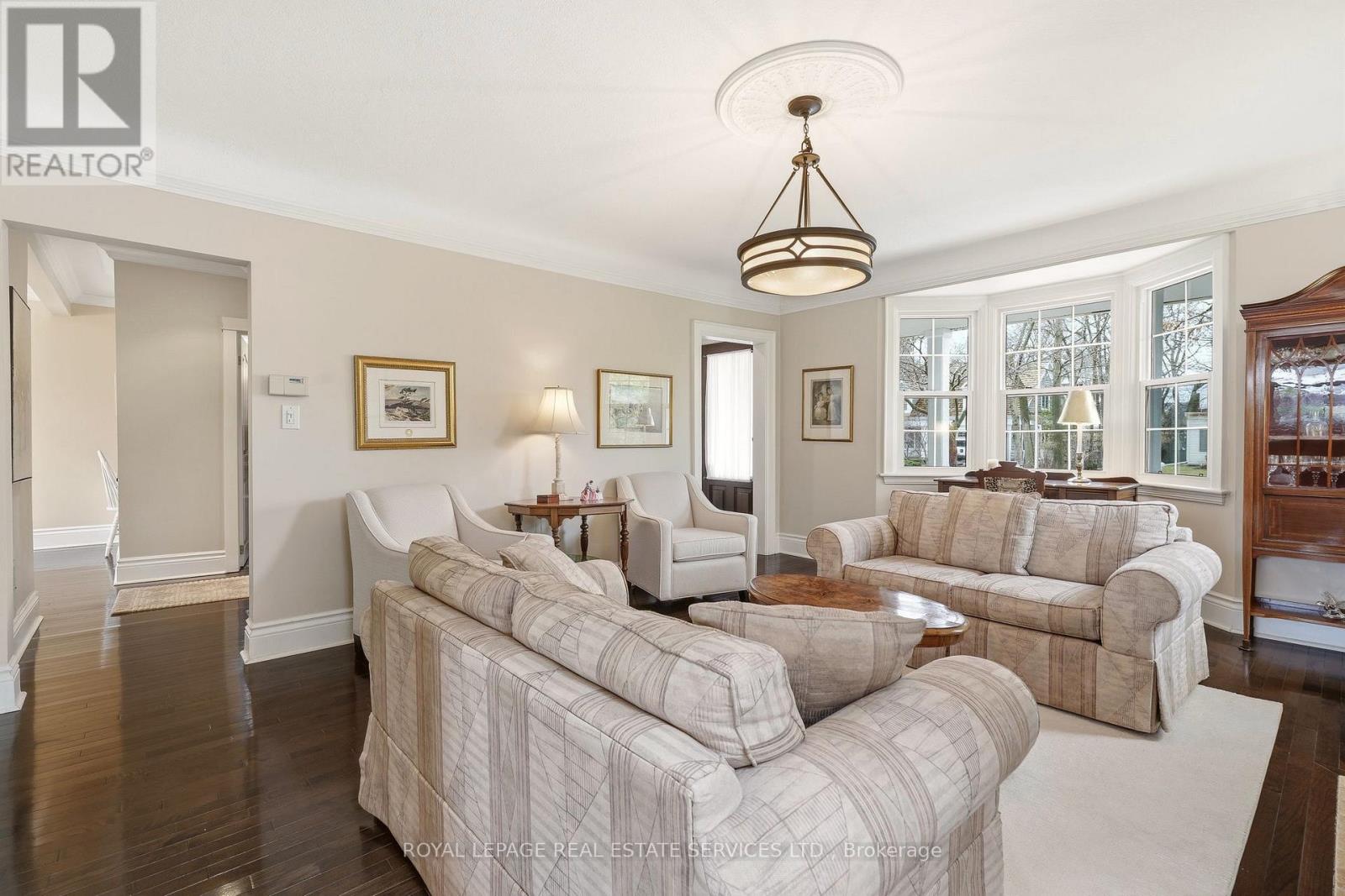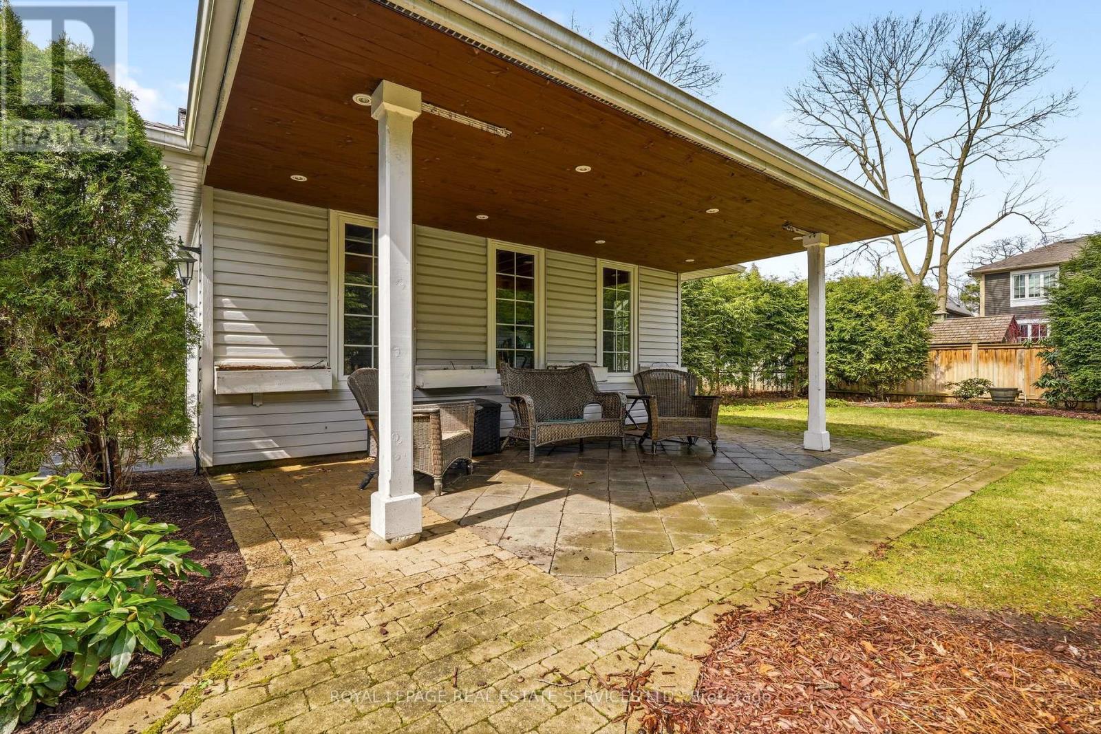 A truly exceptional character home in the heart of Old Oakville, offering over 2300 sqft of beautifully finished living space. Located on a gorgeous tree-lined street, this timeless residence blends classic elegance with modern comfort including elegant mouldings and hardwood floors throughout. Formal principal rooms include a separate dining room and inviting living room with gas fireplace and bay window. The kitchen features honed granite counters, stainless steel appliances, a breakfast area with chef desk and sliding door walk-out to the back deck. A den provides the perfect spot to enjoy a good book or catch up on the news. The second level has the primary bedroom with a luxurious 5pc ensuite bath with heated floor, 2 more ample-sized bedrooms as well as a contemporary 5pc main bath. The finished basement offers bonus living space in a large recreation room with hardwood floor, wood-burning fireplace, 3pc bath and a walk-up to the rear yard. The laundry/utility room provides extra storage space. Outside, lush landscaping frames a private garden, with perennials, cedar arbors and a wooden pergola. A covered outdoor patio extends from the detached garage to make a perfect spot for relaxed outdoor entertaining. Other features include central vacuum, central air, alarm system and outdoor irrigation system. Perfectly located steps from the lake, downtown shops and restaurants, top-rated schools, Oakville Go and easy highway access. (id:64974)