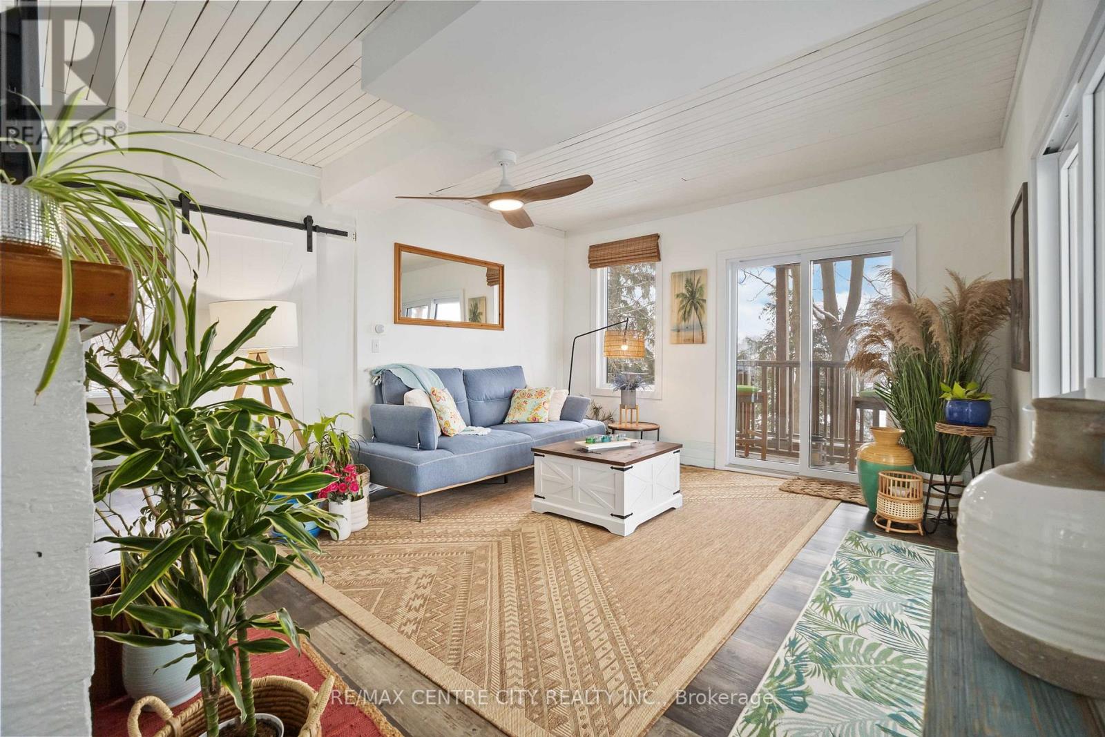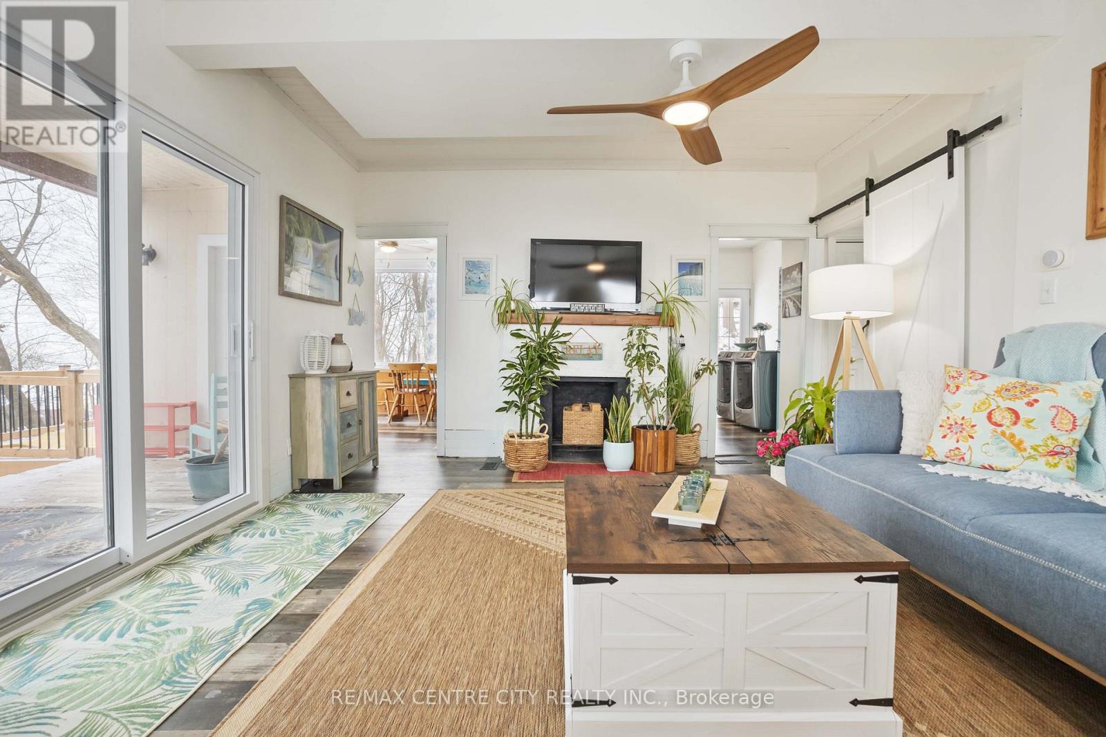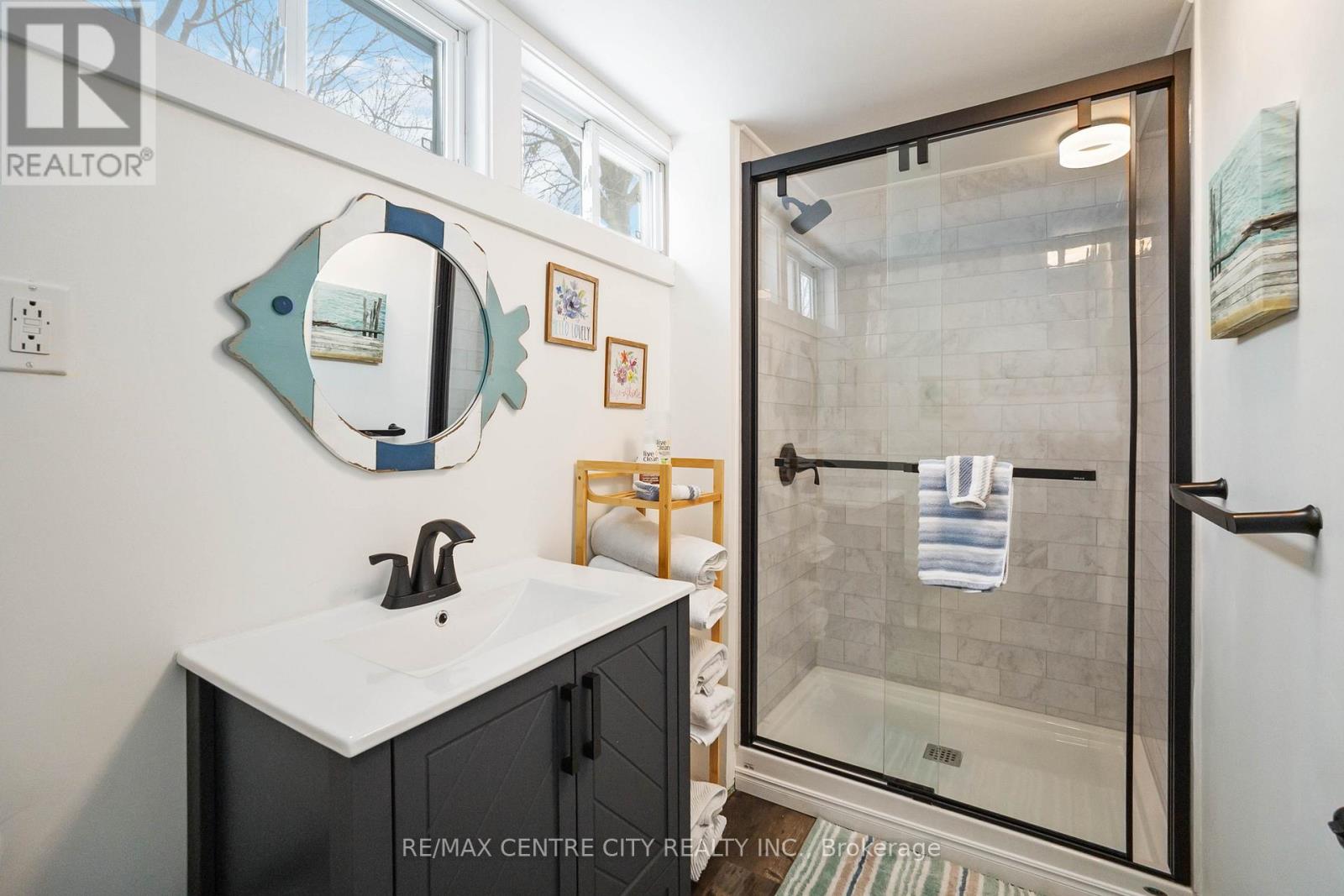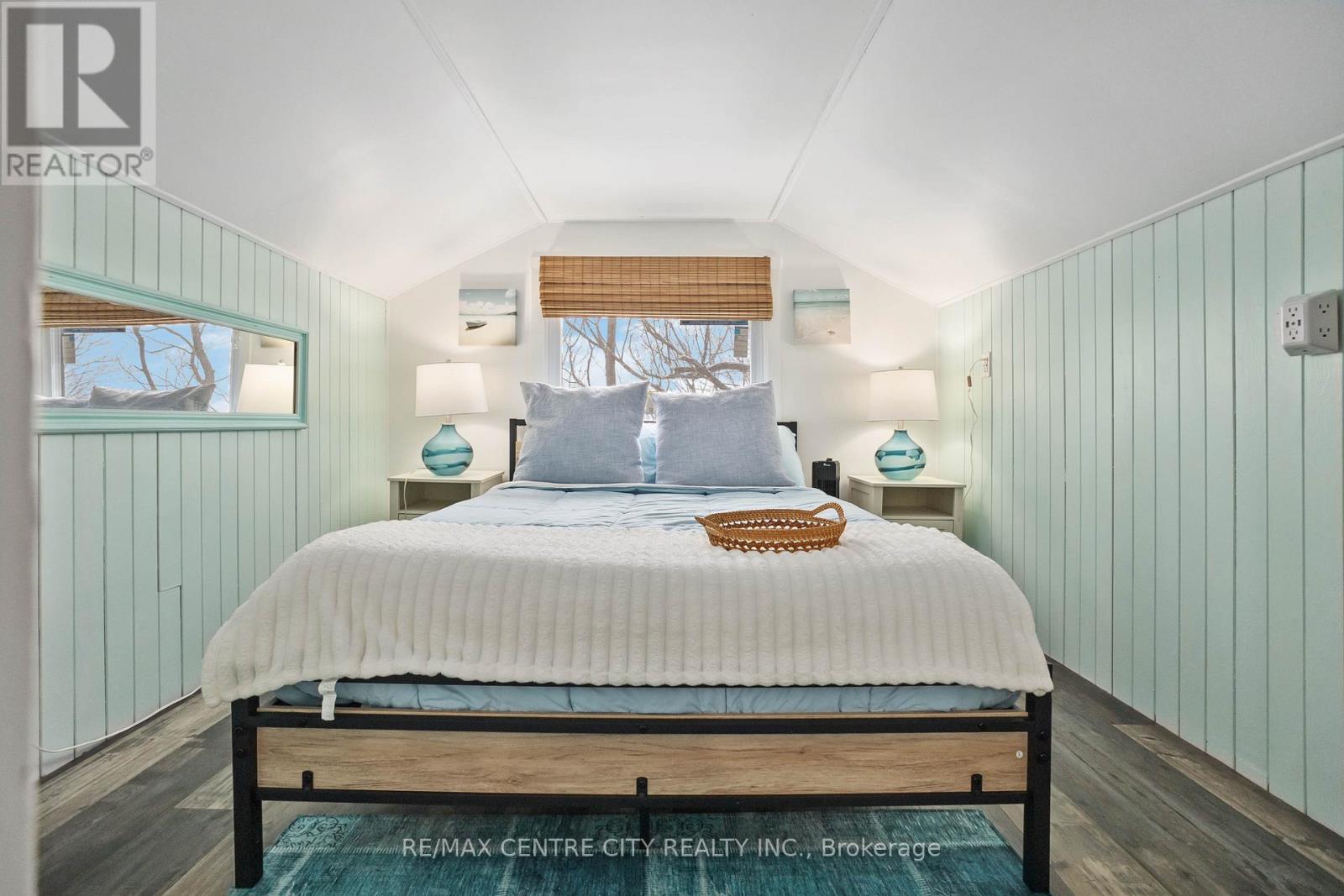 The quaint beach community of Port Stanley offers the unique opportunity for your very own treetop oasis! This one-of-a-kind destination is appealing to those seeking a short-term getaway or family destination, merely steps from the beach & beautiful shores of Lake Erie. This high demand, income generating property with proven success & approximately 50K of annual revenue provides the best of BOTH worlds for those eager to acquire a vacation home while maintaining the opportunity to generate rental income when not occupied for yourself. Breathtaking, panoramic views of Main Beach to the South Little Beach to the East, this property will captivate each visitor. A peaceful retreat, perched amongst the trees, this slice of paradise includes bright, oversized windows overlooking a newly built deck where you'll experience the soundtrack of waves & spectacular water vistas. Plenty of seating in the dining area ensures a crowd can be hosted with ease. A functional kitchen includes fully updated finishes with chic new cabinetry, stylish new appliances, laundry & access to side yard. Generous living room includes three large patio sliders with gorgeous views of the lake & cozy wood burning fireplace. Primary bedroom includes multiple bright windows & private ensuite with free standing tub. Head upstairs to discover two additional bedrooms as well as updated 3PC shower. Significant renovations completed including updated Northstar windows, luxury vinyl plank flooring, drywall, paint, metal roof, deck & AC. Lower level is ready for your finishing touches, currently roughed in with electrical & plumbing to complete a self-contained studio apartment or added living space. Deeded parking (located on Sydenham) includes space for two vehicles as well as storage shed, just steps away. A short walk brings you to the beach as well as many of Port Stanley's amazing restaurants & amenities. Truly a destination to appreciate with great appeal to enjoy as an income generating retreat! (id:64974)
