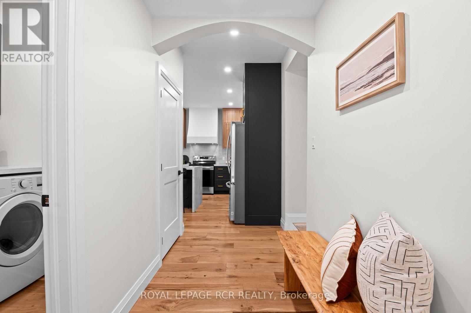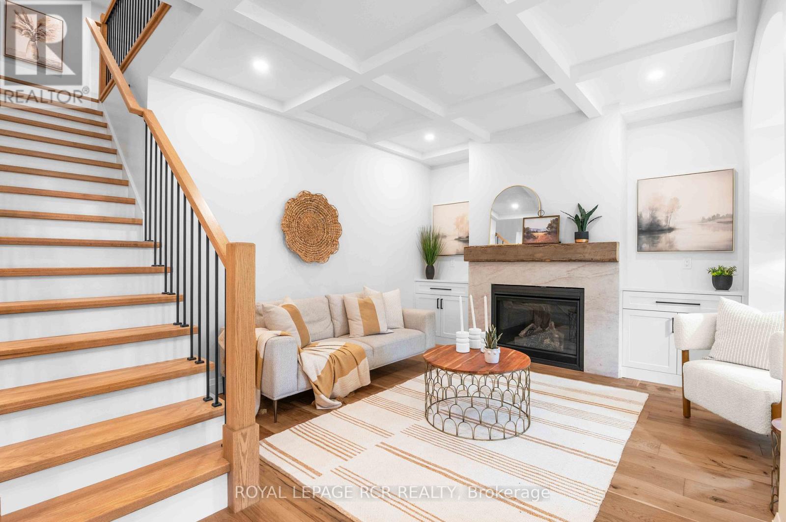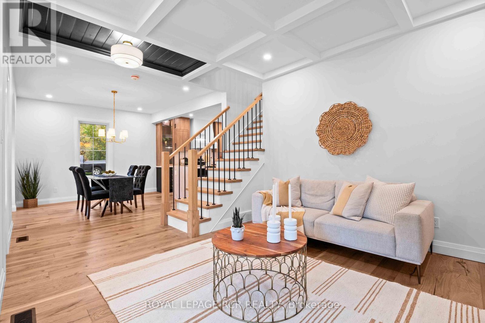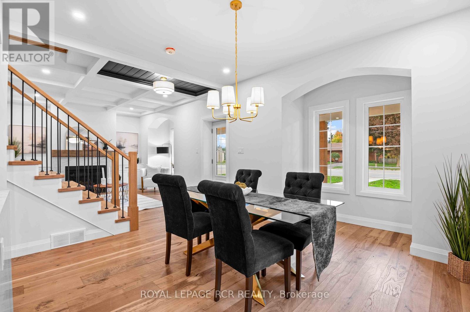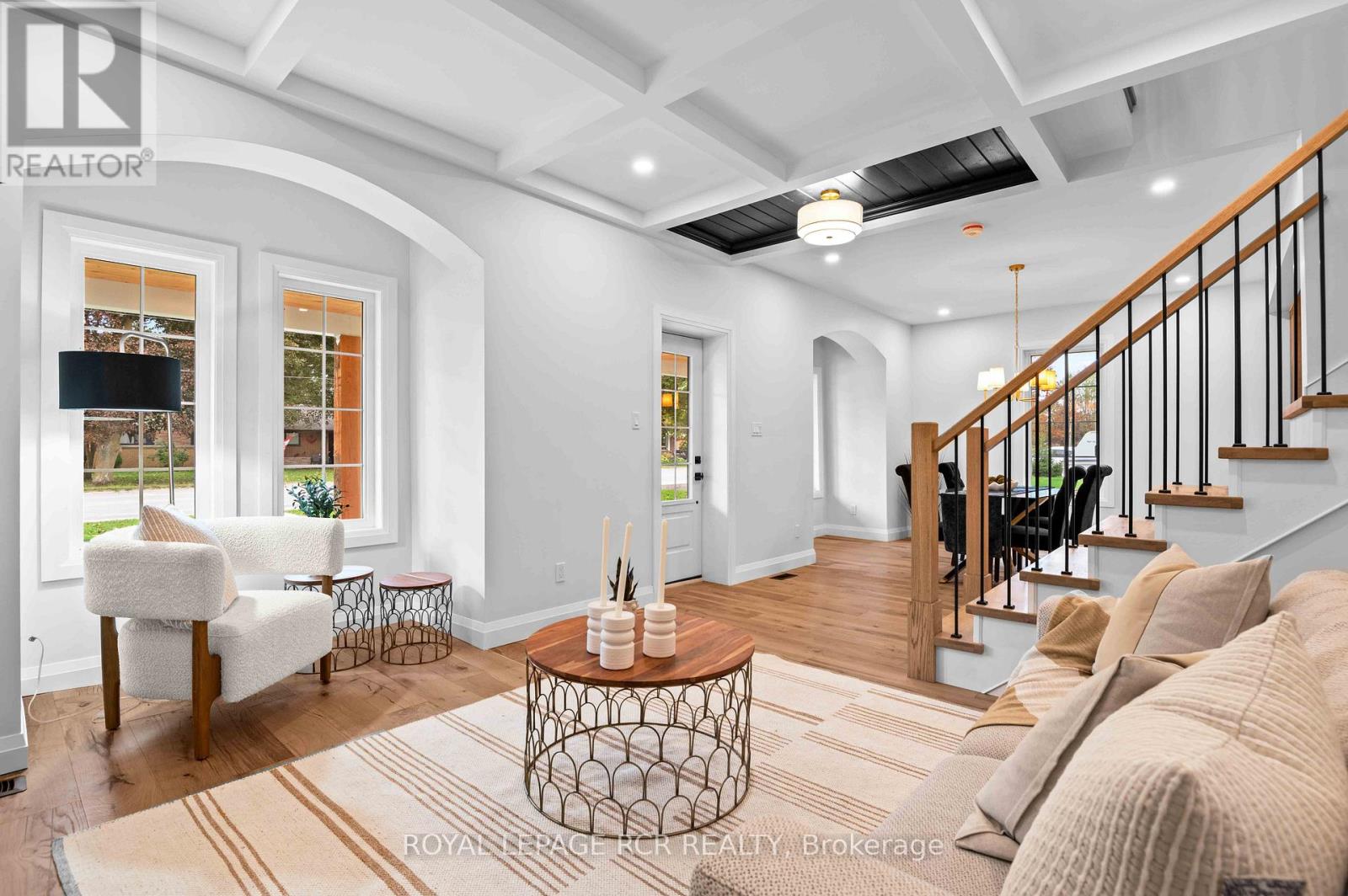 Nestled on an expansive lot in downtown Arthur, this exquisite 4 bedroom, 3 bathroom home has undergone a complete transformation, blending classic architecture with elevated modern finishes. The main level impresses with wide-plank hardwood flooring and a light-filled living room anchored by a gas fireplace clad in Taj Mahal quartz, framed by large windows and a coffered ceiling. The adjacent open concept kitchen and dining area is a showpiece of design, featuring an oversized centre island with a waterfall quartz countertop and breakfast bar, pendant lighting, a custom plaster range hood, pot lighting, and full-height Taj Mahal quartz backsplash and counters that carry the stones elegant detailing throughout. Arched windows throughout the principal rooms add a graceful architectural touch, while a beautifully appointed mudroom at the rear of the home offers built-in storage and striking herringbone brick tile underfoot. A versatile main floor room provides the option for a family room or fifth bedroom, complemented by a stylish 4 piece bathroom and convenient main floor laundry. The upper level is equally impressive. The primary suite offers a walk-through closet and an elegant 5 piece ensuite with a curbless walk-in tiled shower, stationary glass, soaker tub, and double vanity. Three additional bedrooms provide generous proportions and share a modern 4 piece main bath. Outdoors, a wraparound covered back deck extends your living space, ideal for entertaining or relaxing while overlooking the spacious, private yard. A brand new detached 1.5 car garage adds functionality to this truly turnkey property. From curated finishes to thoughtful functionality, every detail of this home has been carefully considered offering a rare opportunity to own a truly exceptional home in one of Arthur's most established neighbourhoods. (id:64974)