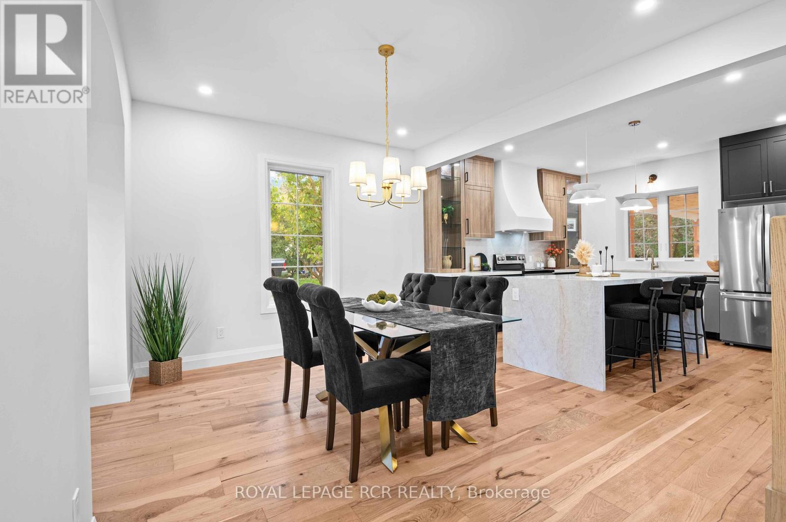 Located in the heart of downtown Arthur, this fully renovated 4 bedroom, 3 bathroom home offers a rare blend of timeless character & modern refinement, set on a generous in town lot. Thoughtfully reimagined from top to bottom, every detail reflects quality craftsmanship, considered design, & a layout that supports everyday living. The main level unfolds with wide plank hardwood flooring & a bright, welcoming living space anchored by a gas fireplace finished in Taj Mahal quartz. Large windows & a coffered ceiling enhance the sense of light & scale. The kitchen & dining area connect seamlessly, centred around a striking island with waterfall quartz, custom plaster range hood, pendant lighting, & full height Taj Mahal quartz surfaces that carry a cohesive, elevated finish throughout. Arched windows add warmth & architectural character. At the rear, a well designed mudroom with built in storage & herringbone brick tile adds both style & function. A flexible main floor room offers space for a family room, home office, or guest area, complemented by a 4 piece bathroom & convenient main floor laundry. Upstairs, the primary suite offers a calm, private retreat with a walk through closet & a thoughtfully finished 5 piece ensuite featuring a curbless glass shower, soaker tub, & double vanity. Three additional bedrooms are well proportioned & share a modern 4 piece bathroom. Outdoor living extends to a covered wraparound back deck overlooking the spacious, private yard, ideal for relaxing or entertaining. A newly built 1.5 car detached garage adds everyday convenience. Set within one of Arthur's established neighbourhoods, close to local shops, schools, & parks, this is a turnkey home that balances character, quality, & modern comfort in a growing community. (id:64974)