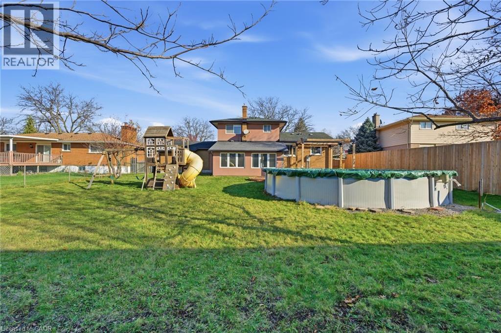 Welcome to this spacious, updated 2,000 sq ft home, located on a quiet, tree-lined residential street in a sought-after, mature, neighbourhood. Situated on a wide 75’ lot, the driveway can accommodate 4 cars with 2 more in the garage. Speaking of the garage, car enthusiasts will love the raised ceiling, bright lighting and access to both the back yard and interior of the house. A classic brick and stucco exterior, with a fenced yard and an above ground pool provides a wonderful space for a family. Freshly painted throughout in Sherwin Williams’ Shoji White, the home feels modern, calm, and move-in ready the moment you enter. The bright foyer leads you into generous living and dining areas. The Chef’s kitchen has ample workspace, granite counters, great lighting and a view to the backyard. The family room has new plush carpeting and will become the “family gathering” spot. Beyond the family room, looking over the backyard is a light filled “sun-room”, heated with a gas fireplace. In addition to a 2-piece bath and inside access to the garage, the main floor also has a versatile bonus room with a window – ideal for an office, an extra bedroom or a cozy den. Upstairs are 3 bright and spacious bedrooms, a full 4-piece main bath and a walk-in closet for storage. The floors upstairs are older classic hardwood. Located just minutes from major highways, shopping, dining, parks, and excellent schools, this home offers the perfect blend of comfort, convenience, and neighbourhood charm. (id:64974)