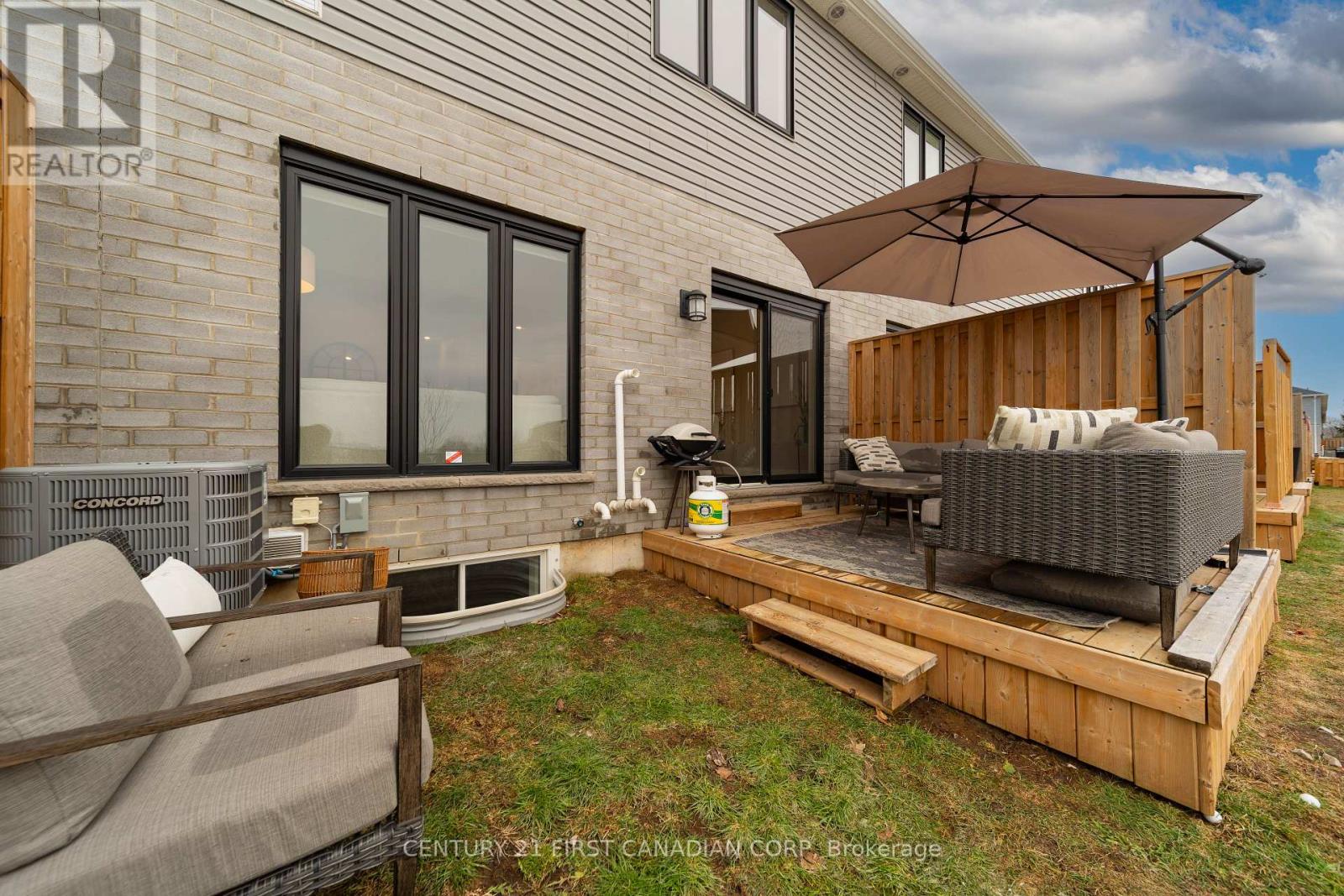 Situated in the growing, family-friendly community of Lucan, this freehold vacant land townhome is an excellent opportunity for first-time homebuyers, young professionals, families and investors alike. Carpet-free and freshly painted throughout, the home offers a bright, functional layout featuring three generously sized bedrooms and three bathrooms, along with the added convenience of second-floor laundry. An attached garage provides secure parking along with valuable additional storage space. The primary bedroom is a true retreat, complete with a large walk-in closet and a private ensuite for added comfort. Premium vinyl flooring runs throughout, creating a clean and modern aesthetic that continues into the fully finished basement-a standout feature rarely found in comparable townhomes. This versatile bonus space can easily function as a recreation room, home office, playroom, or a combination of all three, offering endless possibilities to suit your lifestyle. Step outside to enjoy a private, sizeable back deck, perfect for entertaining, relaxing, or enjoying family time outdoors. Adding to its appeal, the home backs directly onto Wilberforce Public School, making walking the kids to and from school a breeze. Enjoy the serenity of a quiet neighbourhood while remaining close to essential amenities, parks, and recreational facilities. With a low maintenance fee of just $125, modern finishes, and a prime location, this townhome offers the perfect balance of comfort, style, and convenience-making it an ideal place to call home. (id:64974)