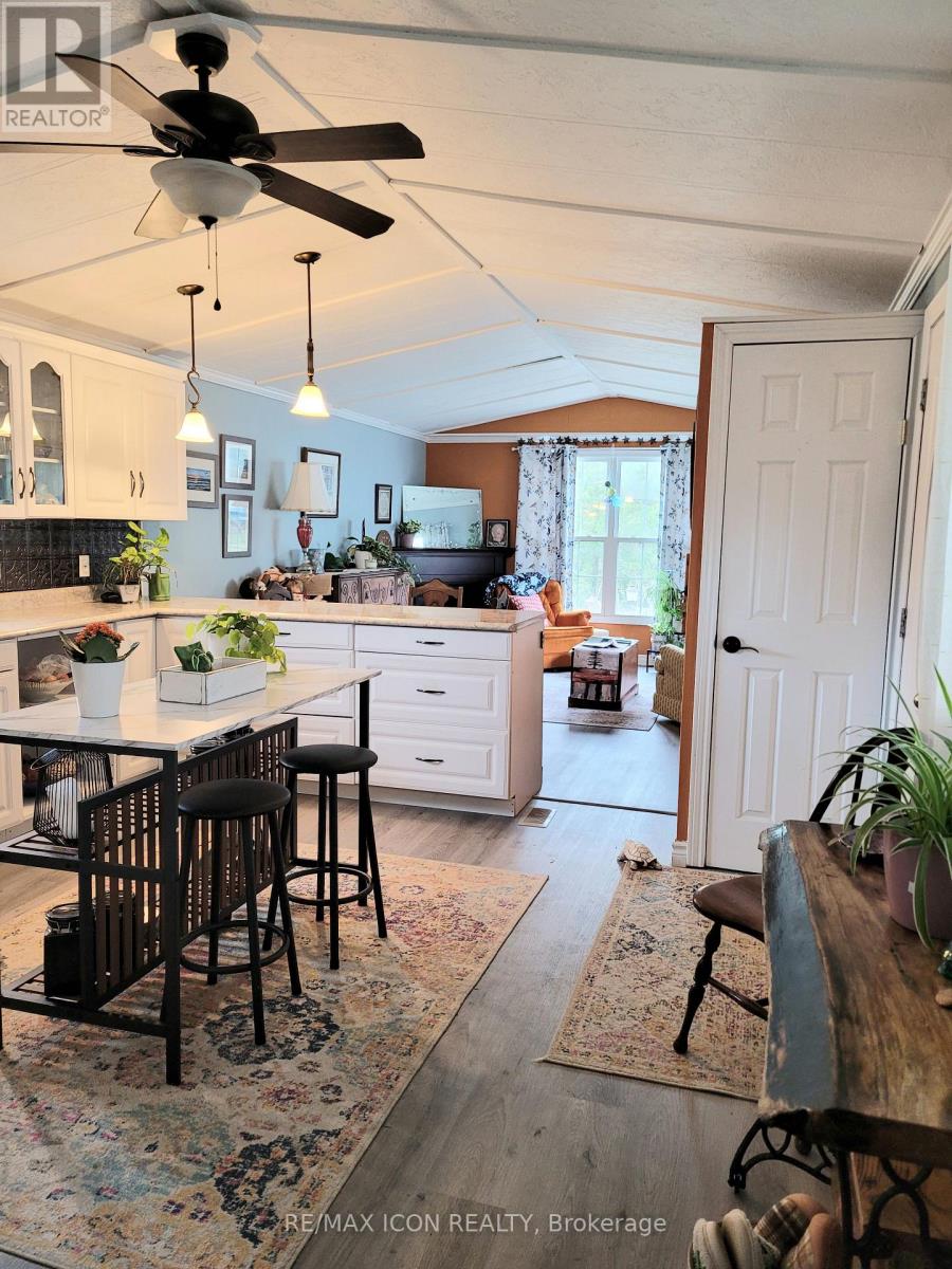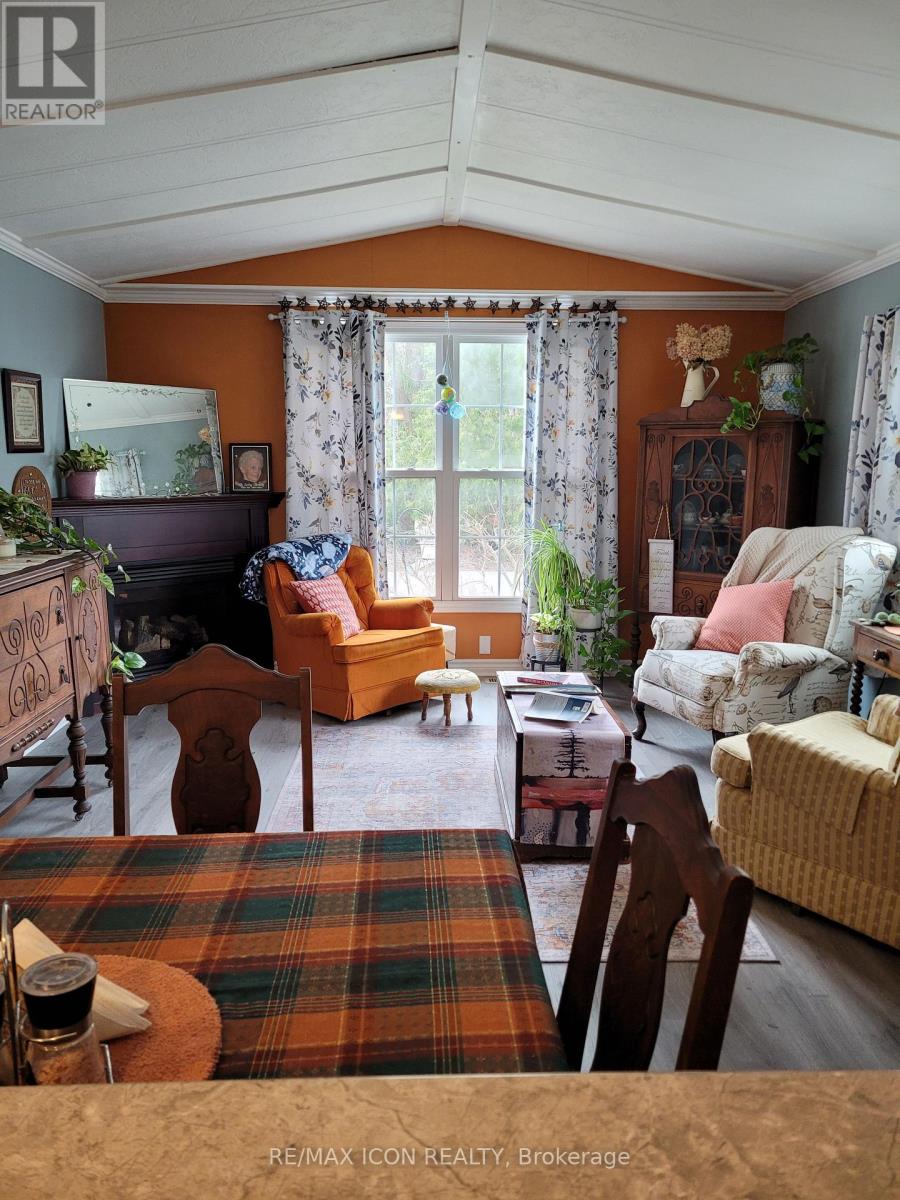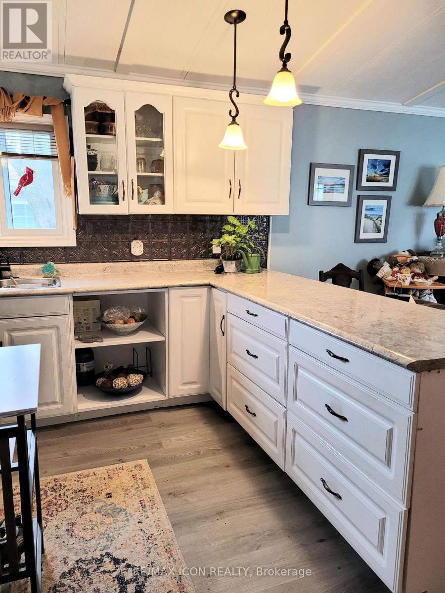 Well-maintained, year round, 70 ft. mobile home in a quiet, mobile home park just minutes south of Grand Bend. Ideal for 50 plus and retirees. Close to the great beaches of Lake Huron, several public golf courses and the Pinery Provincial Park. Open concept kitchen/living room with corner gas fireplace, vaulted ceilings, crown molding, and laminate flooring. Family room addition with pass through, plus screened in porch. Kitchen cabinets, bathroom, all plumbing fixtures, insulation, drywall etc. new in 2009. New flooring, hot water tank in 2025. Roof shingles & siding with extra insulation new 2009. Master bedroom has double closets w/mirrored doors & patio doors to 14 x 14 ft. private deck with hot tub. Low maintenance exterior, double driveway, 14 x 10 insulated workshop with hydro plus storage shed. The park features municipal water, park septic system, in-ground pool, clubhouse, picnic pavillion, extra vehicle & RV parking, garden plots, horseshoe pits, shuffleboard & common grounds/road maintenance. (id:64974)