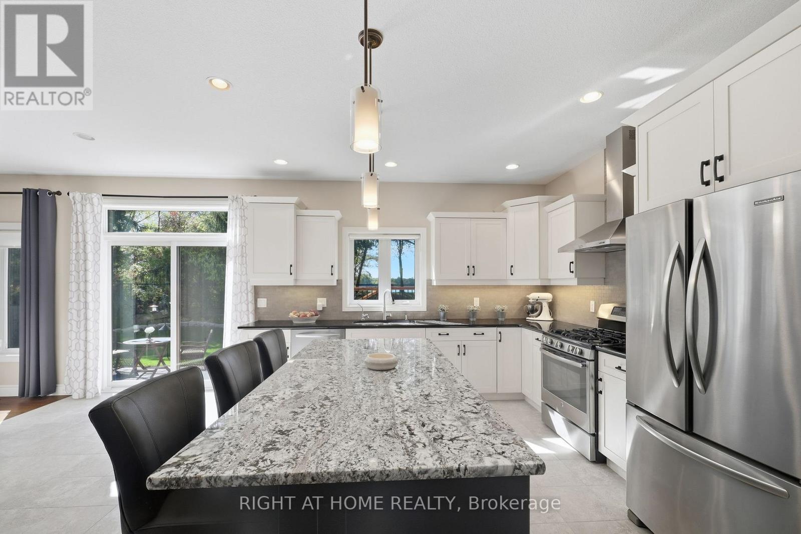 BACKING ONTO THE SERENE KOMOKA PONDS, this stunning Marquis-built 2-storey home offers 2,859 sq. ft. of beautifully finished living space and ultimate privacy for outdoor dining & relaxation bounded by the peaceful views of the surrounding landscape w/ no rear neighbours. Featuring 4 spacious bedrooms and 3.5 bathrooms, this home combines thoughtful design with stylish finishes. The triple-car garage includes a rear-facing door for easy backyard access. The gourmet kitchen is a showstopper, complete with a massive island, wine fridge, stainless steel appliances (all included) and granite countertops. Enjoy a fully finished basement with a stylish full bathroom, large bedroom, recreation room, and family room perfect for entertaining or relaxing. Ample storage in pantry with a full size fridge & underneath stairs, ensuring every inch of space is maximized. Additional highlights include: - Main floor laundry - In-floor heating plumbed into the basement and garage - Heated ensuite flooring - Sandpoint well in the basement with outside faucet - Central vacuum system. This property is truly move-in ready, no updates needed. A rare opportunity to own a premium home in a sought-after, family friendly setting. Don't miss your chance to live in one of Komoka's most desirable locations. (id:64974)
