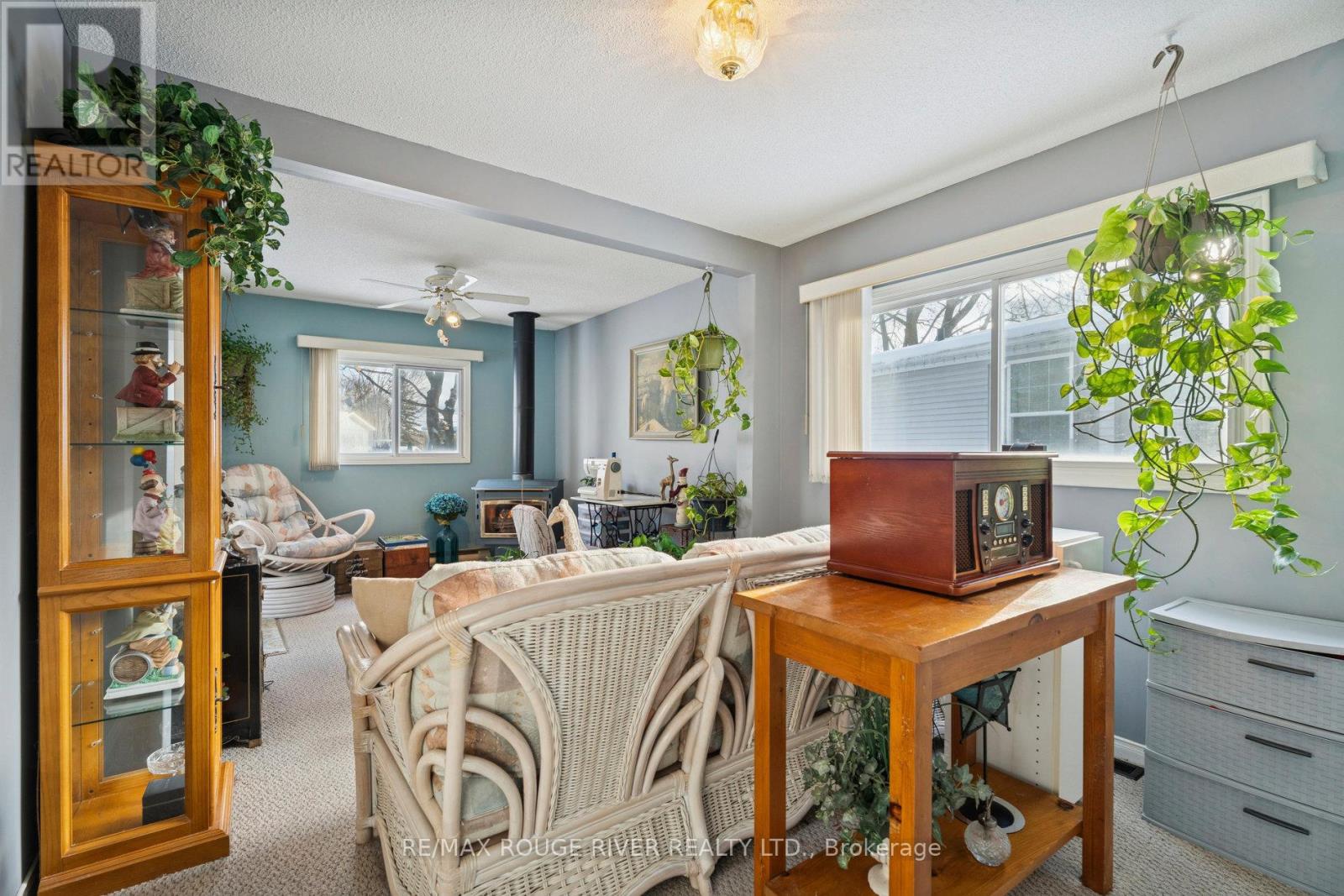 Welcome to 35 Hawthorne Dr. in the highly sought-after Sandy Cove Acres Retirement Community, one of Ontario's premier 55+ lifestyle destinations offering an unmatched blend of comfort, recreation, and convenience. This charming and well-maintained bungalow features bright, inviting living spaces designed for effortless single-level living, beginning with a spacious living room filled with natural ldeal for relaxing or hosting guests. The adjoining dining area flows into a functional kitchen offering ample cabinetry, generous counter space. The home includes two comfortable bedrooms, including a peaceful primary suite with large windows, along with a versatile second bedroom perfect for guests, hobbies, or a home office. At the back of the home, an additional finished space provides exceptional flexibility-perfect as a large family room, entertainment area, craft space, or easily utilized as a 3rd bedroom-and features a walkout to a private deck that extends into the backyard for peaceful outdoor enjoyment. A clean, well-kept bathroom, dedicated laundry area, and thoughtful storage throughout add everyday convenience. The property is surrounded by mature landscaping and enjoys a quiet location within this beautifully maintained 300-acre community filled with greenery and walking paths. Enjoy resort-style amenities including three full clubhouses featuring two outdoor heated pools, a fully equipped fitness centre, shuffleboards, darts, billiards, hobby and craft rooms, a woodworking shop, libraries, social lounges, dedicated event spaces, and a full calendar of activities such as dances, theatre nights, bingo, cards, exercise classes, arts and crafts, and community gatherings. The on-site Sandycove Mall adds everyday convenience with a drugstore, variety store, restaurant and caf, hair salon, clothing boutique, and foot-care clinic, while professional management provides snow removal, grounds care, and community maintenance for a low-stress, maint free lifestyle. (id:64974)