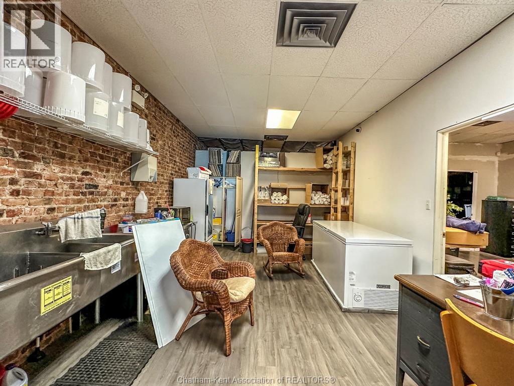 Large mixed use commercial/residential building with a premium Main Street location in beautiful Ridgetown. 2 street level storefronts, 3 residential apartments on the second floor, and a full basement. The larger storefront is approx 1200 square feet, bright and updated with a 2pc bathroom and is occupied by a seasonal ice cream shop ($1200/month). The second main floor unit is approximately 700 square feet with an exposed brick wall, restored tin ceiling, and a 2pc bath, rented to a vape shop ($750/month). There is a roughly 900 square foot addition at the back of the main floor that could be finished into more rentable commercial space or living accommodations. The 3 bedroom apartment is very spacious and nicely updated with a beautiful kitchen, 4pc bathroom, tall ceilings, large rooms throughout and in-suite laundry ($1400/month). The 2 bedroom apartment is also updated with 4pc bathroom ($1200/month). The 1 bedroom apartment is a great bachelor pad with a 4 pc bathroom ($725/month). Total yearly income $63,300. Recent updates: brick facade repointed, upper windows, furnace/ac, back addition roof. A fantastic investment opportunity is a growing small town. Call now! (id:64974)