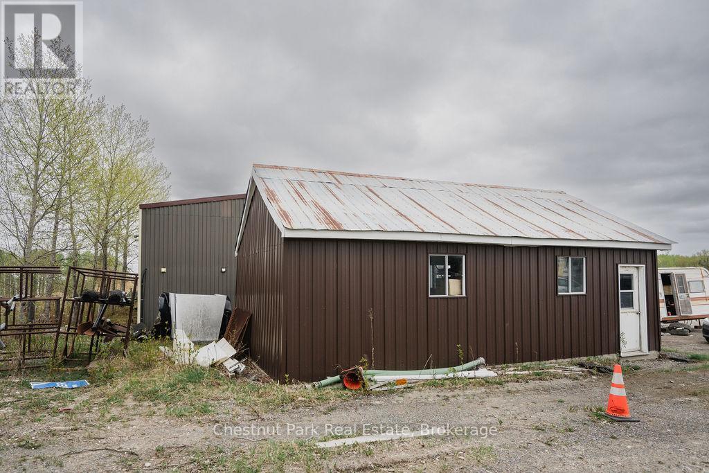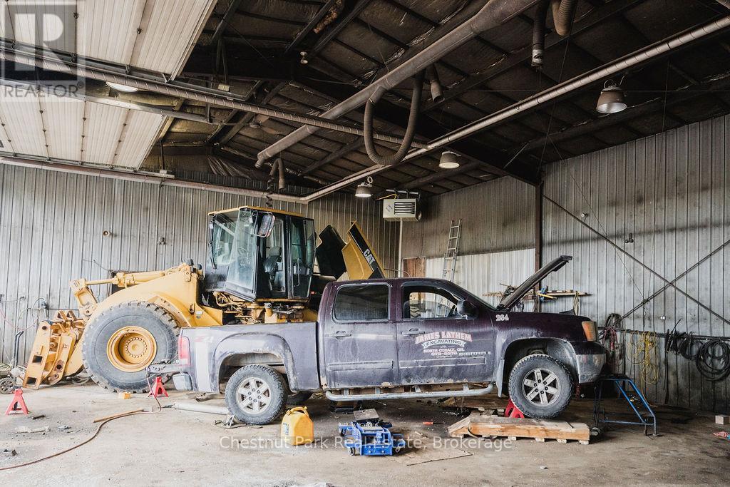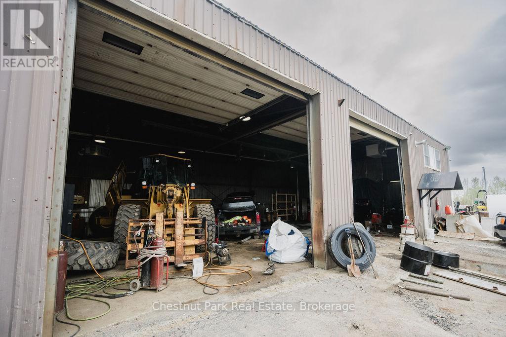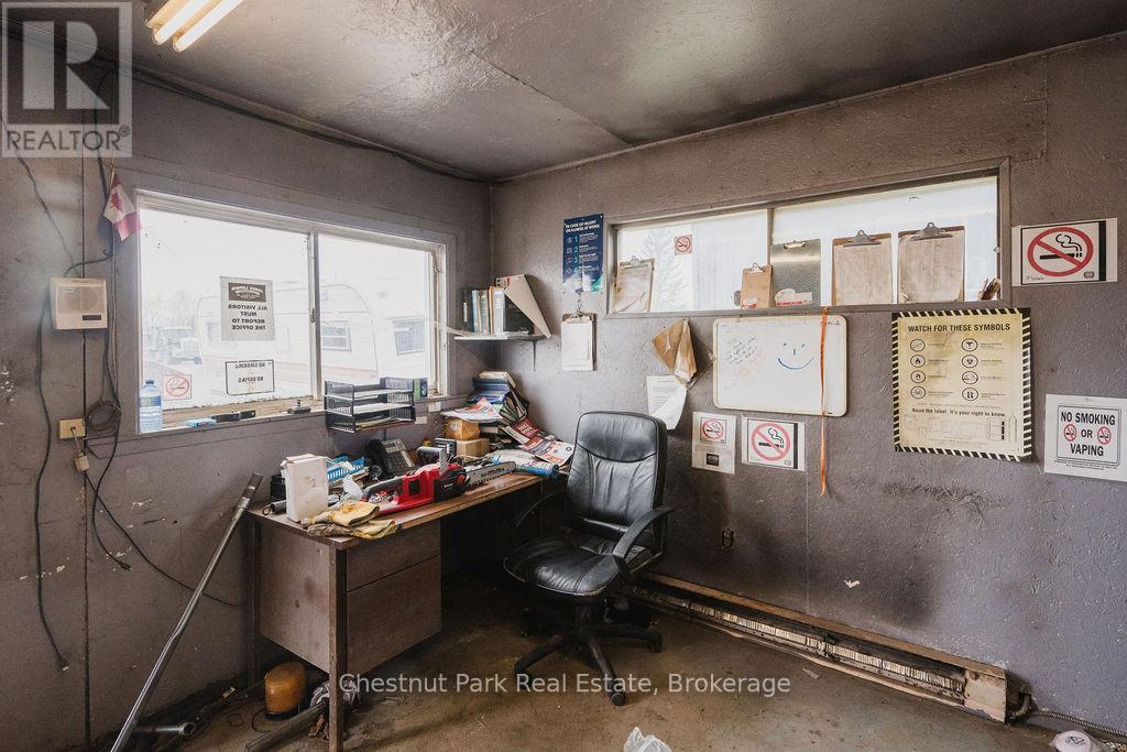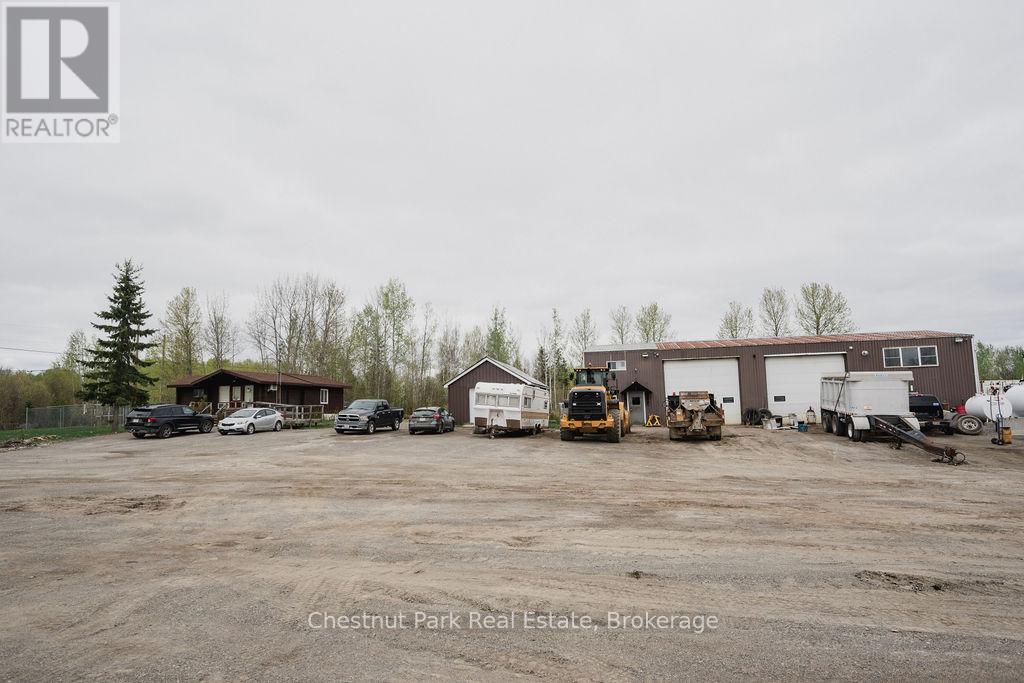 ANOTHER PRICE DROP - WORK IN A WARM SHOP THIS WINTER - Looking for a great deal on a great Shop? Check out this Industrial Property for Sale at 35 Niven Street South in Haileybury (Lathem's Excavating Shop). An exceptional opportunity to acquire a versatile industrial property on approximately 13 acres of land, located at 35 Niven Street South. The site features a 40' x 60' industrial shop with two 14'x 16' roll-up doors at the front and one at the back, two man-doors, and a range of functional interior spaces including an office, parts room, oil storage room, compressor room, washroom, and an upper-level office/storage loft. The shop is equipped with a concrete floor, steel wall cladding, built-in workbench, 200-amp electrical service, natural gas heaters, and is connected to municipal water and sewer. Complementing the shop is a 685 sq. ft. Pan-Abode style office building offering a reception area, private office, file storage room, and a 2-piece washroom ideal for administrative operations. Additionally, the property includes an 18 x 30 garage with steel siding and roof, cold storage capacity, concrete flooring, shelving, an 8 x 8 roll-up door, and one man-door. The level yard provides several cleared acres for storage of aggregate, heavy equipment, and materials. Zoned General Industrial, the site supports a wide range of permitted uses, with additional land fronting Niven Street zoned Rural and three smaller parcels to the north designated R3 (medium density residential), offering future development potential. This is a prime investment for contractors, developers, or businesses seeking a flexible and well-equipped base of operations. A detailed information package is available. (id:64974)