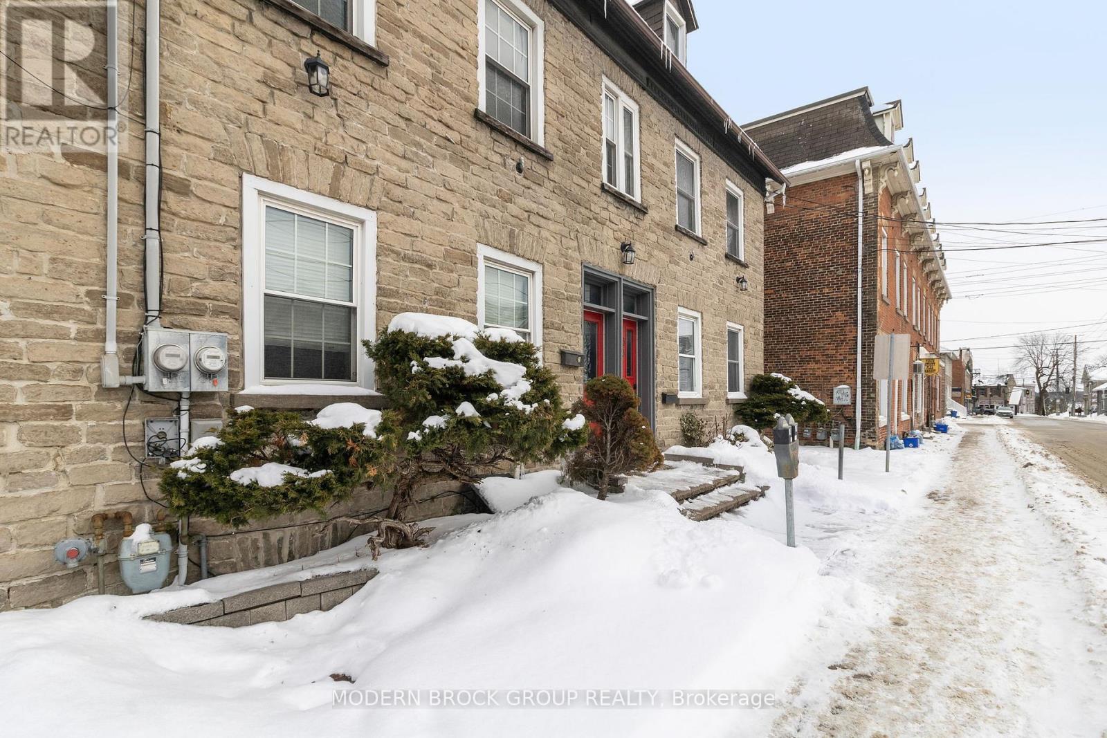 Centrally located mixed-use property offering flexible main-floor space suitable for commercial or residential use, paired with an upper-level residential unit. The main floor features a kitchen and three-piece bathroom, allowing for a variety of potential configurations depending on buyer needs. The layout provides functional separation between living and work areas, with character elements throughout. The main floor space is currently connected to the adjoining unit at 33 Perth Street, allowing for an expanded footprint if purchased together, or it can be closed off and operated independently. The second floor unit is a tenanted residential apartment, providing consistent rental income. This unit offers a practical layout with defined living areas, kitchen, bathroom, and bedroom space. The property includes rear access via Church Street, along with two parking spaces located in the lot behind the building. Positioned steps from shops, restaurants, and waterfront amenities, 35 Perth Street benefits from strong pedestrian exposure while maintaining the enduring appeal of Brockville's historic stone and brick architecture. (id:64974)