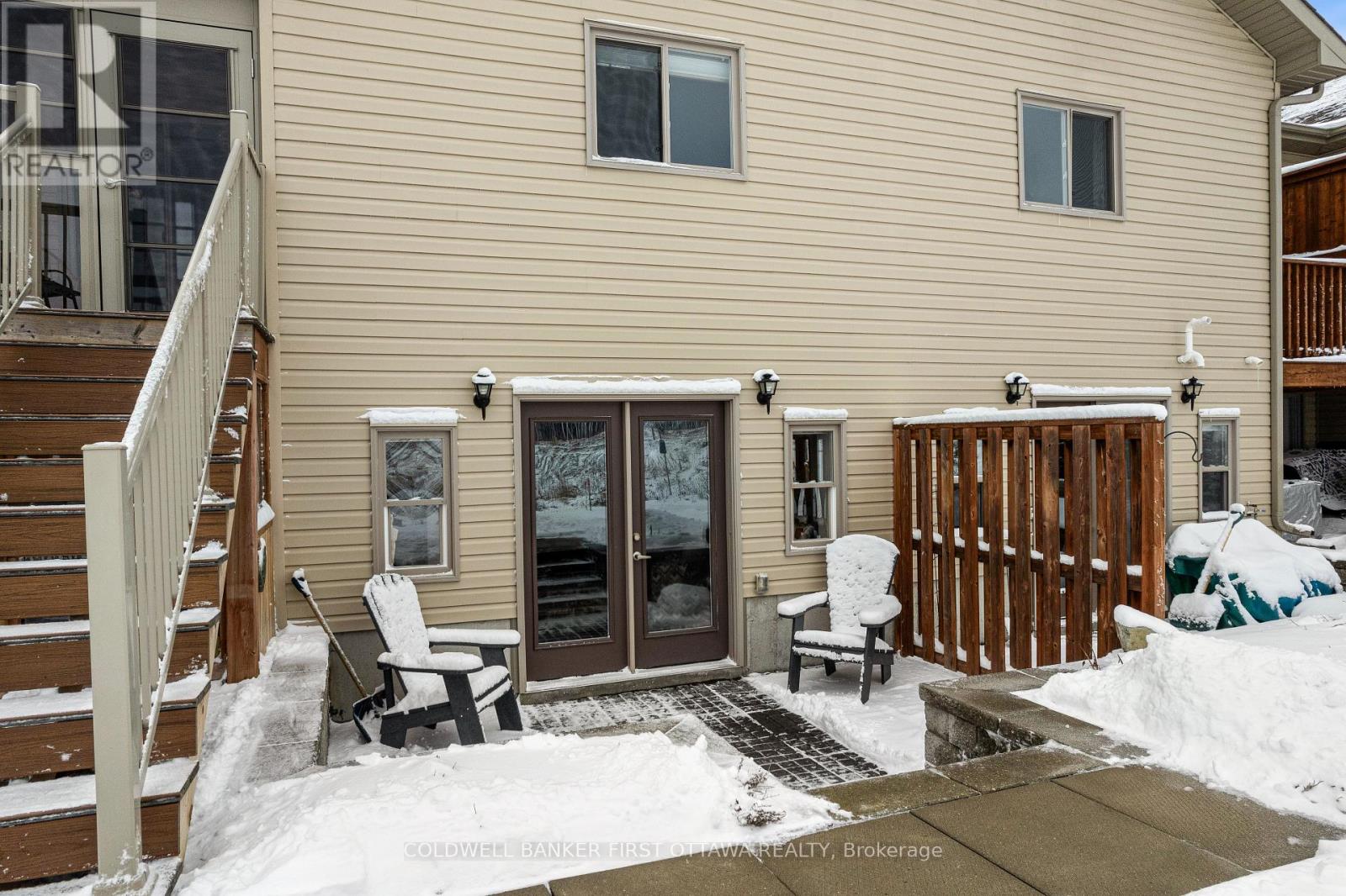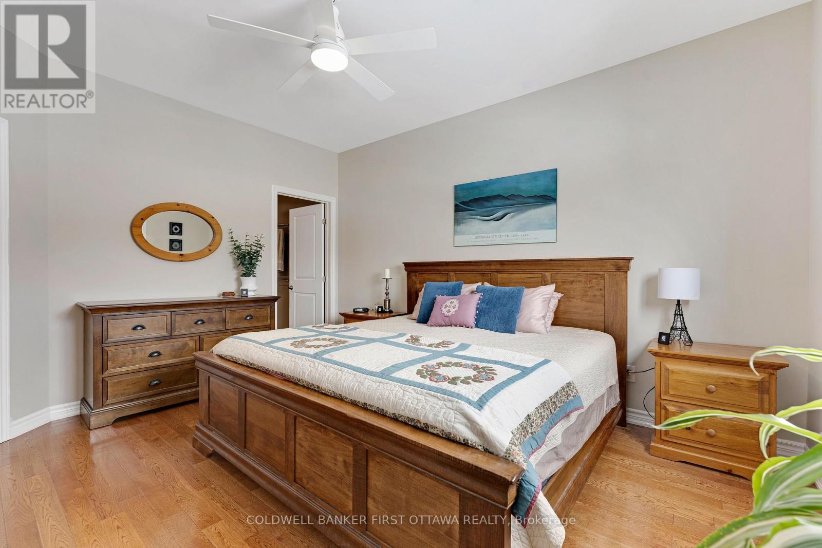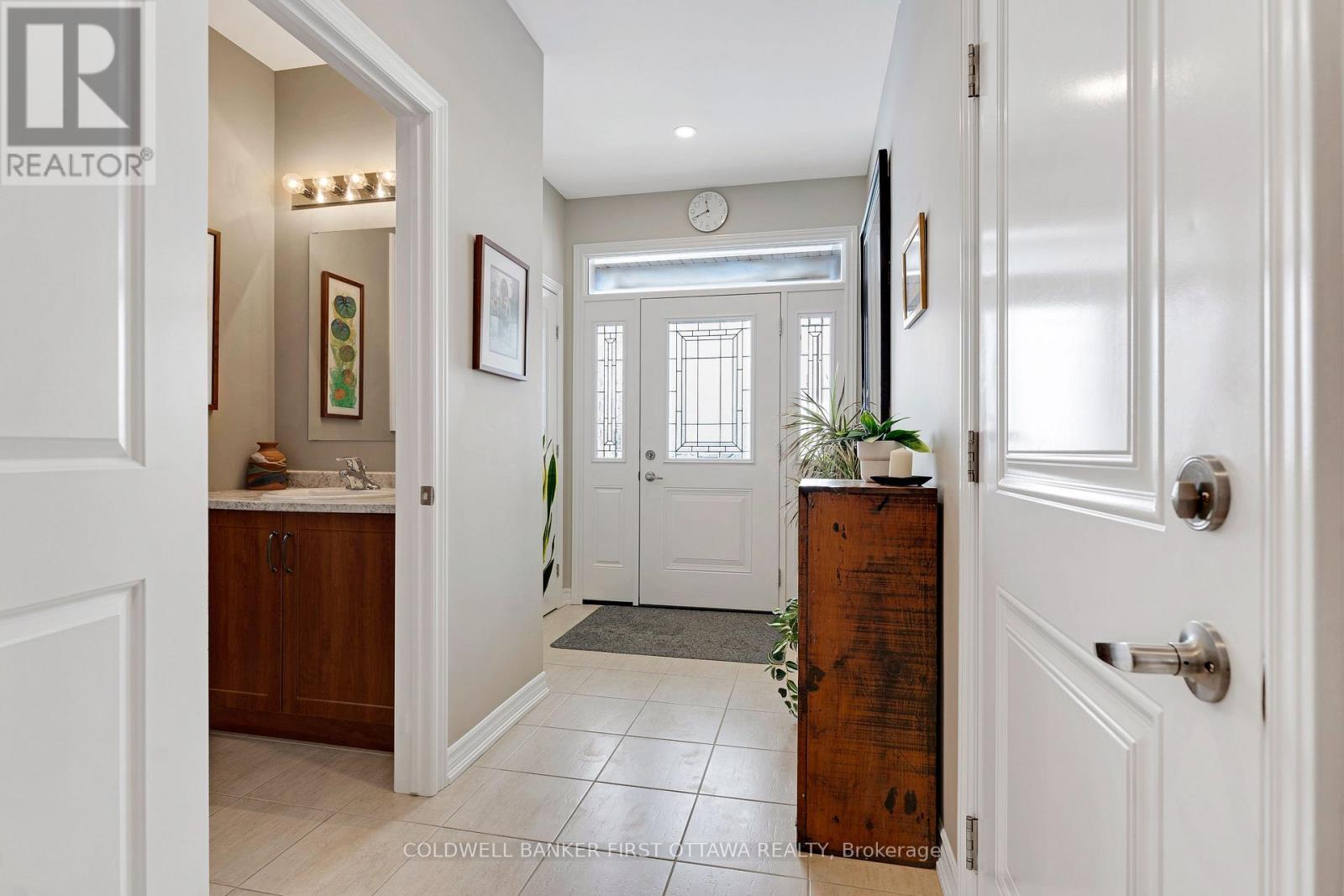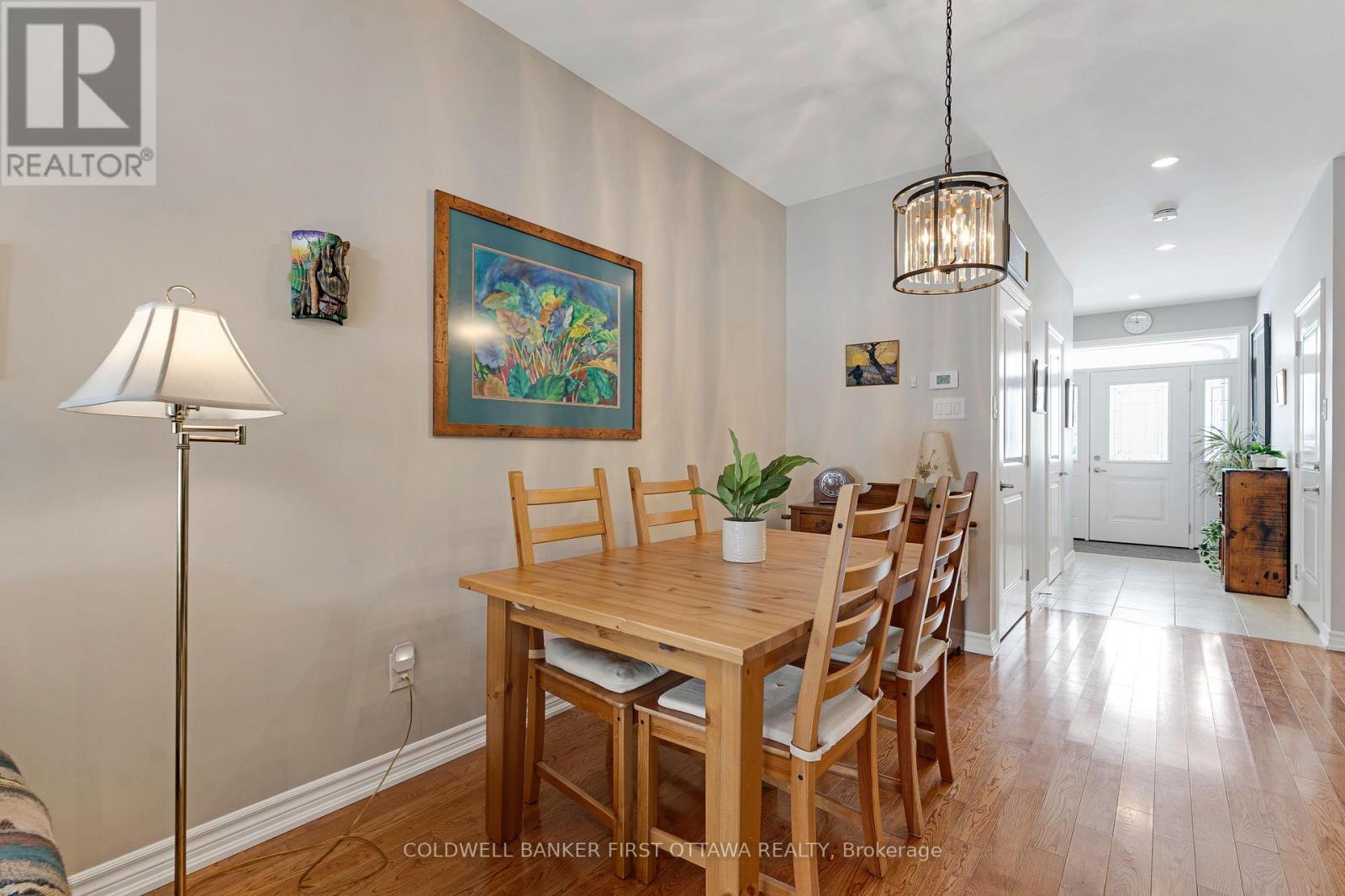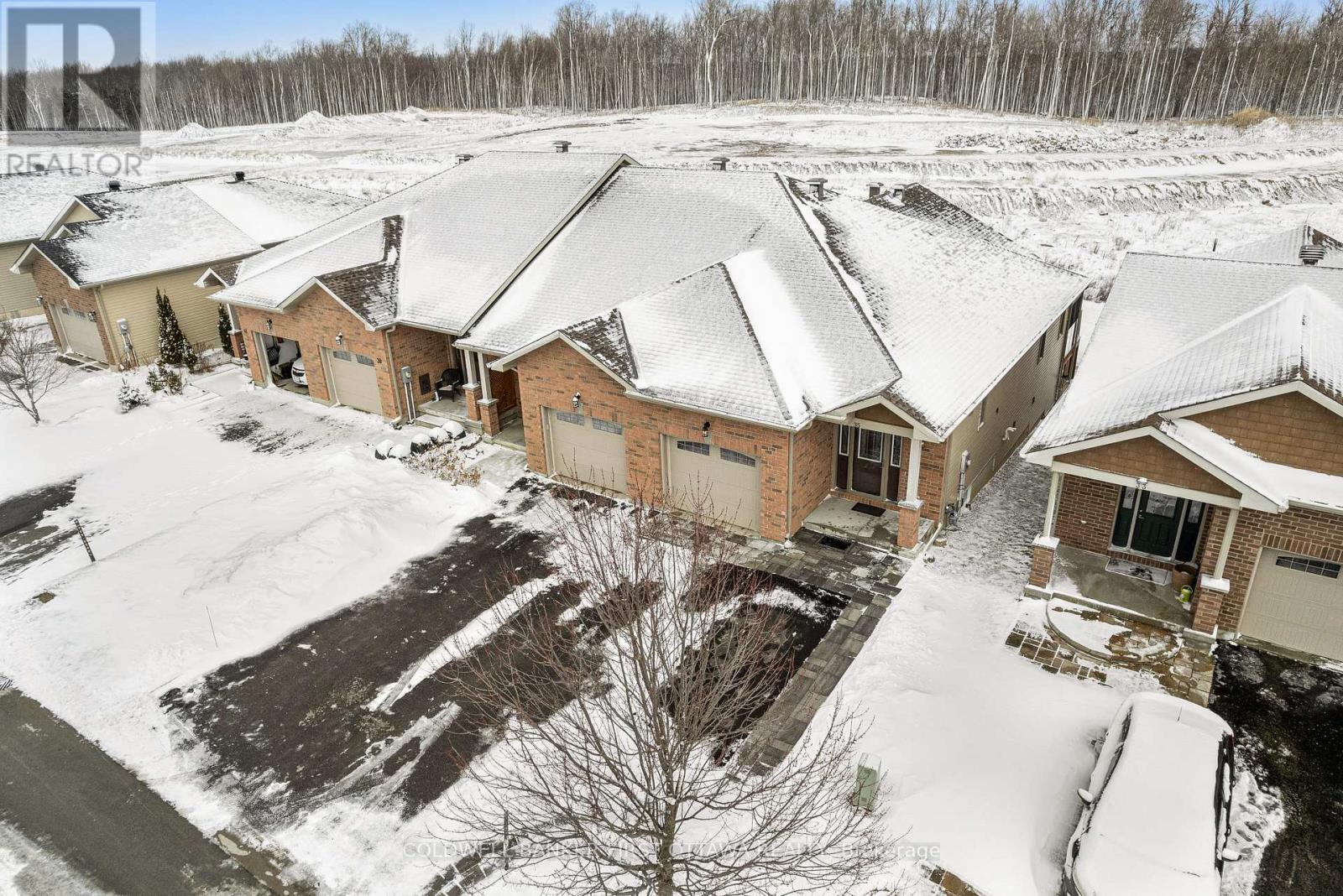 Perth has a way of staying with you. The slower pace, the limestone architecture, the sense that a good life is still lived at a human scale. Perthmore was built with that understanding, and it shows in this lovely 2017 townhome. Inside, the main floor is designed for effortless single-floor living. The primary bedroom and its ensuite are steps from the kitchen, the laundry is on the same level, and the hardwood floors and tile run throughout without a threshold in sight. Large windows with custom blinds pull in natural light across the open floor plan. The kitchen anchors the space with quartz countertops and Fisher & Paykel appliances. The screened Sunspace porch extends your living season without requiring a jacket. Downstairs, a finished lower level adds meaningful flexibility: a second bedroom with walk-in closet and a full bath make it a proper guest suite, a home office with privacy, or a comfortable space for family when they visit. Step out from the lower level onto the sunken patio, where privacy fencing creates a sheltered outdoor room. Beyond it, manicured garden beds carry colour and texture through the seasons, ready to enjoy without demanding your weekend. Past the property line, a nature park and pond is planned that will permanently protect that green horizon. Outside, the brick and vinyl exterior asks little of you, while the attached garage and double-wide driveway handle the practical realities comfortably. Perthmore townhomes surface infrequently - this corner of Perth has earned its reputation quietly, through people who chose it and stayed. Book your showing today to come walk through your new home! (id:64974)