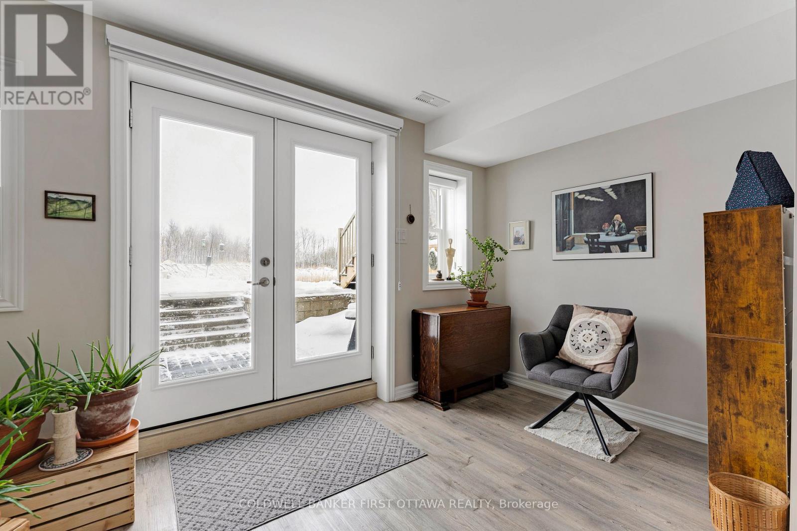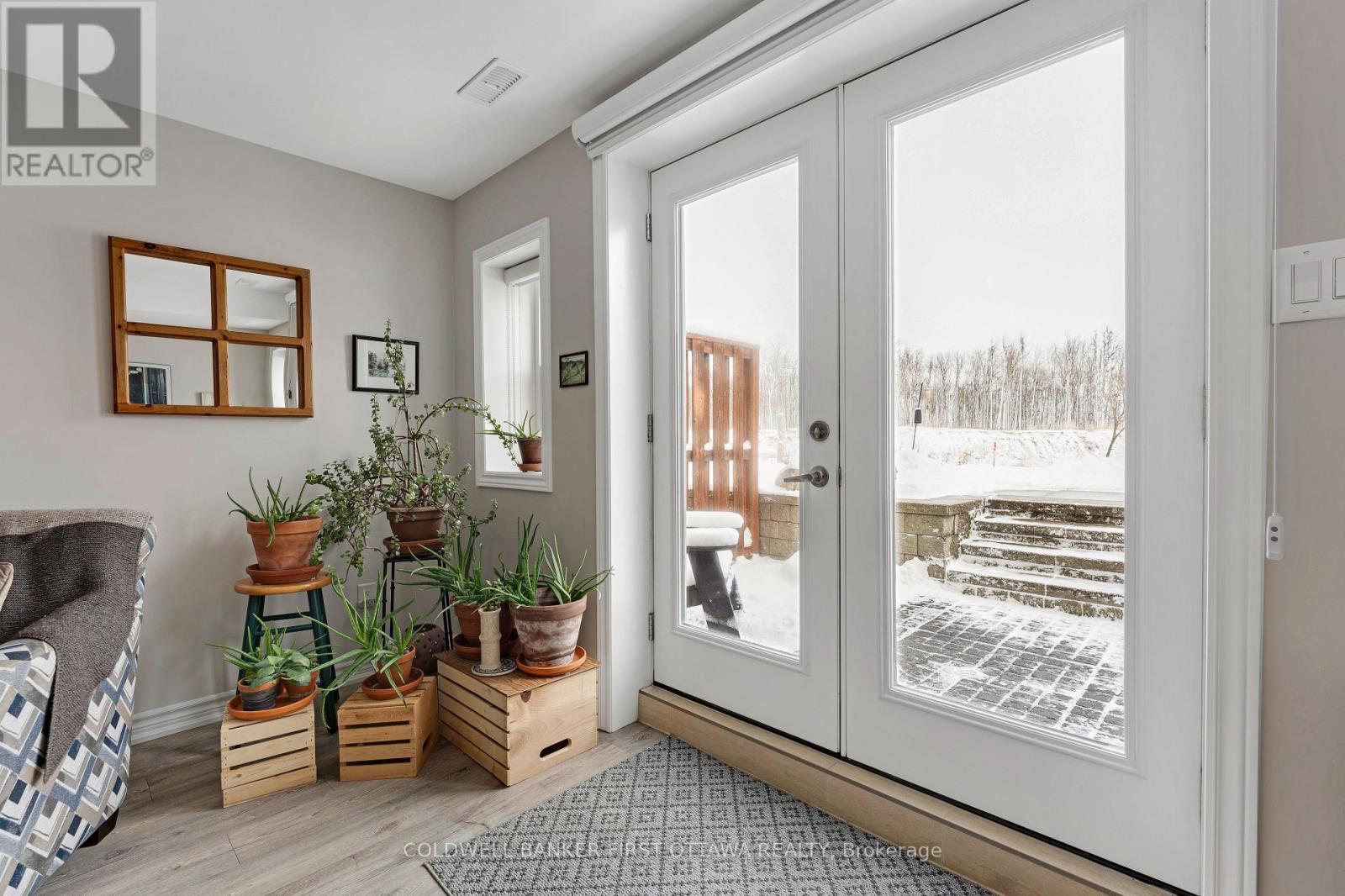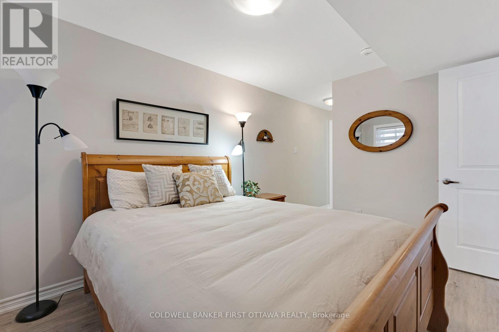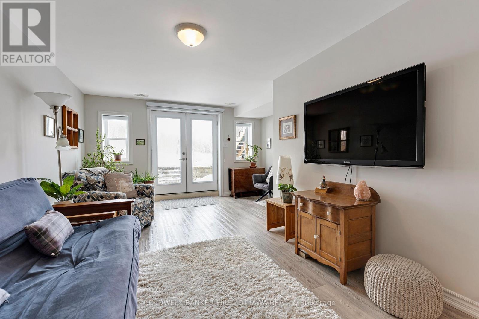 Perth has a way of staying with you. The slower pace, the limestone architecture, the sense that a good life is still lived at a human scale. Perthmore was built with that understanding, and it shows in this lovely 2017 townhome. Inside, the main floor is designed for effortless single-floor living. The primary bedroom and its ensuite are steps from the kitchen, the laundry is on the same level, and the hardwood floors and tile run throughout without a threshold in sight. Large windows with custom blinds pull in natural light across the open floor plan. The kitchen anchors the space with quartz countertops and Fisher & Paykel appliances. The screened Sunspace porch extends your living season without requiring a jacket. Downstairs, a finished lower level adds meaningful flexibility: a second bedroom with walk-in closet and a full bath make it a proper guest suite, a home office with privacy, or a comfortable space for family when they visit. Step out from the lower level onto the sunken patio, where privacy fencing creates a sheltered outdoor room. Beyond it, manicured garden beds carry colour and texture through the seasons, ready to enjoy without demanding your weekend. Past the property line, a nature park and pond is planned that will permanently protect that green horizon. Outside, the brick and vinyl exterior asks little of you, while the attached garage and double-wide driveway handle the practical realities comfortably. Perthmore townhomes surface infrequently - this corner of Perth has earned its reputation quietly, through people who chose it and stayed. Book your showing today to come walk through your new home! (id:64974)