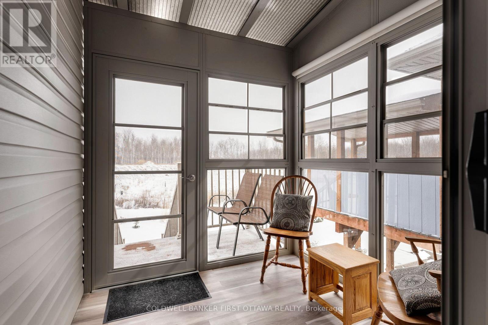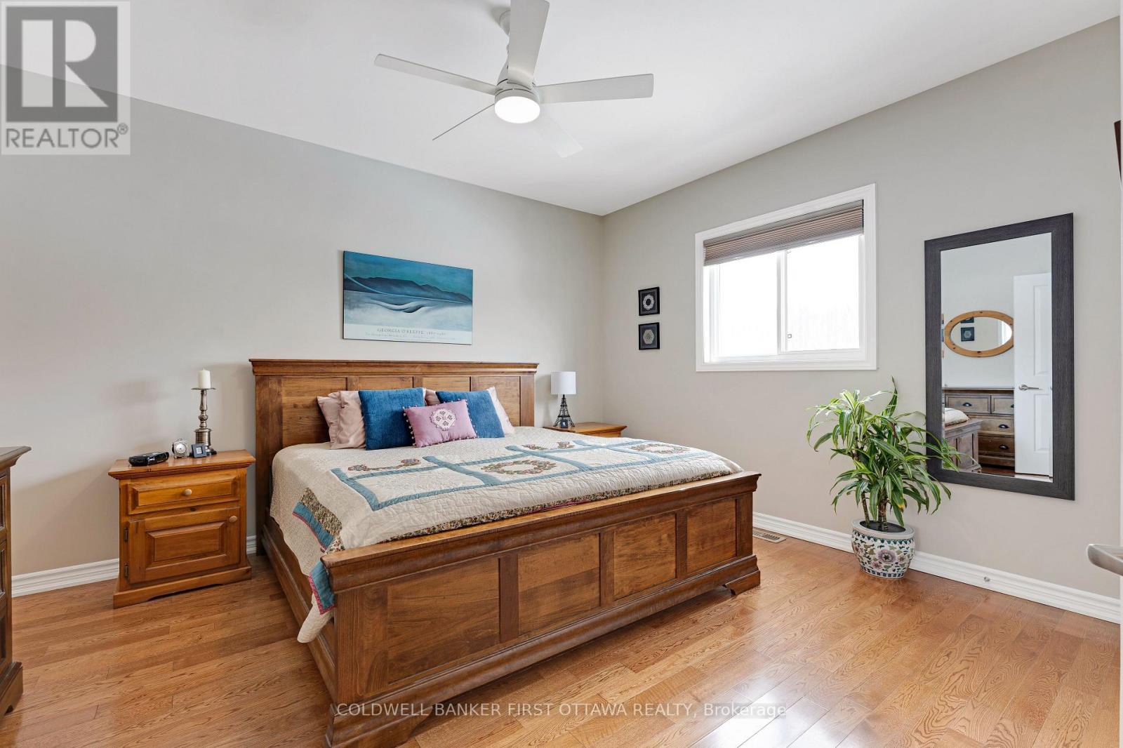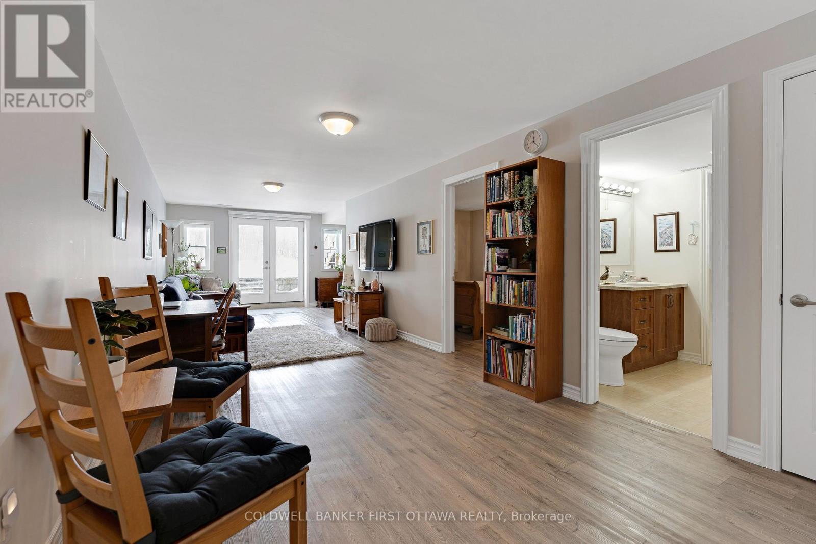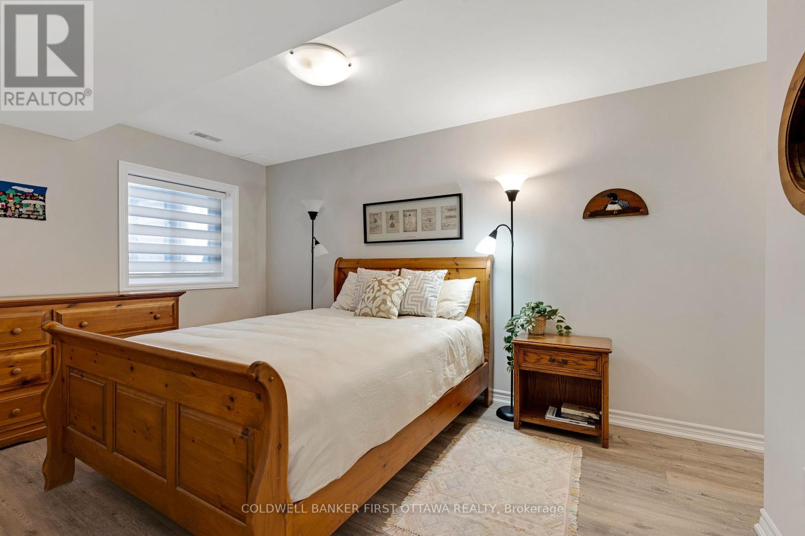 Perth has a way of staying with you. The slower pace, the limestone architecture, the sense that a good life is still lived at a human scale. Perthmore was built with that understanding, and it shows in this lovely 2017 townhome. Inside, the main floor is designed for effortless single-floor living. The primary bedroom and its ensuite are steps from the kitchen, the laundry is on the same level, and the hardwood floors and tile run throughout without a threshold in sight. Large windows with custom blinds pull in natural light across the open floor plan. The kitchen anchors the space with quartz countertops and Fisher & Paykel appliances. The screened Sunspace porch extends your living season without requiring a jacket. Downstairs, a finished lower level adds meaningful flexibility: a second bedroom with walk-in closet and a full bath make it a proper guest suite, a home office with privacy, or a comfortable space for family when they visit. Step out from the lower level onto the sunken patio, where privacy fencing creates a sheltered outdoor room. Beyond it, manicured garden beds carry colour and texture through the seasons, ready to enjoy without demanding your weekend. Past the property line, a nature park and pond is planned that will permanently protect that green horizon. Outside, the brick and vinyl exterior asks little of you, while the attached garage and double-wide driveway handle the practical realities comfortably. Perthmore townhomes surface infrequently - this corner of Perth has earned its reputation quietly, through people who chose it and stayed. Book your showing today to come walk through your new home! (id:64974)