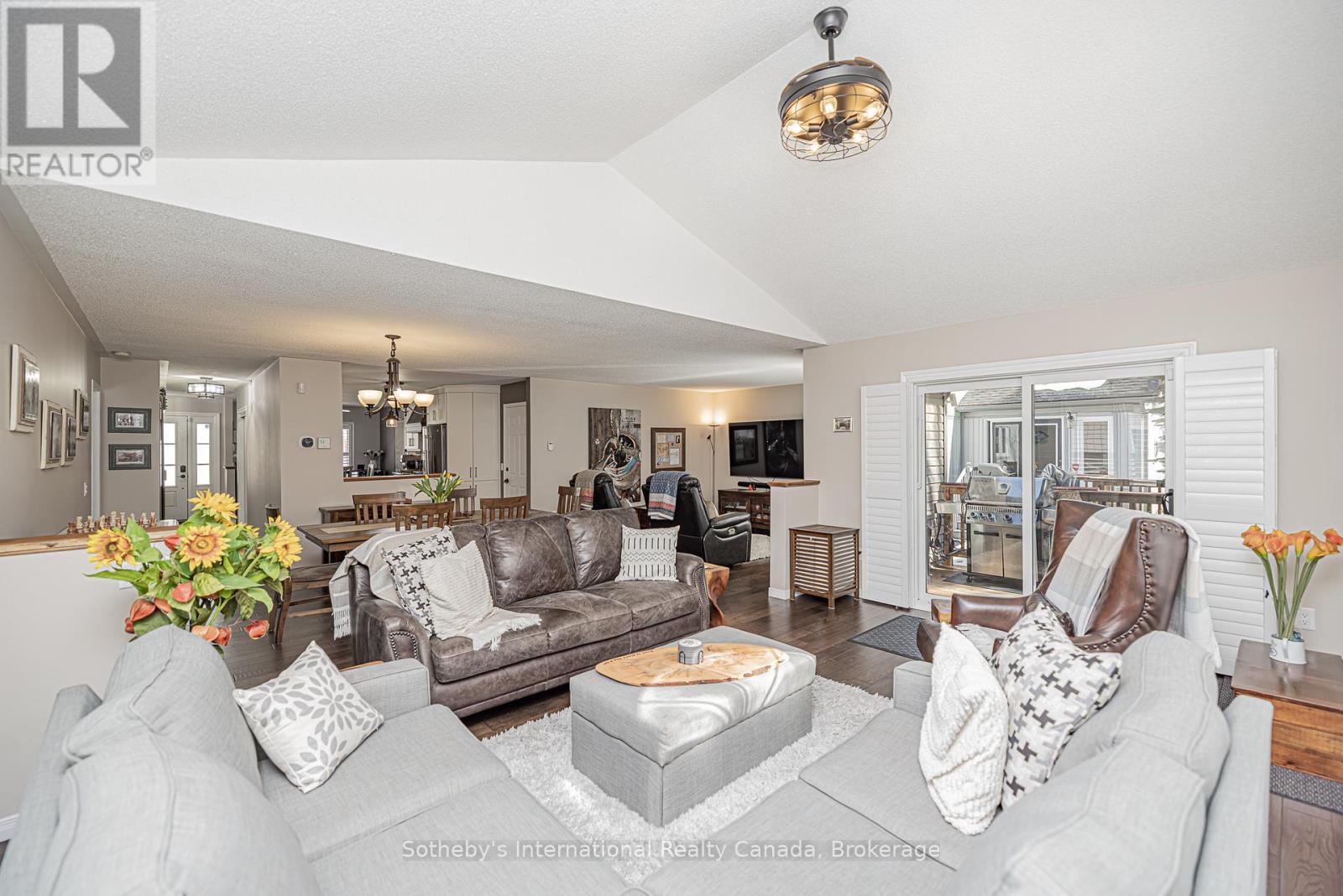 This is the one you've been waiting for! Welcome to Gravenhurst's Pineridge retirement subdivsion with an exceptional property that truly stands apart. From the moment you arrive, the pride of ownership is unmistakable, with impeccable curb appeal, manicured grounds, and a level of care that is rarely seen. Step inside and experience a home where no expense has been spared and no detail overlooked. Every inch has been thoughtfully designed and meticulously upgraded and maintained, showcasing high-end finishes, quality craftsmanship, and timeless style - from the new metal roof, eaves, soffits and siding, right down to the finished garage floor. The spacious, well-appointed layout offers both comfort and functionality, ideal for everyday living and entertaining alike.The kitchen is a standout feature, beautifully updated with premium materials and modern touches, flowing seamlessly into inviting living spaces filled with natural light. Generous bedrooms provide peaceful retreats, while bathrooms reflect the same commitment to quality and attention to detail found throughout the home. The fully finished basement (a rarity in Pineridge) offers additional living space providing flexibility for family, guests, or a home office, all finished to the same exacting standards. Mechanical systems and major components have been carefully maintained , providing peace of mind for years to come. Outside, the property continues to impress with a private, well-designed outdoor space perfect for relaxing or entertaining. Whether enjoying quiet mornings or hosting gatherings, this backyard is an extension of the home's exceptional living experience.Located close to amenities, trails, and the beauty of Muskoka, this home delivers the perfect balance of convenience and lifestyle.Immaculate, move-in ready, and finished to perfection-this is a rare opportunity to own a home where quality, care, and pride shine through at every turn. Don't miss your chance to make it yours. (id:64974)