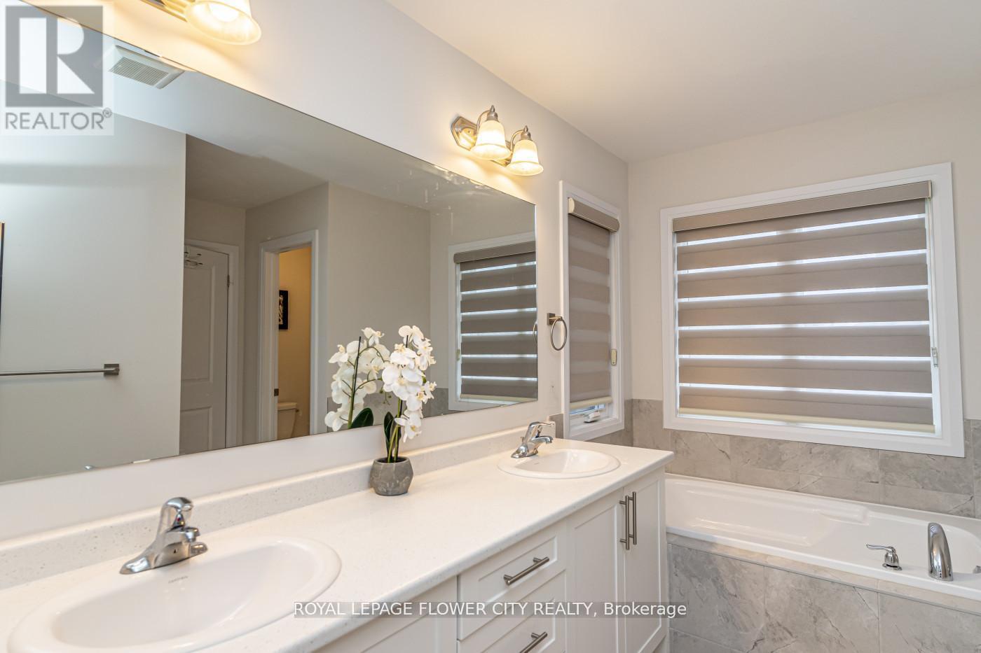 Welcome to this stunning 4-bedroom fully brick detached home, perfectly combining elegance and functionality. Featuring hardwood floors throughout main floor and upstairs hall way. This home exudes quality crafts man ship. The modern kitchen offers quartz countertops, stainless steel appliances, and a spacious layout-ideal for family gatherings and entertaining. Modern zebra blinds and Large windows bringing in natural light, and a well-designed floor plan that provides both openness and privacy. Each bedroom is generously sized, with three full washroom supstairs for ultimate convenience. Situated on a no-sidewalk lot with a large driveway accommodating up to 4 cars, this home offers both curb appeal and convenience. Located in a quiet and desirable Erin neighbour hood, this home is the perfect blend of style, space, and comfort. A truly move-in-ready gem! (id:64974)
