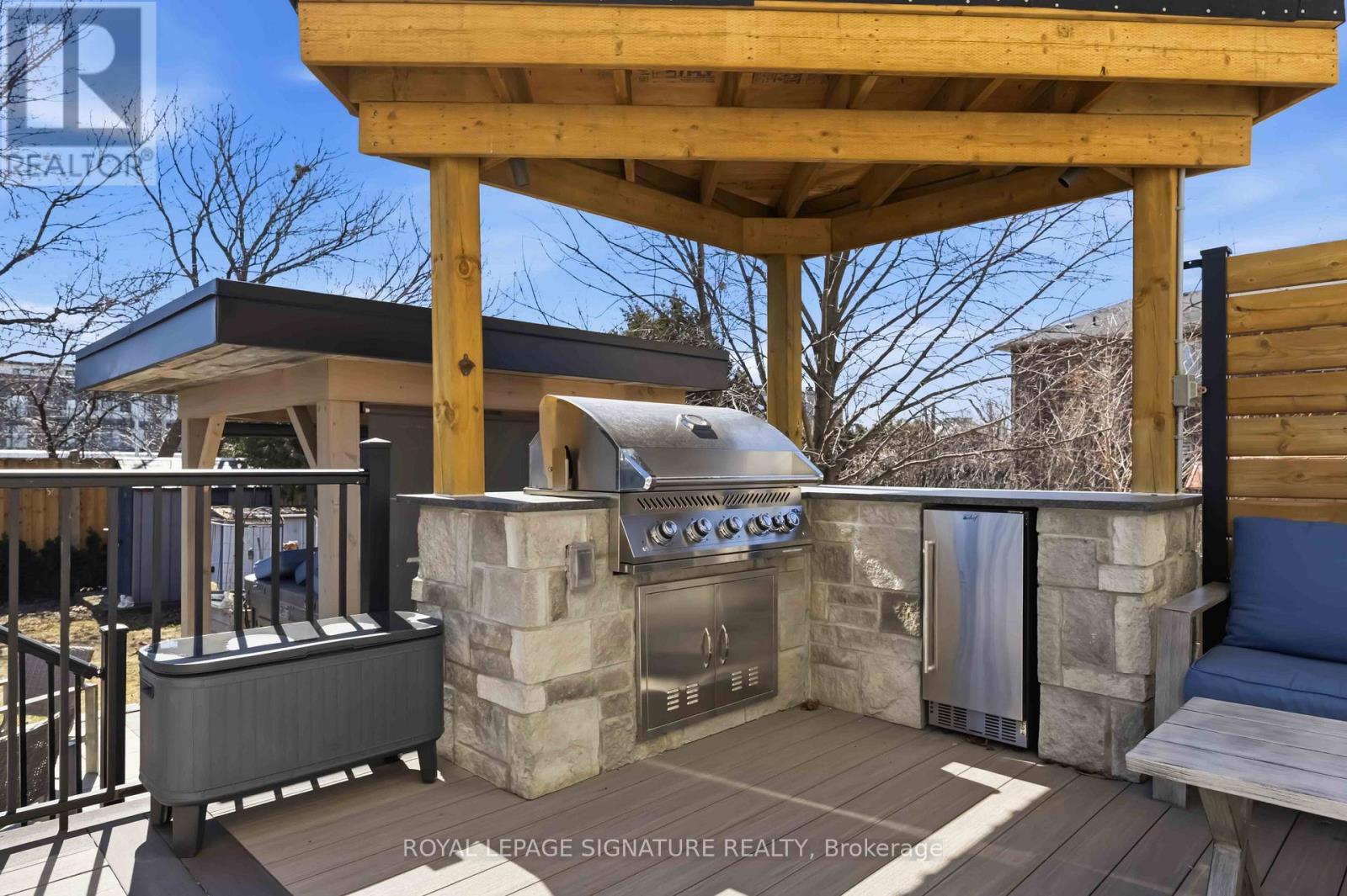 Step into 35 Rainbow Drive, a beautifully updated home where modern comfort meets thoughtful design. Expanded with a second-storey addition 12 years ago, the main floor boasts soaring 8.5-foot ceilings, while the upper level features 9-foot ceilings, filling every room with light and openness. Rich hardwood floors and fresh professional paint create a warm, move-in-ready atmosphere throughout. The main floor offers a cozy, open-concept layout with a functional design, perfect for everyday living and entertaining, complemented by a separate walk-in pantry for added storage. The primary suite is a sun-filled retreat with an elegant tray ceiling, spa-inspired ensuite featuring floating vanities, and a spacious walk-in closet that blends style with function. Every detail has been carefully considered, including 7.5-inch baseboards, built-in surround sound, and fully owned, updated systems: furnace, tankless hot water, humidifier, water softener, and updated plumbing, and electrical, providing comfort and peace of mind. Step outside to a spacious backyard designed for entertaining and relaxation. Relax in the saltwater hot tub beneath a custom louvered pergola crafted from 100-year-old reclaimed barn wood, complete with a skylight that fills the space with natural light. Entertain on the low-maintenance PVC deck, gather around the cozy gas fire pit, or enjoy the built-in outdoor kitchenette with Napoleon gas BBQ, fridge, and granite countertops. Located just steps from public transit and minutes from the Humber River Trail, Market Lane, schools, shopping, and highways, 35 Rainbow Drive blends lifestyle, convenience, and thoughtful upgrades. Lovingly maintained and move-in ready, this home offers the perfect setting for comfortable living and memorable gatherings. (id:64974)