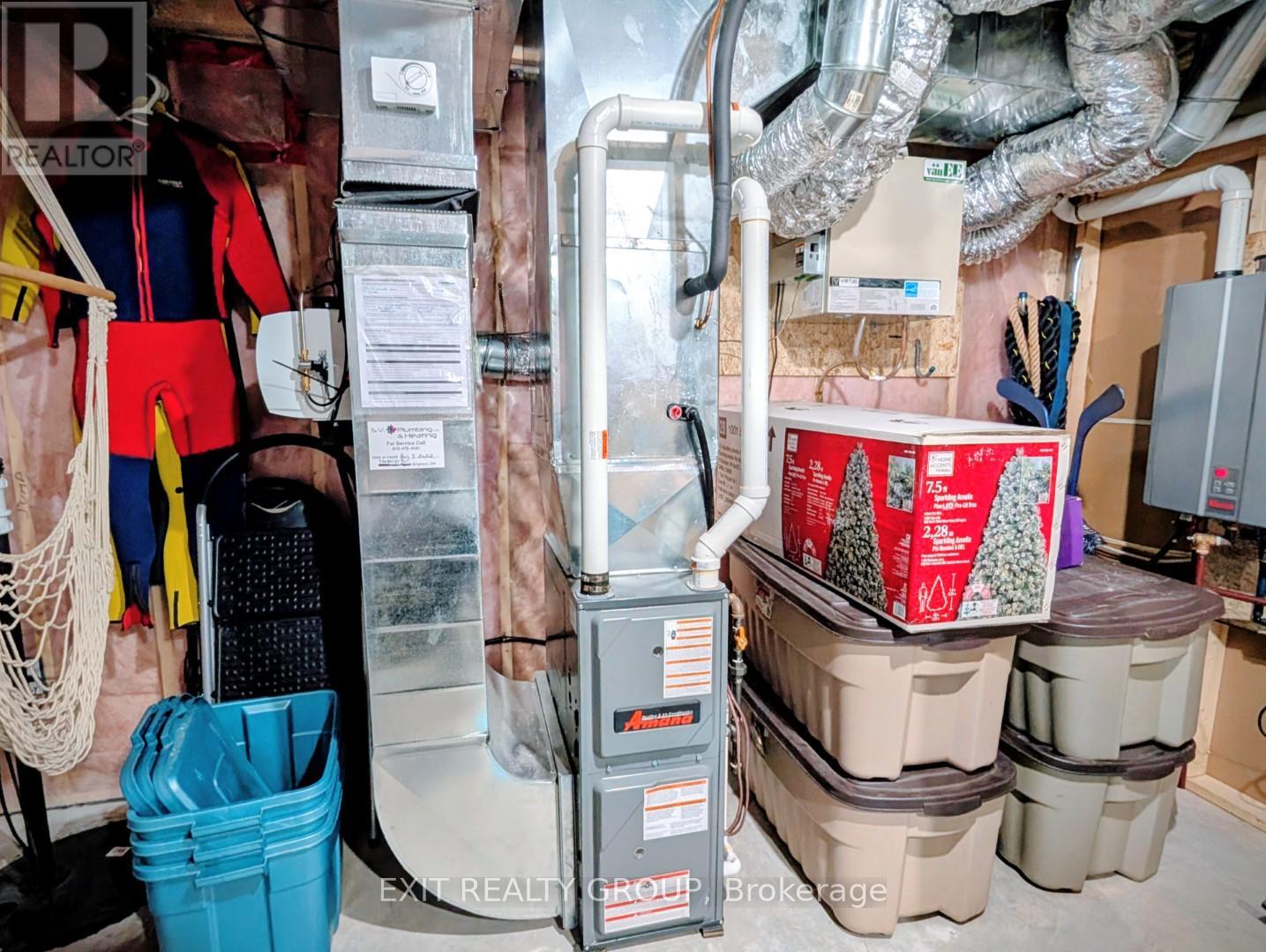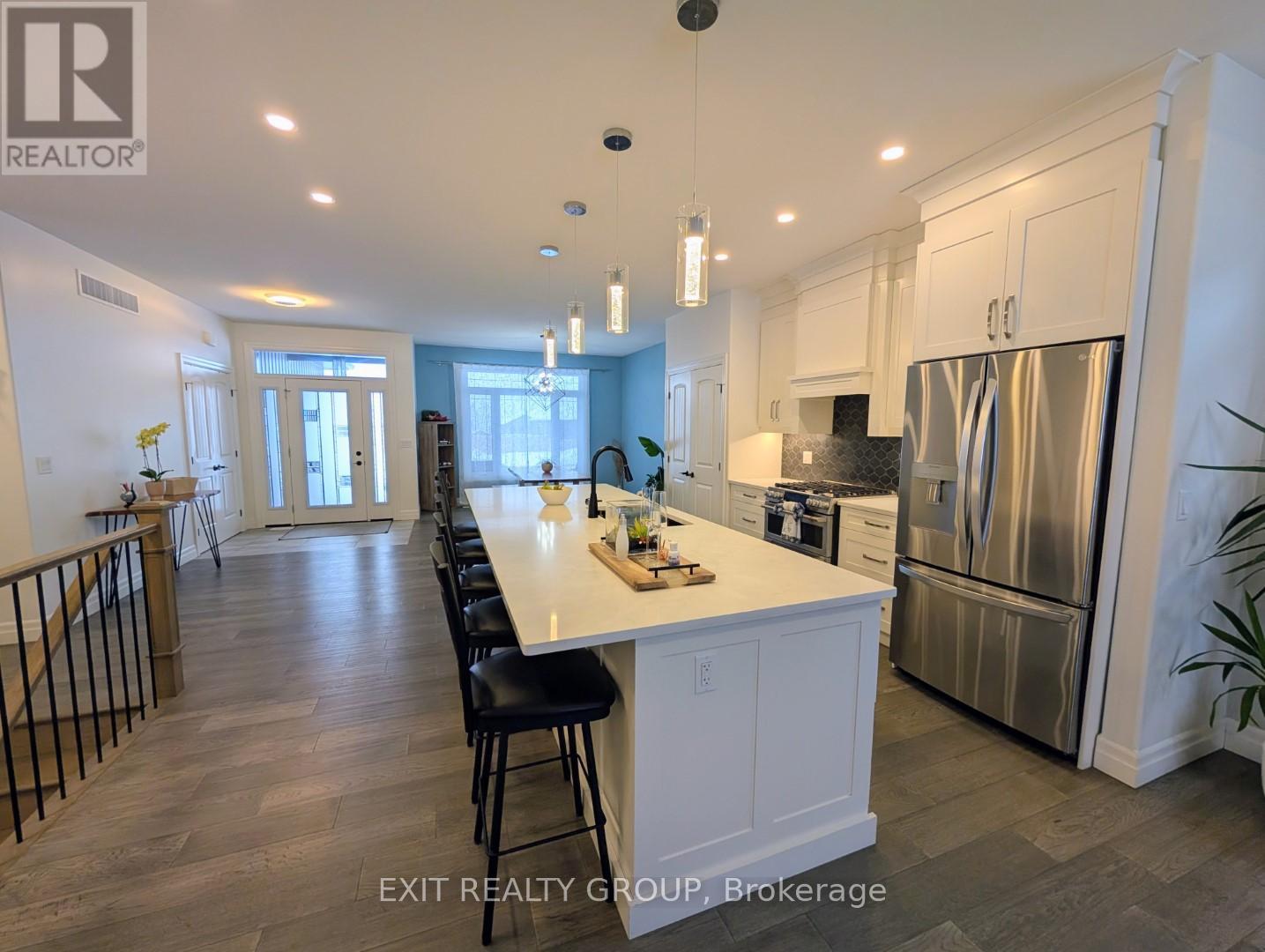 Welcome to 35 Schmidt Way, an upgraded and well-maintained bungalow built in 2022, offering modern design, premium finishes, and generous living space in a family-friendly neighbourhood with quick access to CFB Trenton and Highway 401. Thoughtfully designed & meticulously cared for, this home is ideal for families, military relocations or anyone looking for a modern bungalow with room to grow. The main floor features 9-foot ceilings throughout and offers three well-appointed bedrooms including a spacious primary suite complete with a walk-in closet and a private ensuite. A separate second full bathroom is conveniently located on the main level. The living room showcases a tray ceiling, gas fireplace, and large windows that flood the space with natural light, while engineered hardwood flooring and upgraded lighting enhance the open, airy feel. At the heart of the home is the stunning open-concept kitchen, designed for both everyday living and entertaining. Highlights include an impressive 10-foot quartz island with additional cupboard storage, ceiling-height cabinetry, upgraded backsplash, pantry, and a 2025 electric/gas stove. Transom windows further elevate the space and the thoughtful layout offers both style and functionality. The fully finished basement expands the living area with a large recreation room, two additional bedrooms, a 3 piece bathroom and a finished laundry room, providing flexible space for family living, guests, or home office needs. Additional features include a finished attached garage, HRV system, furnace with humidifier and central air, on-demand water heater, sump pump, gas line for BBQ, interior and exterior pot lights and pride of ownership throughout. Step outside to a fully fenced backyard designed for enjoyment, featuring a covered deck and a properly installed 2022 6+ seater hot tub set on compacted limestone with a defined walkway. A move-in-ready home with premium upgrades in a sought-after location-simply unpack and enjoy. (id:64974)