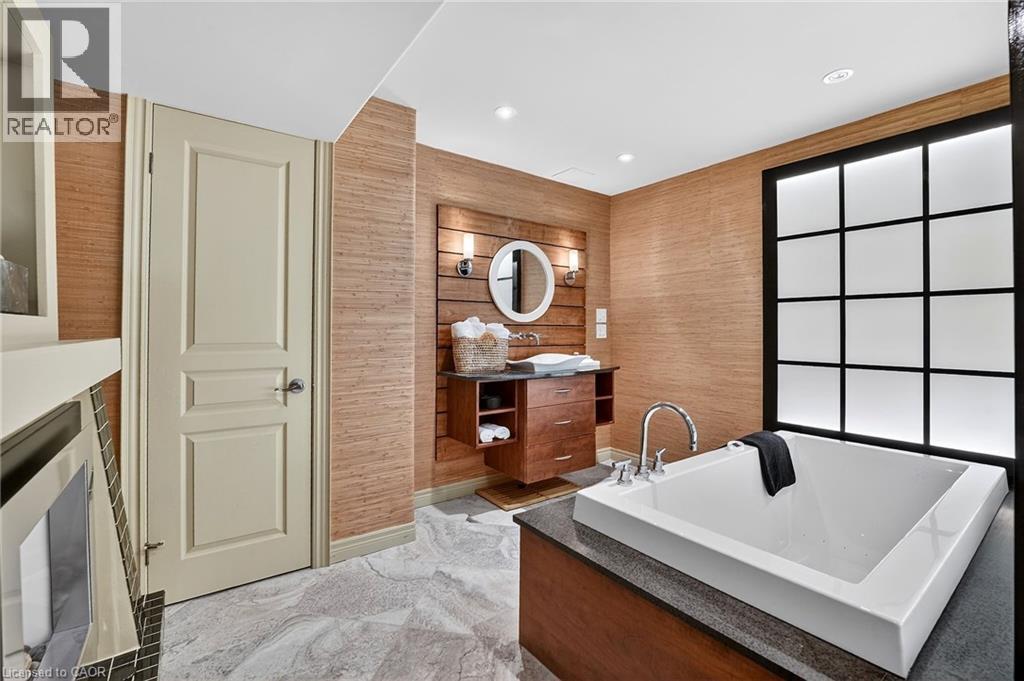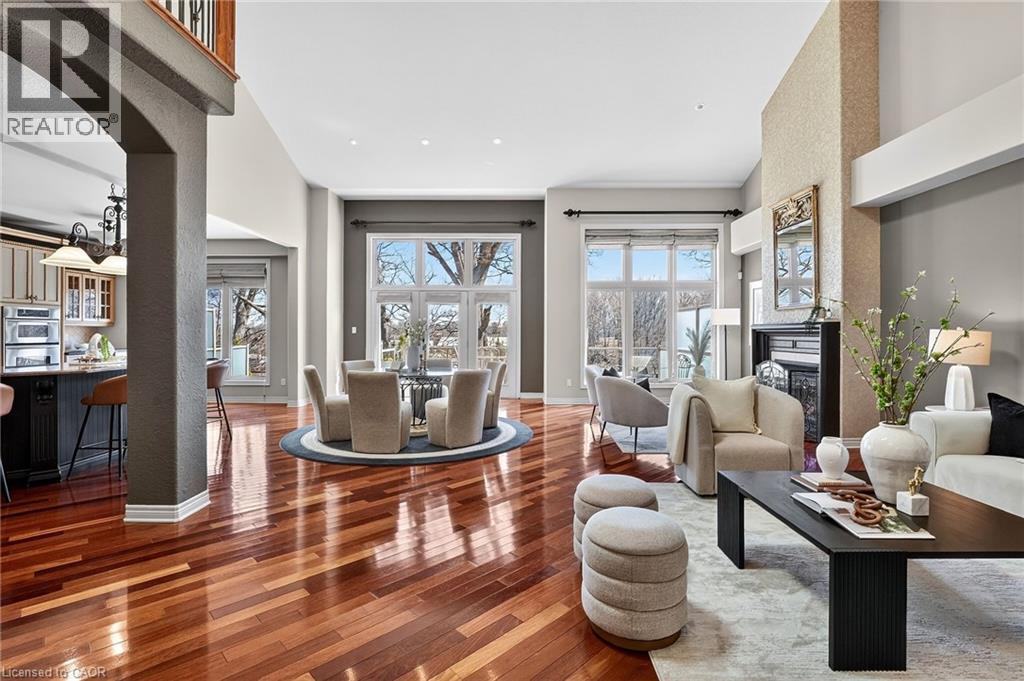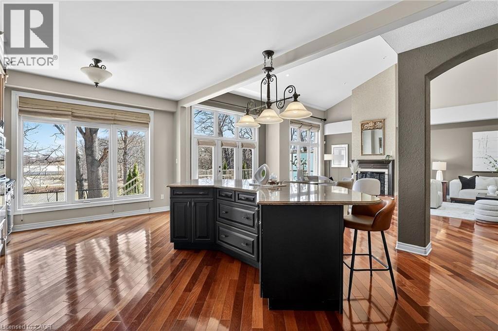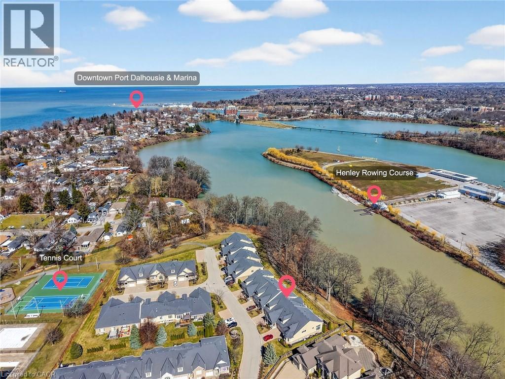 Welcome to Victory Walk in Port Dalhousie, St, Catharines - Part of an exclusive collection of luxury waterfront bungaloft townhomes, backing directly onto the Martindale Pond waterway with direct access to Lake Ontario. This executive condominium residence offers approximately 3,000+ sq.ft. of fully customized living space, thoughtfully designed for both comfort and entertaining. From the front, enjoy a beautifully landscaped yard, inviting sit-out porch, interlock driveway, double car garage and convenient guest parking. Inside, the main level in a grand entrance with impressive 18' vaulted ceilings, Brazilian Cherrywood hardwood flooring throughout and wall-to-wall windows that frame tranquil, tree-lined water views. A seamless open-concept layout connects the living, dining, and kitchen areas-featuring granite countertops, ample cabinetry, a vast central island, additional beverage fridge, skylight, and a cozy gas fireplace. A double door walk-out lead to a spacious deck with remote awnings, overlooking the waterway, Henley Island, and nearby rowing clubs. The upper-level primary bedroom is a private retreat, complete with a full walk-in closet and 3-piece ensuite. The fully finished basement expands your living options with an additional bedroom, 4-piece bath with a connecting 2-piece spa inspired room complete with bubbler tub, electric fireplace and back-lit walls. A custom bar and bonus workshop/craft room complete the space as well as a separate basement walk-out which creates an ideal potential for an in-law or multi-generational suite to explore. Experience refined waterfront living with access to local amenities, water recreation, community pool/tennis steps away, Marina’s, East and West Piers, the village downtown, the waterfront trail out your back door, parks, minutes to wine country, 20 mins to Niagara Falls/Attractions and Casinos, Premium golf, highway access and the unmatched charm of this sought-after lakeside community. (id:64974)