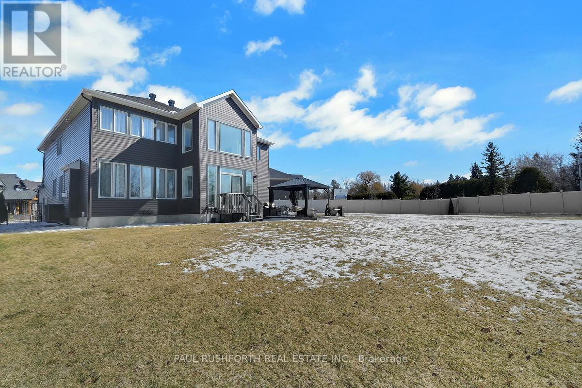 Set on an oversized lot in Carp, this exceptional home (4229+1800 square foot) offers a rare blend of luxury, space, & thoughtful design. Over $300,000 in premium builder upgrades, every detail has been carefully curated to deliver both style & everyday functionality.From the moment you enter, soaring ceilings & elegant finishes create a bright, open atmosphere. The main floor features a private office, formal living & dining areas, & a spacious family room filled with natural light all seamlessly connected for effortless living and entertaining.At the heart of the home is a stunning chef's kitchen, complete w/high-end integrated built-in appliances, all from Miele sleek cabinetry, & a layout designed for everything from quiet mornings to hosting unforgettable gatherings.Upstairs, you'll find a beautifully designed layout w/4 generous bedrooms. The primary suite offers a peaceful retreat, while the second bedroom features its own private ensuite perfect for guests or extended family. Bedrooms three & four are connected by a well-appointed Jack & Jill bathroom, combining privacy w/convenience.A standout feature of the home is the sun-filled solarium an inviting space ideal for morning coffee, a work-from-home setup, or simply unwinding in natural light.The fully finished lower level expands your living space with 2 additional bedrms, a large recreation area, and a stylish bar perfect for entertaining, game nights, or relaxed family time. Gym & Theatre room as well. The basement has legal permit and built by the builder & can easily be converted to a separate suite if need be.Outside, the oversized fenced lot offers both privacy and endless potential, whether you envision a pool, custom patio, or outdoor retreat.Located in a quiet, upscale enclave just minutes from Kanata, this home delivers the perfect balance of tranquility and city convenience.Flat ceilings throughout and upgrades throughout a truly one-of-a-kind property.Monthly association fee: $299 (id:64974)