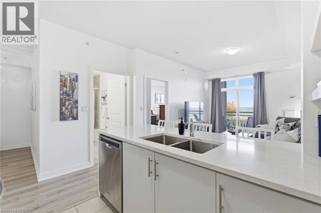 Lakeside living just 15 minutes from downtown Burlington's vibrant shops, restaurants, and waterfront charm. Bright and spacious 1 bedroom + den condo with breathtaking waterfront views! This carpet-free home offers an open-concept design, a modern kitchen with quartz countertops, in-suite laundry, and plenty of natural light. Enjoy lake views from your balcony, living room, and even while preparing meals in the kitchen. The building offers fantastic amenities induding a rooftop patio and party room. Ideally located minutes from the QEW, GO Station, and scenic waterfront trails. (id:64974)