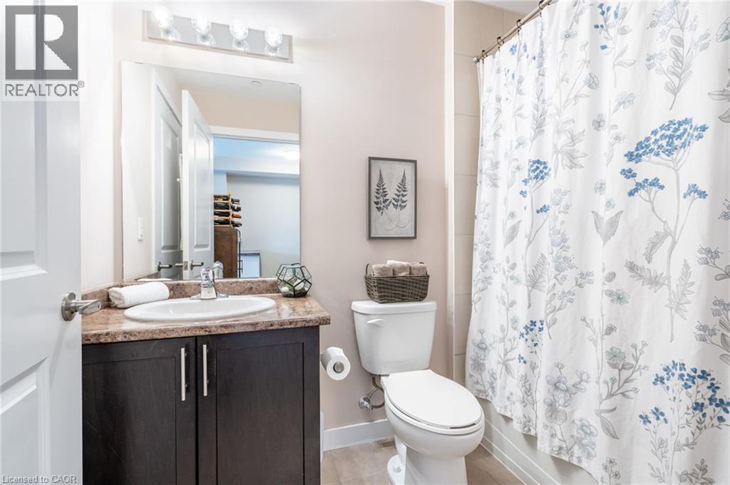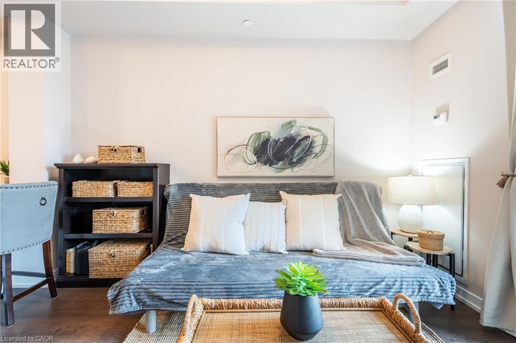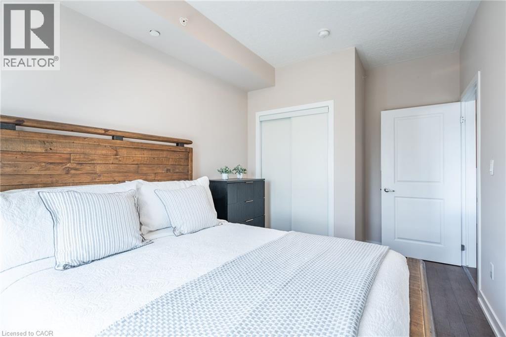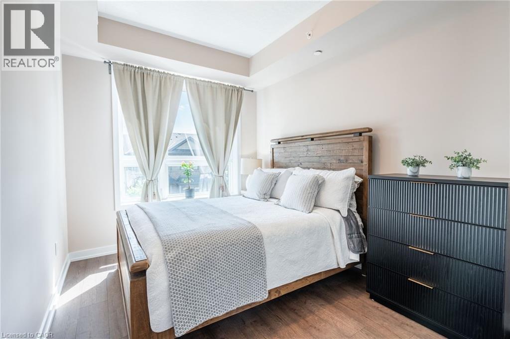 Discover boutique lakeside living in this stylish one-bedroom condo at the Waterfront Trails in Stoney Creek. Located in a charming four-storey building right on the lake, this freshly painted unit features newer wide plank flooring, a modern kitchen with stainless steel appliances and a breakfast bar. This unit features in-suite laundry and sliding doors that open to a private balcony. Enjoy the convenience of one owned underground parking space and one owned locker along with building amenities including a rooftop terrace with stunning lake views, an exercise room, bicycle storage and ample visitor parking! With a walking trail at your doorstep, easy beach access, quick access to the QEW and local amenities, this condo is a perfect opportunity for first-time buyers or investors seeking a turn-key property in a prime waterfront location. Don’t be TOO LATE*! *REG TM. RSA. (id:64974)