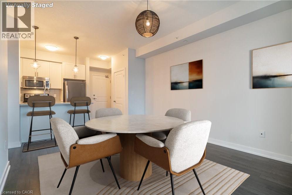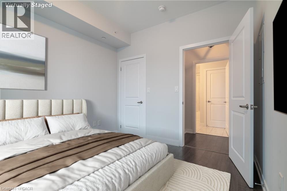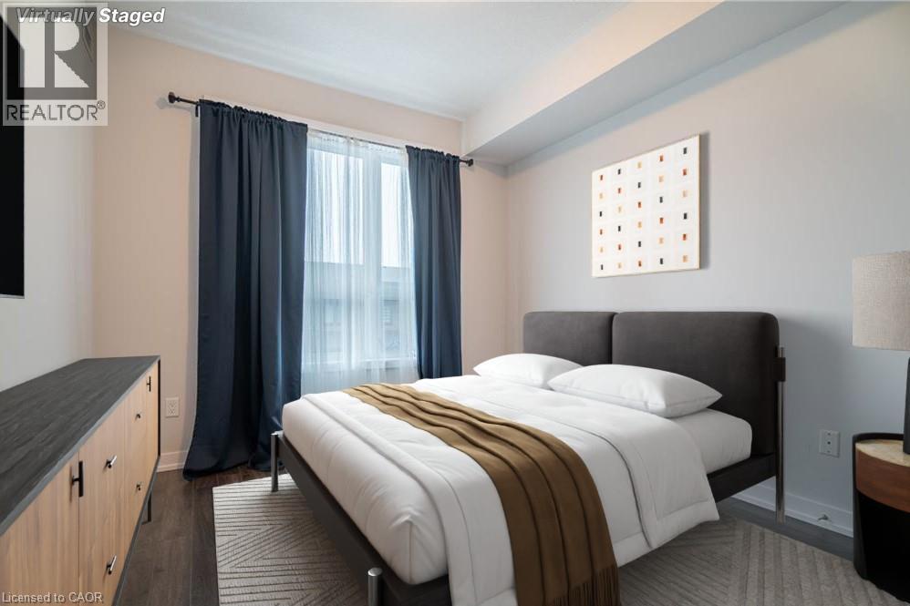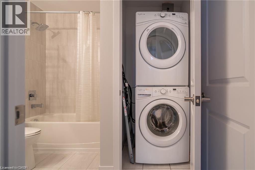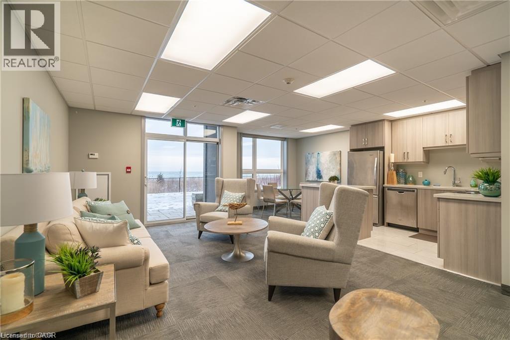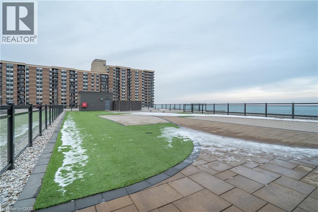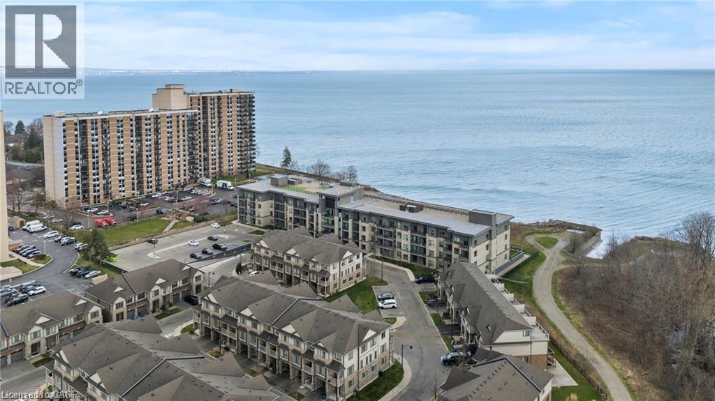 Waterfront living at its finest awaits in this one bedroom condo, offering a perfect blend of modern design, comfort, and convenience. Step inside to discover 575 square feet of thoughtfully designed living space, enhanced by a host of stylish upgrades throughout. The open concept layout features elegant wood flooring, sleek quartz countertops, and stainless steel Whirlpool appliances, creating a contemporary and inviting atmosphere. With 9 foot ceilings and large windows, the unit feels bright, spacious, and airy. In suite laundry adds everyday convenience, making this home as functional as it is beautiful. Residents can enjoy an impressive selection of amenities, including a stunning rooftop patio with breathtaking lake views, ideal for relaxing or entertaining, along with a well appointed party room and a tranquil yoga room. Located just steps from scenic waterfront trails, this condo is perfect for those who love an active, outdoor lifestyle. Commuters will appreciate the easy access to the QEW and Red Hill Valley Parkway, while shopping centres, parks, and conservation areas are all just minutes away. This is a wonderful opportunity to enjoy refined waterfront living in a vibrant and well connected community. (id:64974)