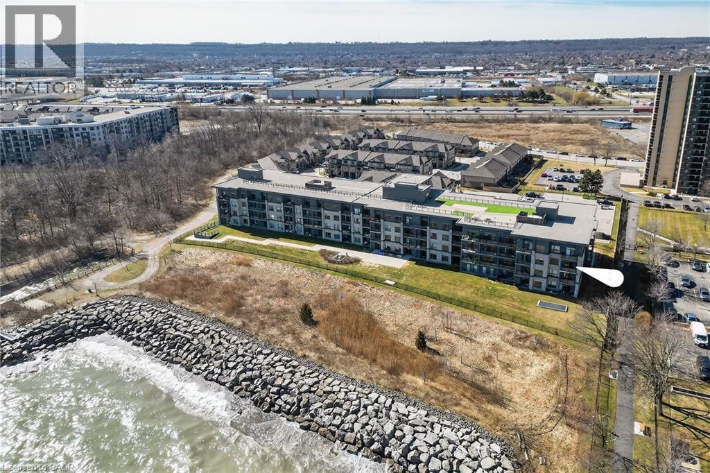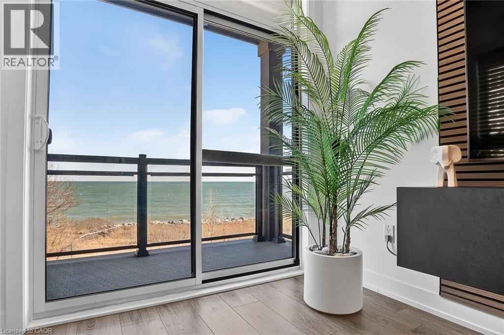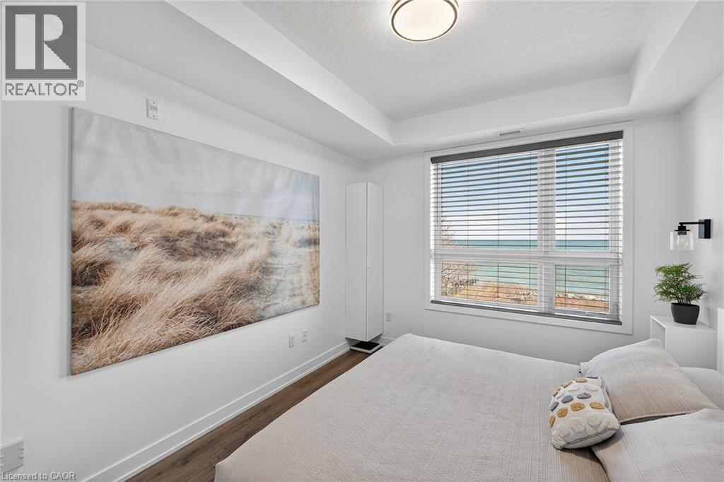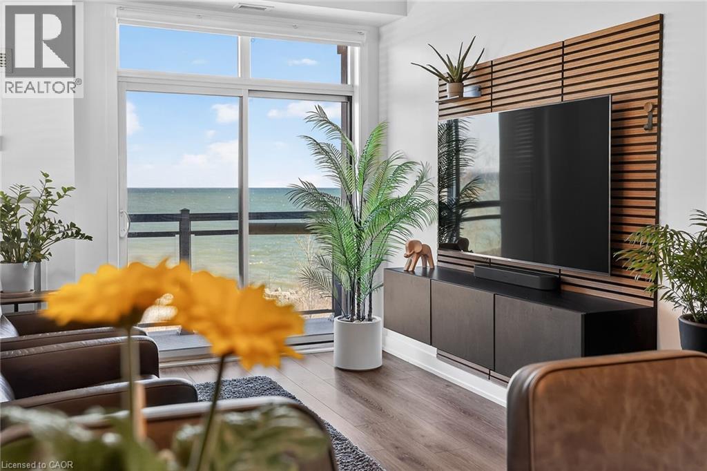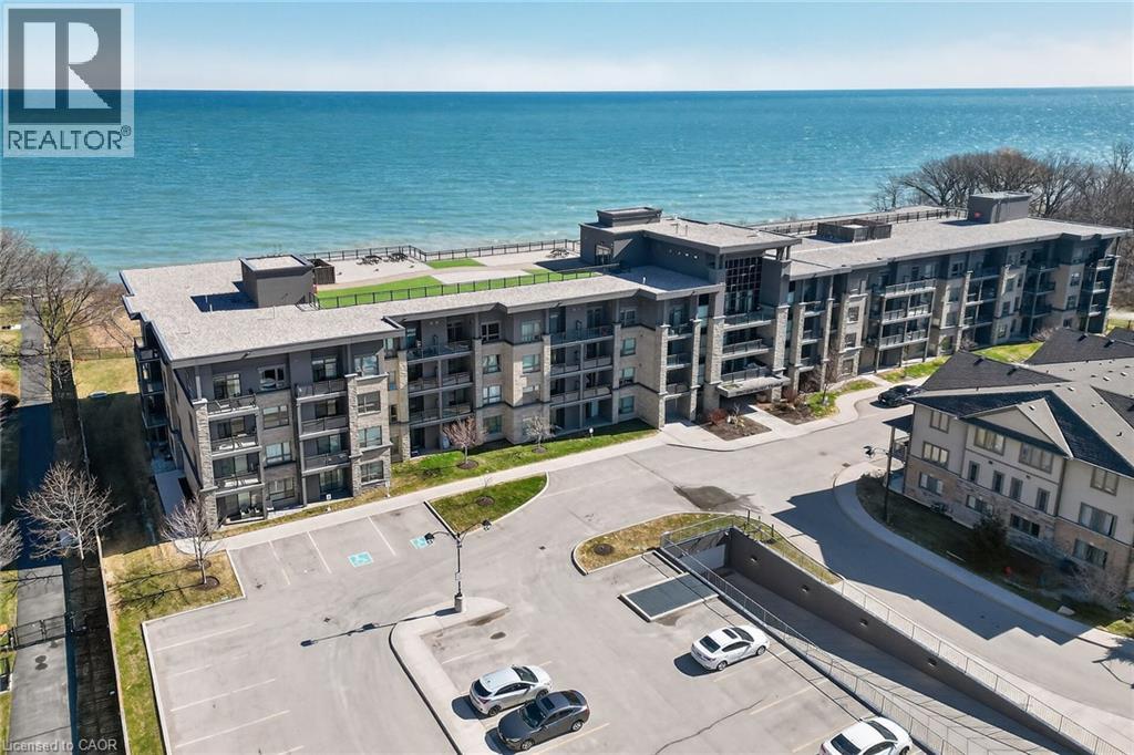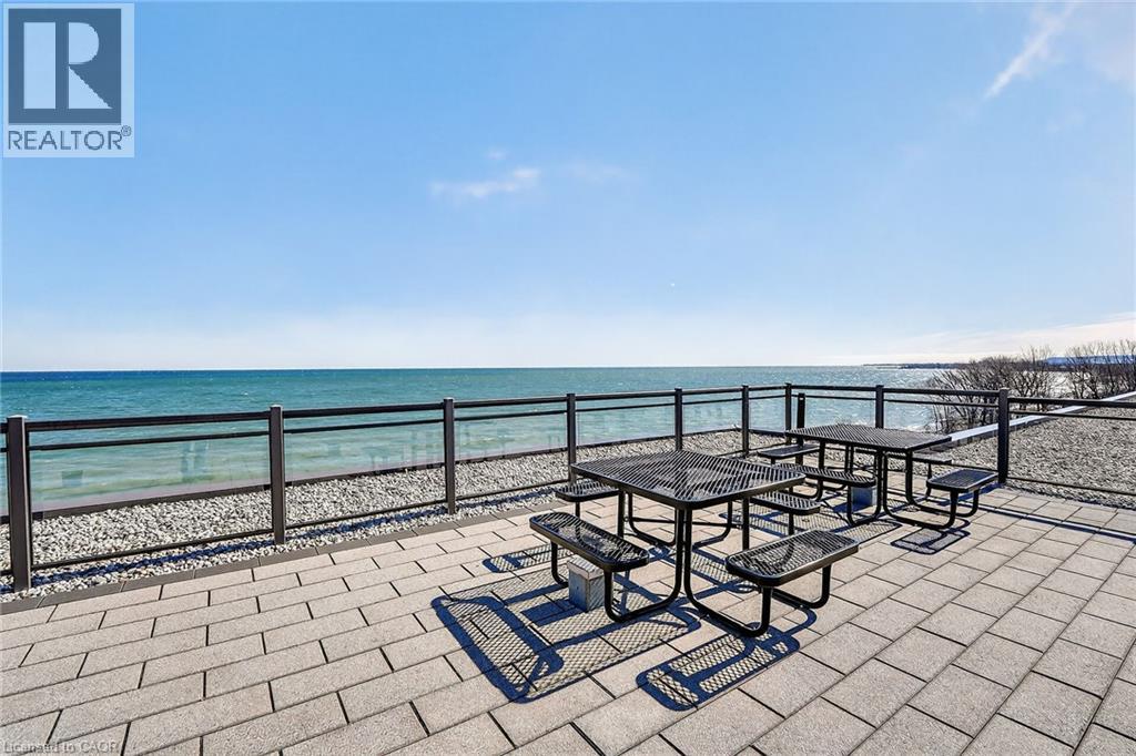 Stunning two-bedroom corner unit boasting unobstructed lake views and stylish, contemporary design and décor. Highlights of this impeccably presented home include private balcony, open concept layout, upgraded Quartz counters, upgraded kitchen backsplash, slatted wall panelling, kitchen island breakfast bar, stainless steel appliances and two exclusive underground parking spaces. Enjoy spacious front entranceway, ample windows, abundant natural light, picturesque sunsets and panoramic year-round Lake Ontario views. Building amenities include elegant lobby, welcoming party room, convenient fitness area, large bicycle storage room and roof top patio with scenic Niagara Escarpment and waterfront views. Perfectly located close to the lake, highway, walking trails and shopping with easy access to Hamilton, Burlington and the Niagara area. (id:64974)
