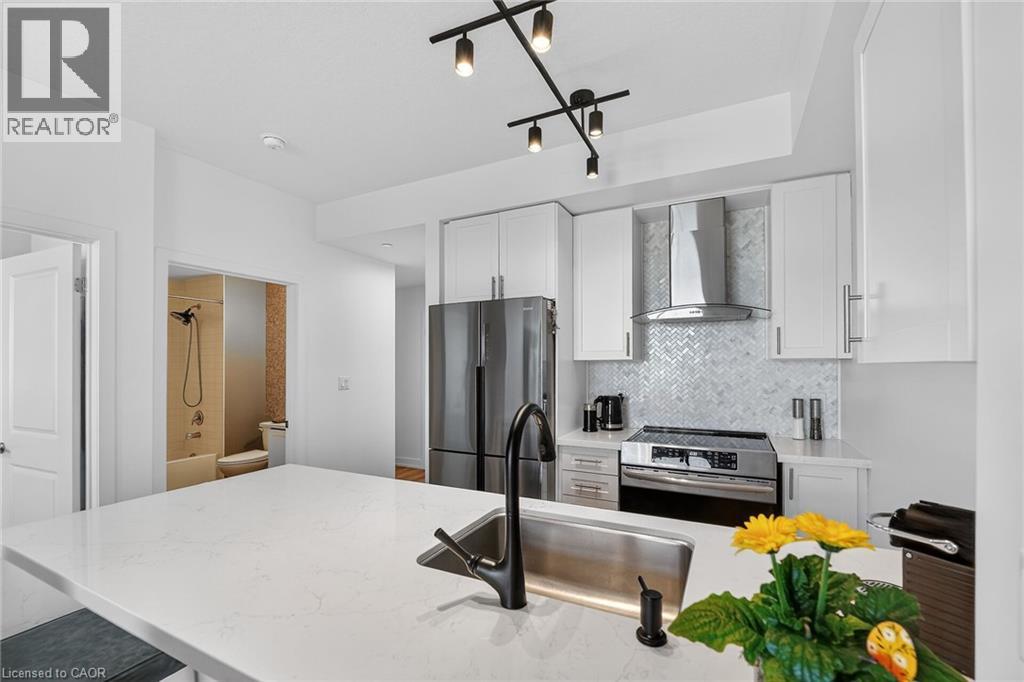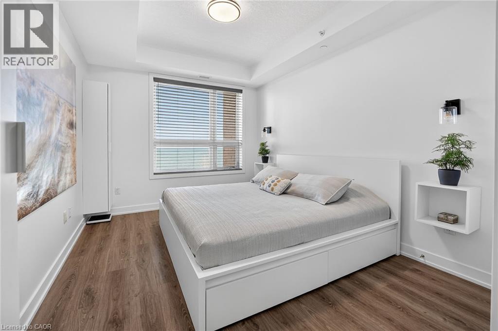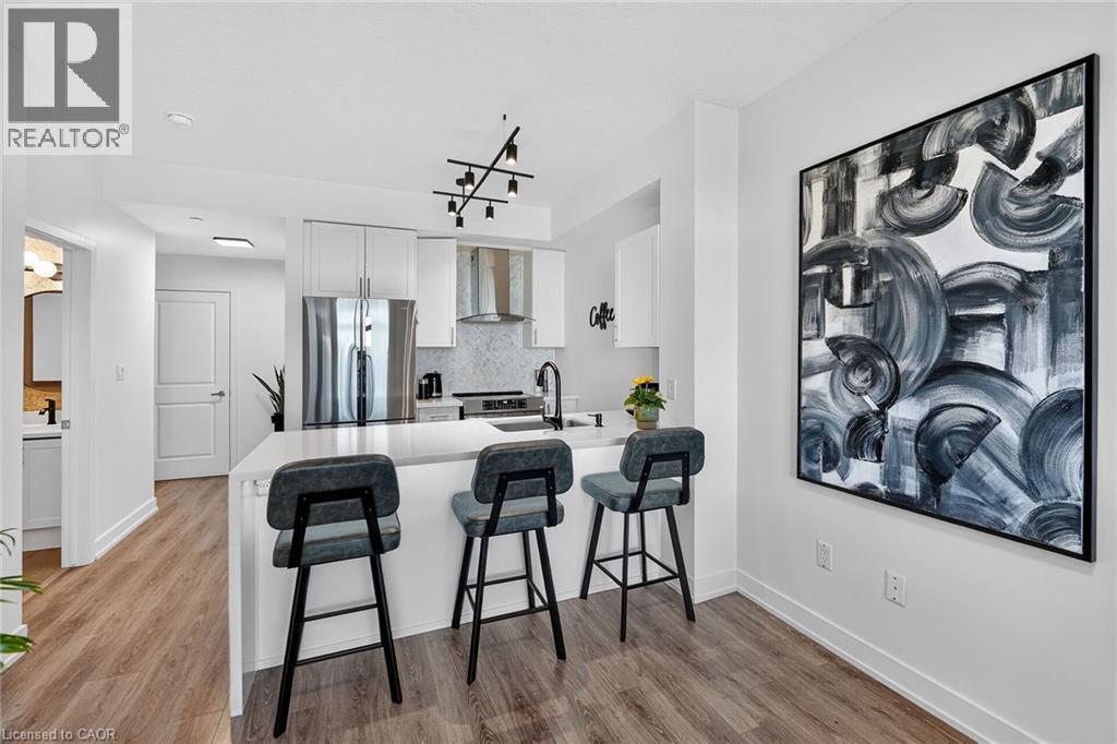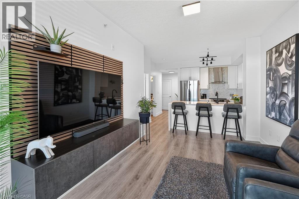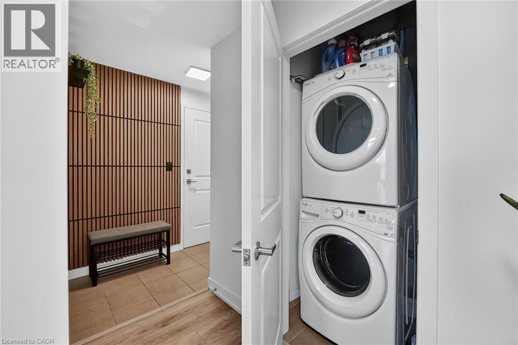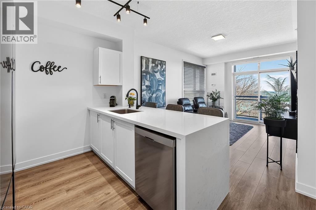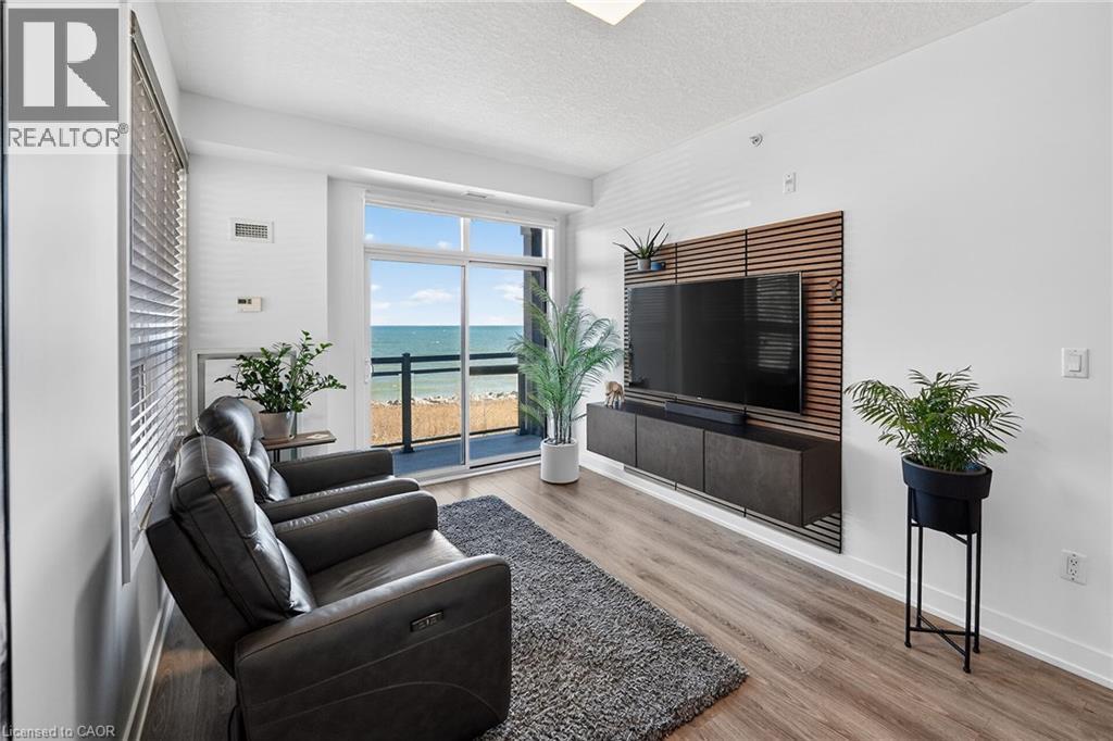 Stunning two-bedroom corner unit boasting unobstructed lake views and stylish, contemporary design and décor. Highlights of this impeccably presented home include private balcony, open concept layout, upgraded Quartz counters, upgraded kitchen backsplash, slatted wall panelling, kitchen island breakfast bar, stainless steel appliances and two exclusive underground parking spaces. Enjoy spacious front entranceway, ample windows, abundant natural light, picturesque sunsets and panoramic year-round Lake Ontario views. Building amenities include elegant lobby, welcoming party room, convenient fitness area, large bicycle storage room and roof top patio with scenic Niagara Escarpment and waterfront views. Perfectly located close to the lake, highway, walking trails and shopping with easy access to Hamilton, Burlington and the Niagara area. (id:64974)