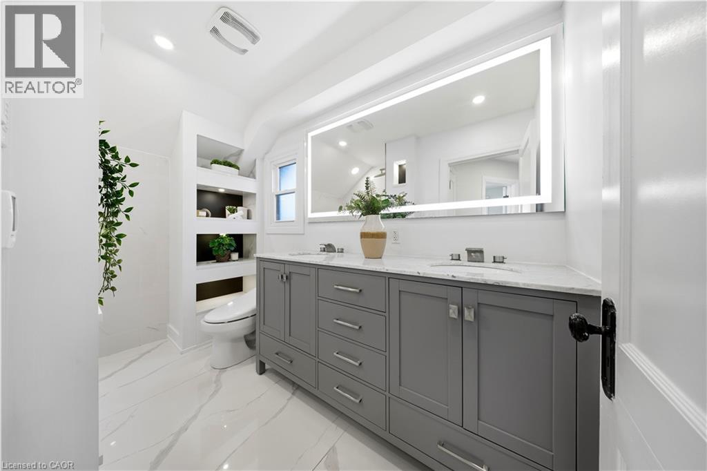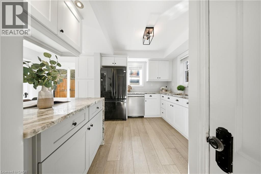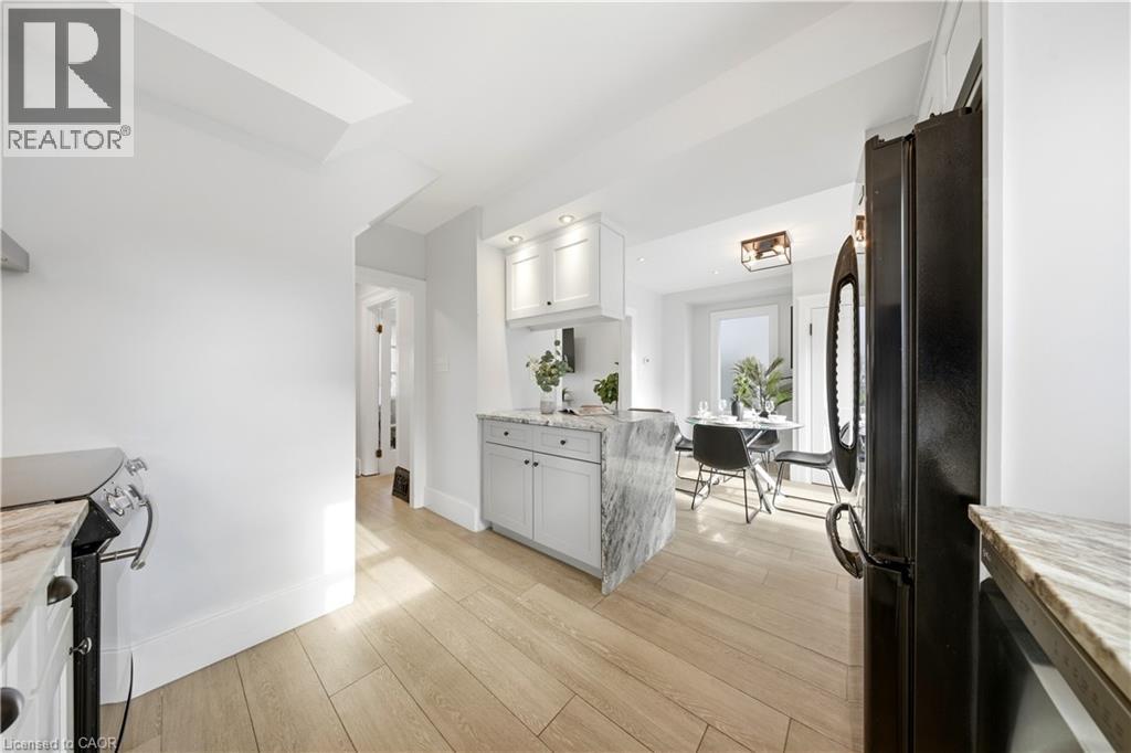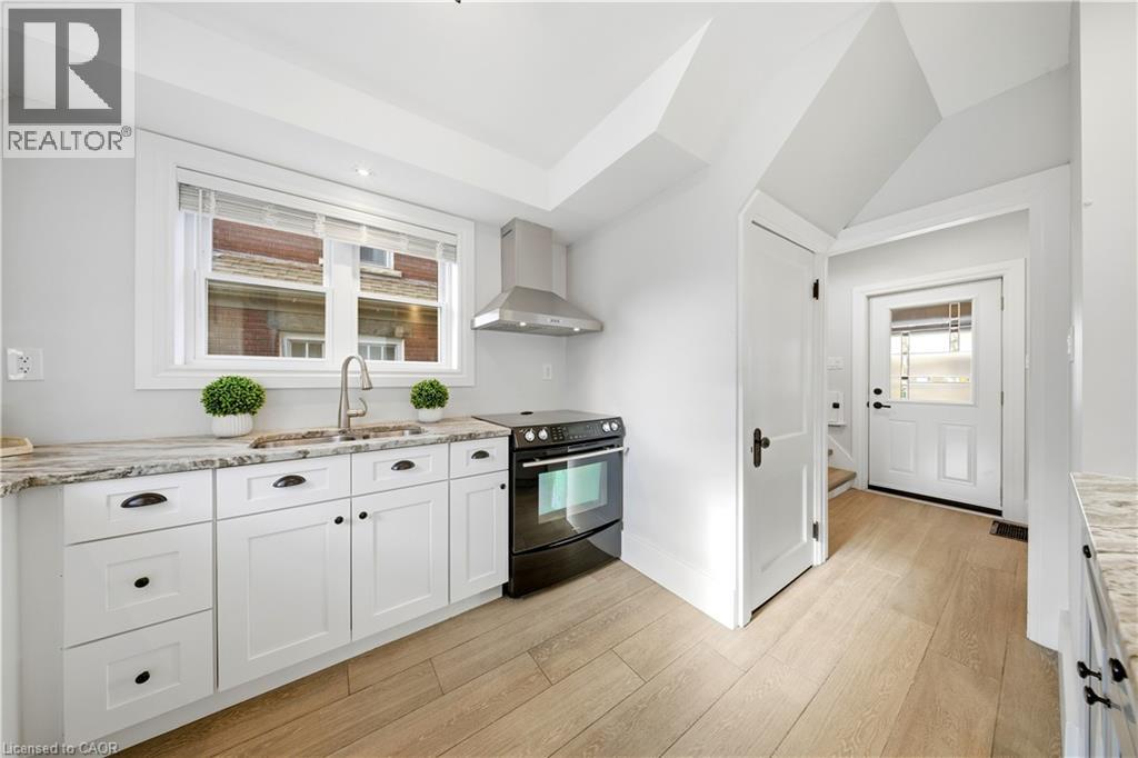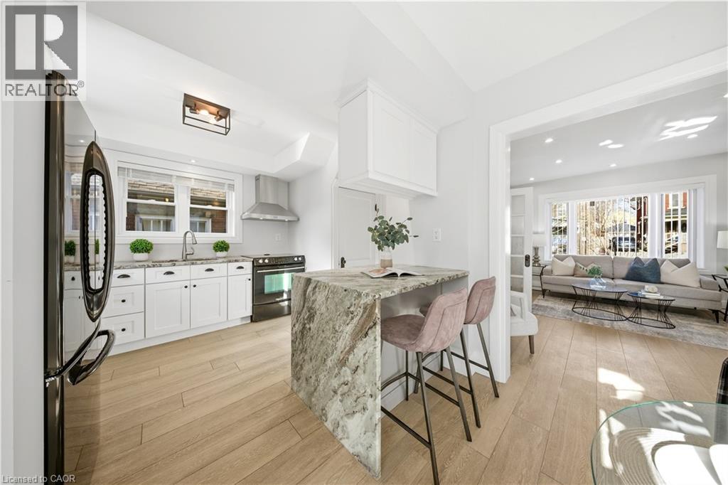 Welcome to this beautifully updated century home in Kitchener’s highly desirable East Ward—where charm, character, and modern updates come together seamlessly. From the moment you arrive, the inviting curb appeal and thoughtfully updated exterior set the tone for a home that truly feels special. Inside, you’ll find a warm and charming layout enhanced by stylish updates, modern finishes, and a fresh, contemporary colour palette. The renovated kitchen (2020) is the heart of the home, featuring a stunning statement island, updated lighting fixtures, and the perfect space for cooking, entertaining, and gathering with family and friends. The home offers 3 bedrooms and 2 bathrooms, including a beautifully updated main bathroom completed in 2024 with luxurious heated floors. Numerous major updates provide peace of mind, including new roof, windows, doors, siding, and the main bathroom—all completed in 2024—as well as a new A/C in 2025. Step outside to enjoy the impressive exterior improvements, highlighted by carefully installed façade lighting and potlights that create a striking look in the evening. The property also features a brand new 15 x 21 garage (2026) with exciting potential—offering room for a workshop and additional storage area in the spacious loft area. An additional 7 x 9 shed provides even more storage and functionality. Perfectly located within walking distance to the LRT stop, Kitchener Farmers’ Market, The Aud, coffee shops, restaurants, local boutiques, parks, and GO Transit, this home combines historic charm with modern convenience in one of the city’s most sought-after neighbourhoods. Move in, unpack, and start enjoying everything this exceptional home has to offer. (id:64974)