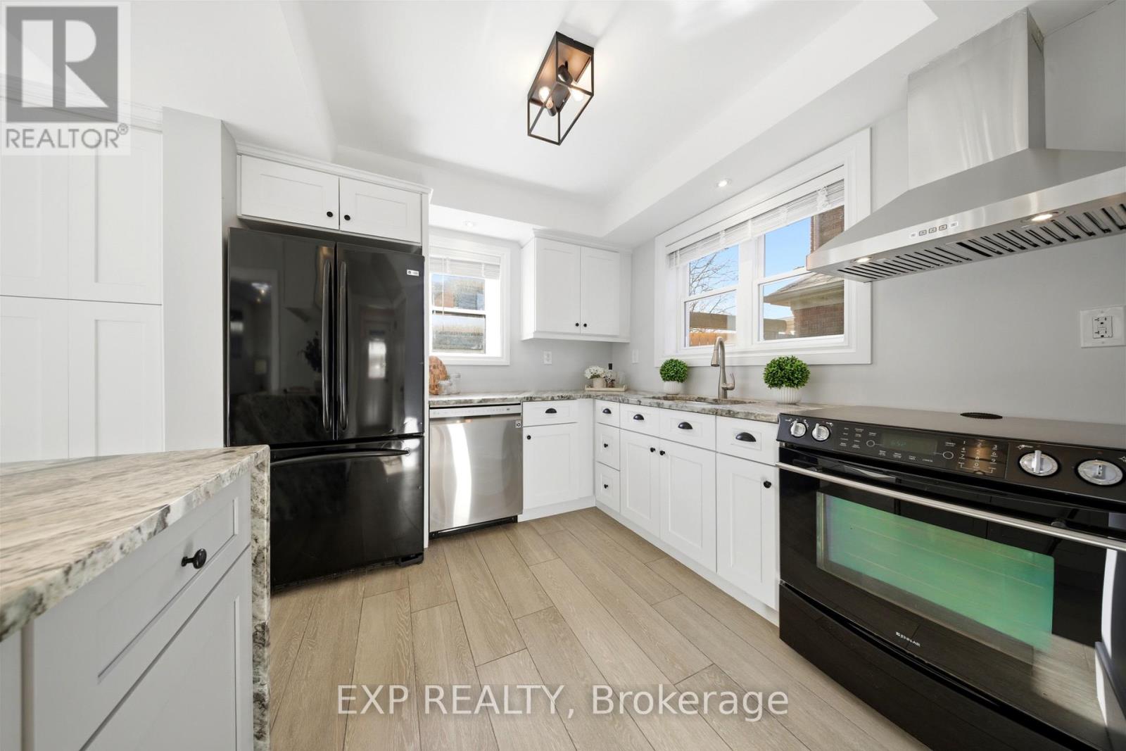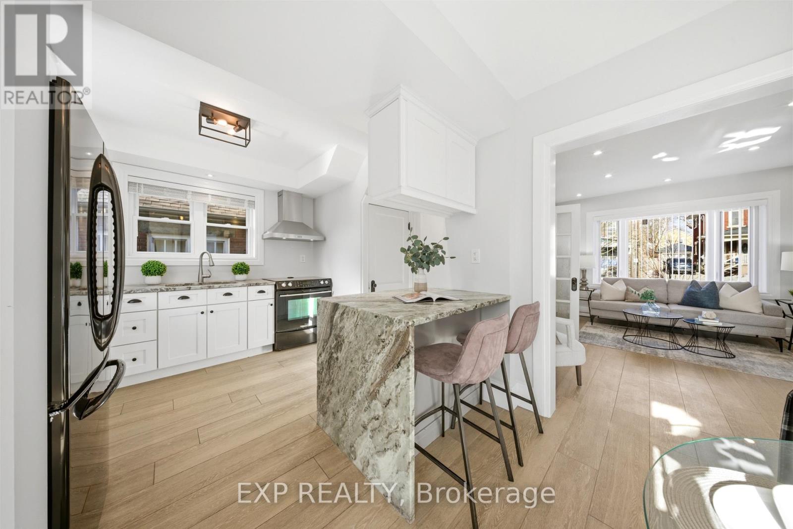 Welcome to this beautifully updated century home in Kitchener's highly desirable East Ward-where charm, character, and modern updates come together seamlessly. From the moment you arrive, the inviting curb appeal and thoughtfully updated exterior set the tone for a home that truly feels special. Inside, you'll find a warm and charming layout enhanced by stylish updates, modern finishes, and a fresh, contemporary colour palette. The renovated kitchen (2020) is the heart of the home, featuring a stunning statement island, updated lighting fixtures, and the perfect space for cooking, entertaining, and gathering with family and friends. The home offers 3 bedrooms and 2 bathrooms, including a beautifully updated main bathroom completed in 2024 with luxurious heated floors. Numerous major updates provide peace of mind, including new roof, windows, doors, siding, and the main bathroom-all completed in 2024-as well as a new A/C in 2025. Step outside to enjoy the impressive exterior improvements, highlighted by carefully installed façade lighting and potlights that create a striking look in the evening. The property also features a brand new 15 x 21 garage (2026) with exciting potential-offering room for a workshop and additional storage area in the spacious loft area. An additional 7 x 9 shed provides even more storage and functionality. Perfectly located within walking distance to the LRT stop, Kitchener Farmers' Market, The Aud, coffee shops, restaurants, local boutiques, parks, and GO Transit, this home combines historic charm with modern convenience in one of the city's most sought-after neighbourhoods. Move in, unpack, and start enjoying everything this exceptional home has to offer. (id:64974)