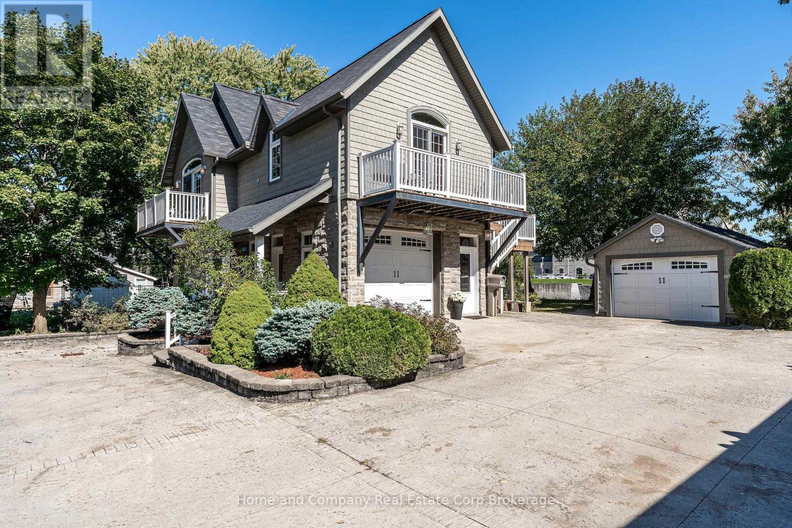 Welcome to 35 Thomas St, St. Marys! Nestled along the Thames River, this unique home showcases the incredible location and offers the perfect blend of easy living and space for all of your hobbies. The main floor is home to an extraordinary shop with 2-piece bath, which could also make a perfect game or recreation room. The second attached garage is oversized and perfect for your toys, hobbies or even your RV. Make your way up to the second floor, where you have extensive river views and light shining in from all angles. The primary bedroom is spacious with double closets, a private balcony and semi en-suite access to the main bath. The second bedroom is just down the hall and features a walk-in closet and a charming private balcony as well. The living spaces are open and bright, with a cozy gas fireplace, 2 additional balconies and more incredible views. This home boasts beautifully landscaped gardens, second level laundry and parking for you and all of your friends, including an additional detached single garage, and all conveniently located just steps to the charming downtown. For more information or to schedule a private viewing, contact your favourite REALTOR today! (id:64974)