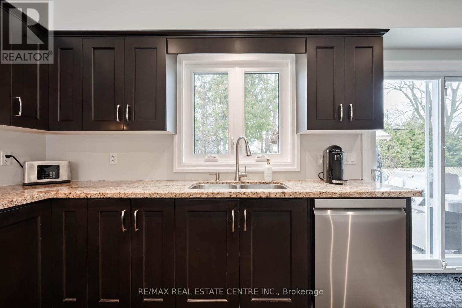 "Treleaven Haven" at 35 Treleaven Dr puts you on a quiet, mature, tree-lined street in Downtown Brampton, where the setting feels tucked away, but you stay close to everything. Parks and trails sit nearby, with the Etobicoke Creek Recreational Trail and Fletcher's Creek just a short walk away. Inside, this tastefully modernized, move-in ready 3+1 bedroom detached home offers 3 bathrooms, large windows, and tons of natural light over hardwood and ceramic floors. The remodeled kitchen keeps everyone together with a generous peninsula, stone counters, and smart storage. Recent improvements include updated flooring, counters, vanities, tile, lighting and plumbing fixtures, and modern hardware. Upstairs, the spacious primary gives you double closets, and the additional bedrooms work for kids, guests, or a home office. Downstairs, the finished basement adds real flexibility with a large rec room, a fourth bedroom, laundry, and a 3-piece bath with large shower. Use it for guests, teens, a home office, or your next project space. The home offers 2000 sq ft of finished living space with a layout that works for first-time buyers, growing families, and downsizers alike. Out back, your 78-foot-wide lot turns into a private summer hangout with an in-ground saltwater pool, cabana, and a clean, professionally finished yard. The full-size glass garage door to the backyard makes pool days easy and doubles as a flexible summer space. And when you want to get around, you can leave the car at home. You are a short walk or drive to the Brampton Downtown GO Station, close to rapid transit routes, and minutes to shops, dining, and everyday essentials in the Downtown core. (id:64974)