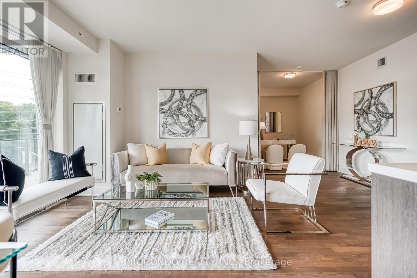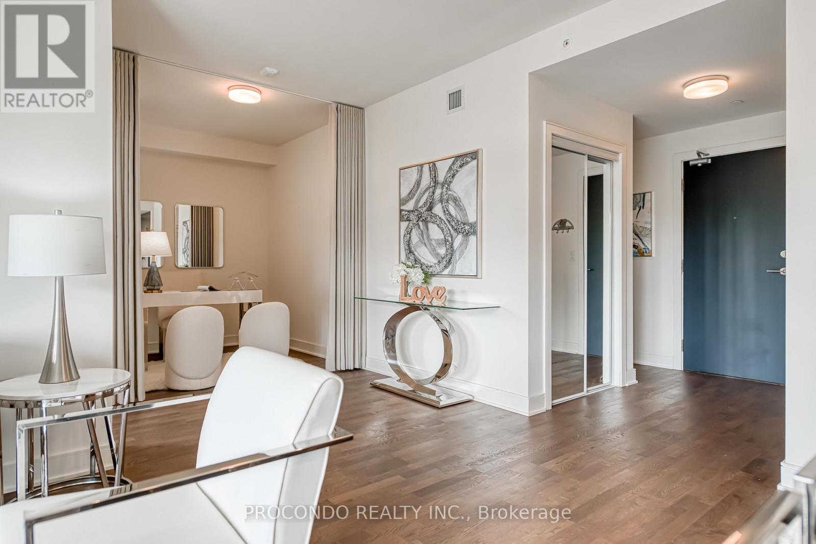 One of the biggest floorplan in the building in the Craftsman with its exclusivity & high-end finishes. Luxurious Upgrades, 9 Ft Ceilings Throughout, Engineered Hardwood Floors, Quartz Counters In Kitchen & Washrooms, Oversized Windows And More. Enjoy The Stunning Southern Views And Fall In Love With Its 235 Sqft Balcony. Practical living room layout with space for a large sectional sofa & more. The nearly 1,300 sq ft interior gives you the space of feeling like living in a townhouse but enjoying the convenience of living in a condo at the same time. The split-bedroom layout ensures privacy, with a spacious second bedroom and full bath on one side, and a primary retreat on the other. The den provides extra utility space, large enough for a 3rd bedroom or office. This suite is 10 steps away from the elevator, providing quick & convenient exits & entries. Plus additional storage is located steps from the front door as the locker is just down the hallway & the 2 side-by-side premium parking spots. Close Proximity To Lake Ontario, Public Transit And Go. Stunning Amenities! (id:64974)