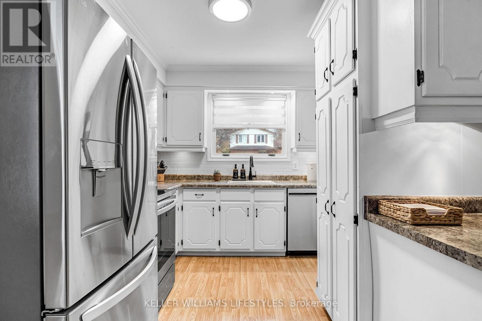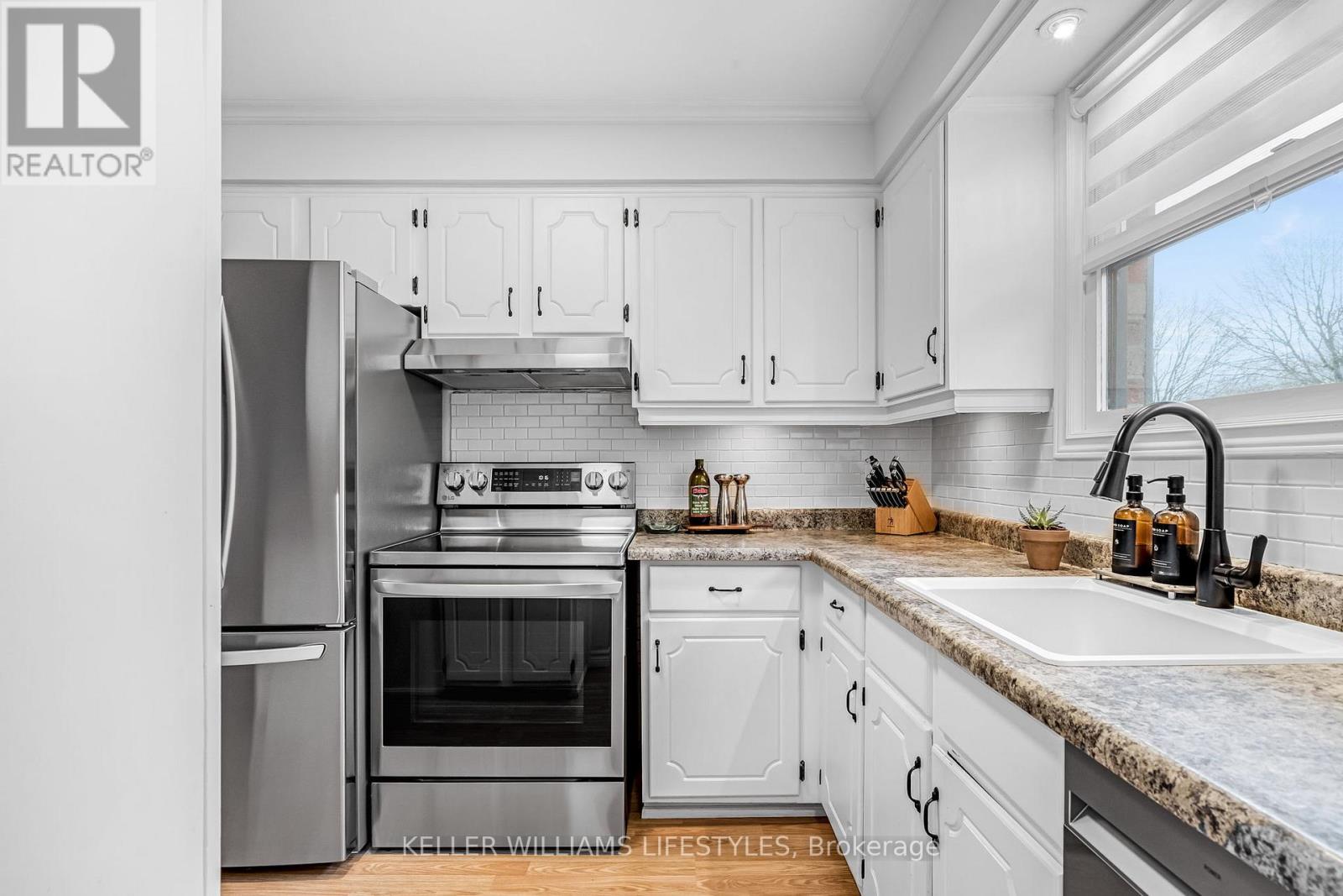 Welcome to this updated 4-bedroom backsplit offering a great layout and plenty of space for everyday living. Freshly painted throughout and featuring all new appliances, this move-in ready home is perfect for families or anyone looking for a comfortable, low-maintenance space. The main level features bright living and dining areas and an updated kitchen with modern finishes and new appliances. Upstairs you'll find three good-sized bedrooms and a full bathroom, while the lower level adds extra flexibility with a fourth bedroom, second bathroom, and a cozy family room - ideal for relaxing, guests, or a home office. Conveniently located close to shopping, amenities, and everyday essentials, with easy access to 400-series highways for an easy commute. A solid home in a great location, ready for its next owners to move in and enjoy. (id:64974)