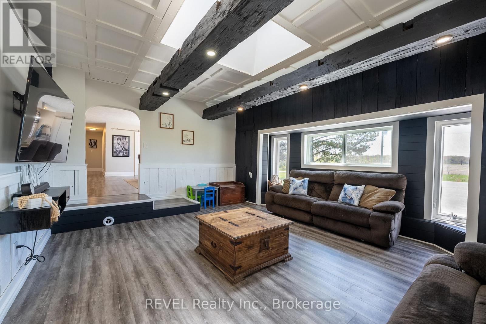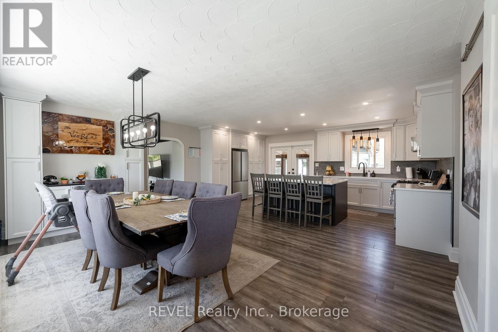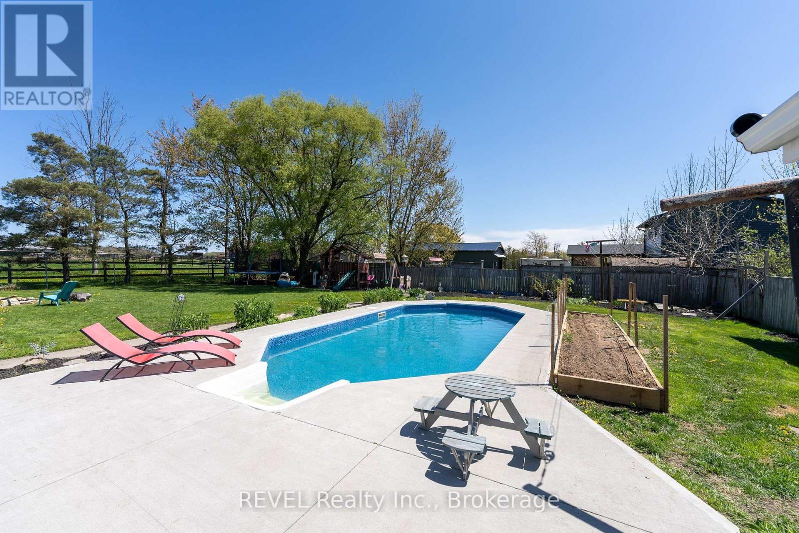 Privacy, serenity, and unmatched convenience Await You! Nestled along a scenic country road, this beautifully updated sprawling bungalow offers the perfect blend of peaceful rural living and easy access to city amenities. Set on approximately half an acre, the property features a stunning backyard oasis complete with a sparkling in-ground pool and multiple patio areas ideal for outdoor entertaining or quiet relaxation. Step inside to discover an open-concept layout that effortlessly combines style and functionality. The updated eat-in kitchen is a chefs dream, boasting elegant countertops, ample cabinetry, and seamless flow into both the spacious family room and the expansive three season sunroom an ideal space for hosting gatherings or enjoying morning coffee with a view. The home also includes tastefully renovated bathrooms, an updated cistern and concrete porch/patio, offering peace of mind and modern comfort. For hobbyists or those in need of extra storage, the impressive 42' x 30' workshop is a dream come true. All this privacy and tranquility is just five minutes from the QEW and the heart of town giving you the best of both worlds. Don't miss your chance to experience the charm of country living without sacrificing convenience! (id:64974)