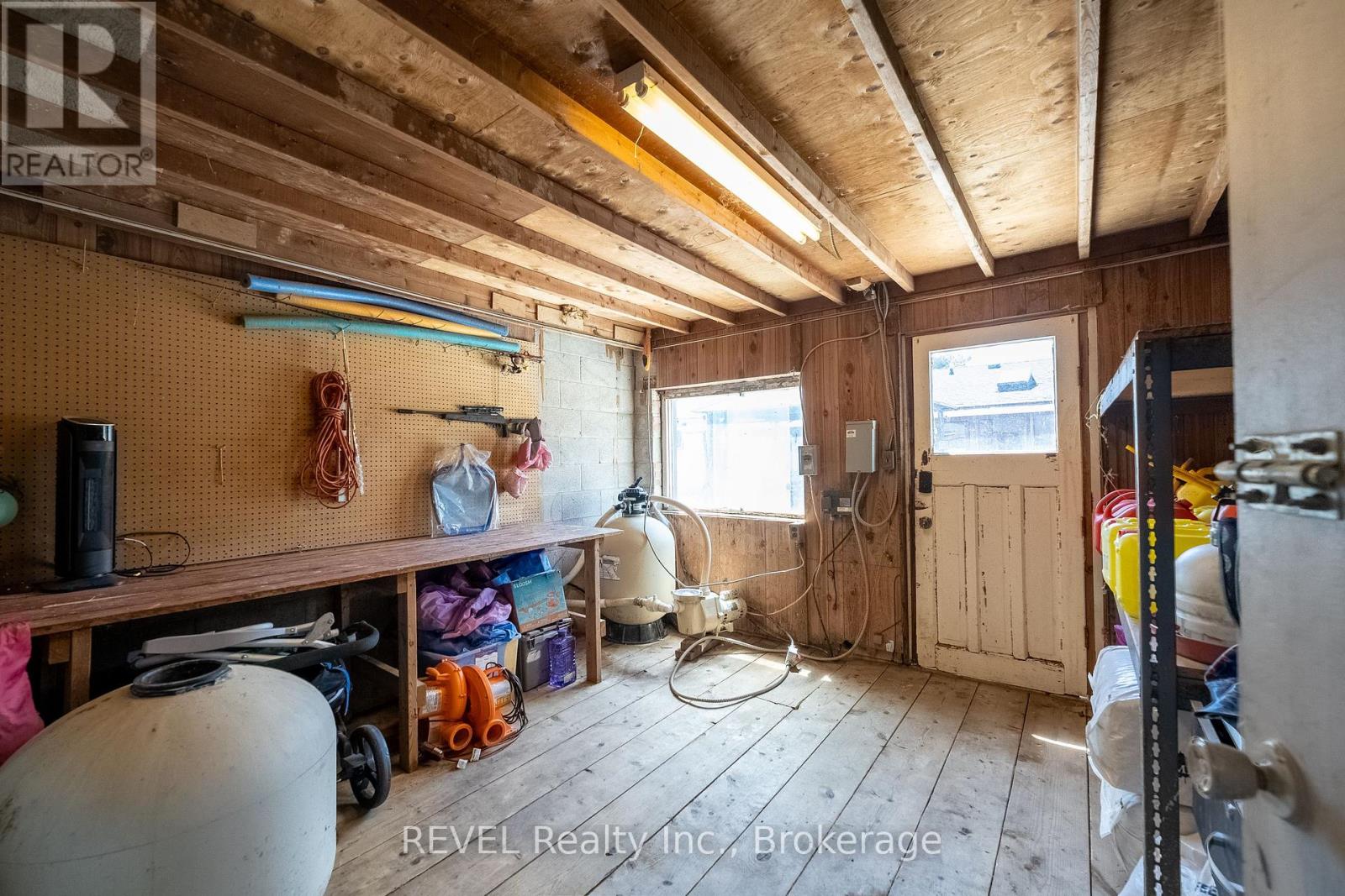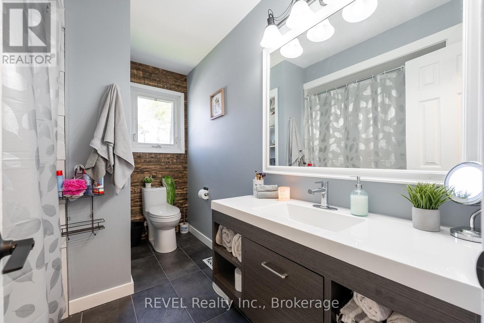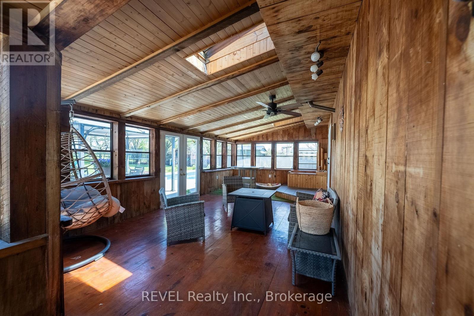 Privacy, serenity, and unmatched convenience Await You! Nestled along a scenic country road, this beautifully updated sprawling bungalow offers the perfect blend of peaceful rural living and easy access to city amenities. Set on approximately half an acre, the property features a stunning backyard oasis complete with a sparkling in-ground pool and multiple patio areas ideal for outdoor entertaining or quiet relaxation. Step inside to discover an open-concept layout that effortlessly combines style and functionality. The updated eat-in kitchen is a chefs dream, boasting elegant countertops, ample cabinetry, and seamless flow into both the spacious family room and the expansive three season sunroom an ideal space for hosting gatherings or enjoying morning coffee with a view. The home also includes tastefully renovated bathrooms, an updated cistern and concrete porch/patio, offering peace of mind and modern comfort. For hobbyists or those in need of extra storage, the impressive 42' x 30' workshop is a dream come true. All this privacy and tranquility is just five minutes from the QEW and the heart of town giving you the best of both worlds. Don't miss your chance to experience the charm of country living without sacrificing convenience! (id:64974)