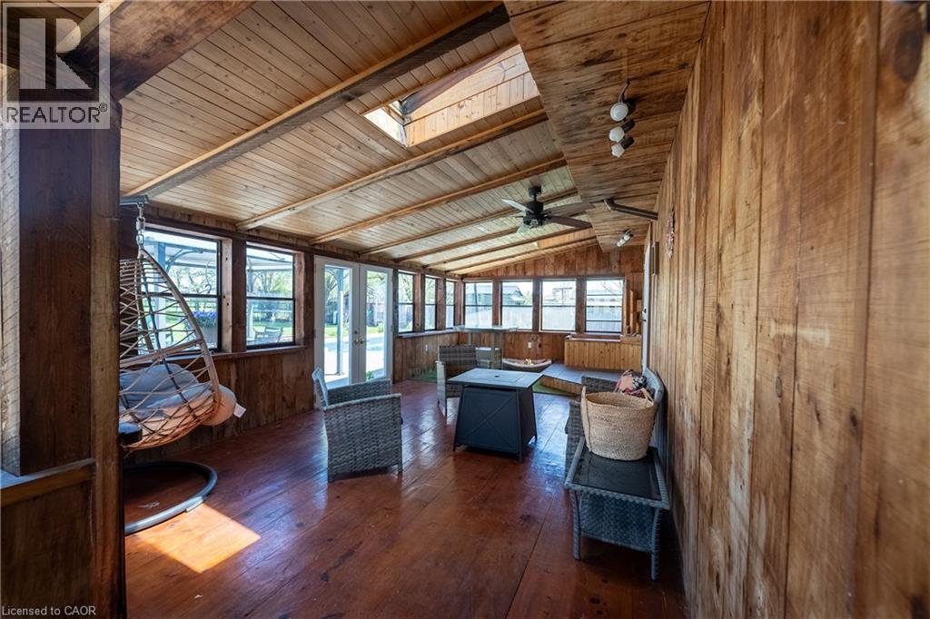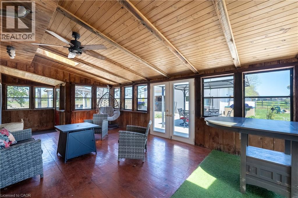Privacy, serenity, and unmatched convenience Await You! Nestled along a scenic country road, this beautifully updated sprawling bungalow offers the perfect blend of peaceful rural living and easy access to city amenities. Set on approximately half an acre, the property features a stunning backyard oasis complete with a sparkling in-ground pool and multiple patio areas ideal for outdoor entertaining or quiet relaxation. Step inside to discover an open-concept layout that effortlessly combines style and functionality. The updated eat-in kitchen is a chefs dream, boasting elegant countertops, ample cabinetry, and seamless flow into both the spacious family room and the expansive three season sunroom an ideal space for hosting gatherings or enjoying morning coffee with a view. The home also includes tastefully renovated bathrooms, an updated cistern and concrete porch/patio, offering peace of mind and modern comfort. For hobbyists or those in need of extra storage, the impressive 42' x 30' workshop is a dream come true. All this privacy and tranquility is just five minutes from the QEW and the heart of town giving you the best of both worlds. Don't miss your chance to experience the charm of country living without sacrificing convenience! (id:64974)