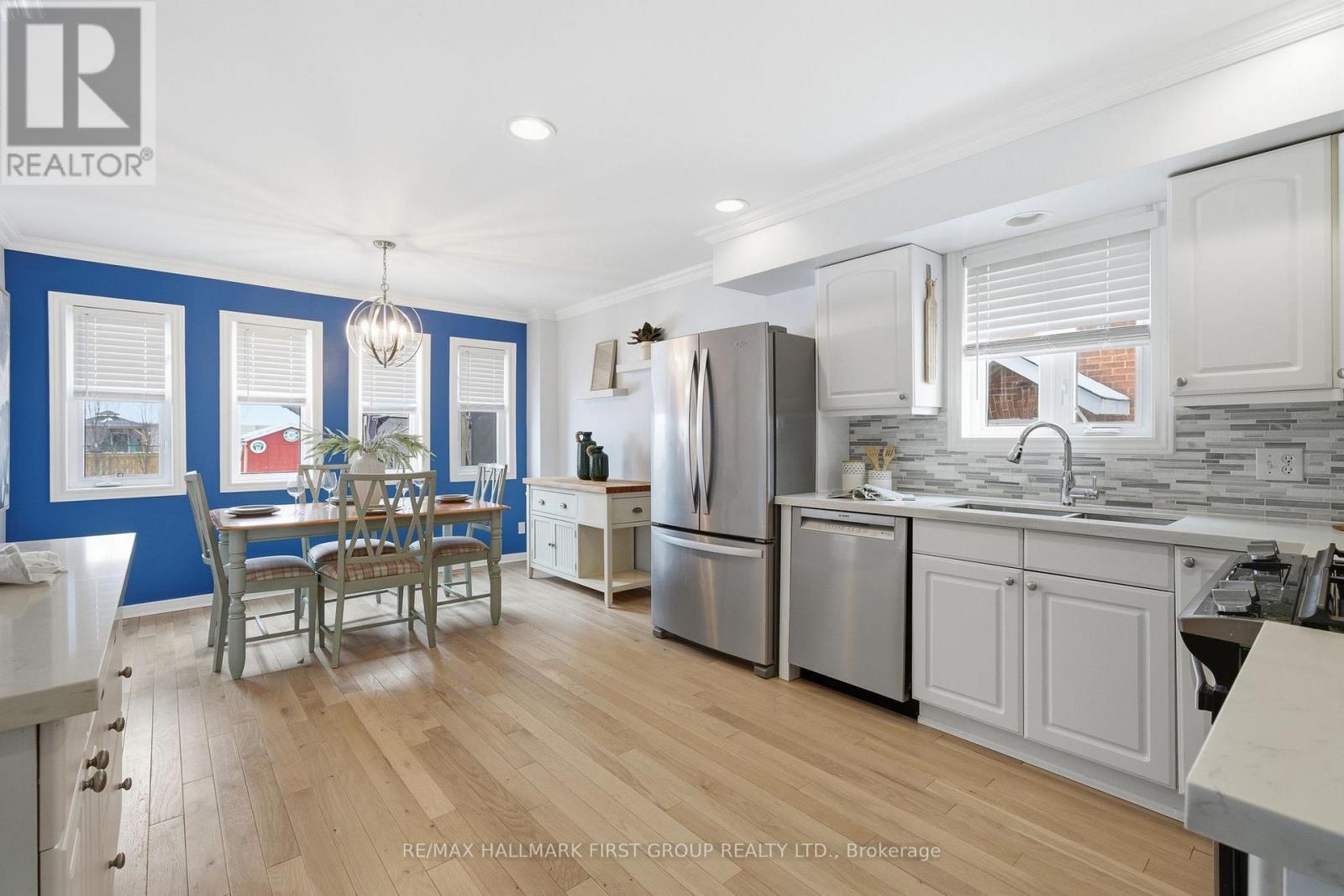 Ideally located in the heart of Cobourg, just minutes from the vibrant downtown core, waterfront, beach, parks, and everyday amenities. Enjoy morning walks to the lake and all this charming community has to offer. A welcoming front porch provides the perfect spot for your morning coffee or evening unwind. This well-maintained, updated two-storey home offers a functional layout with 3 bedrooms and 3 bathrooms-ideal for families or those seeking flexible living space. The bright living room is filled with natural light, anchored by a cozy gas fireplace, creating a comfortable space for relaxing or entertaining. Hardwood flooring flows throughout, adding warmth and a cohesive modern touch. The spacious kitchen is designed for both everyday living and entertaining, featuring quartz countertops, stylish tile finishes, and a full stainless steel appliance package. Open to a bright dining area, it offers excellent flow for hosting and family meals. Upstairs, the bedrooms are well-sized and versatile, perfect for family living. The 4-piece bathroom includes convenient semi-ensuite access from the primary bedroom and upper hallway. A functional large rear entry includes bench, coat storage, and a 2-piece bath, providing practical organization and easy backyard access-ideal for pets and daily use. Step outside to a generous, fully fenced backyard with space for entertaining, gardening, or relaxing. Enjoy the deck, gazebo w/ screens, two storage sheds, and an additional attached shed at the rear of the driveway for added convenience. Garage plans available. The finished basement extends the living space with a spacious recreation room featuring plush broadloom, a thoughtfully designed laundry room, modern 3-piece bath, and a separate utility room. Additional features: central vac rough-in & economical utilities. An exceptional opportunity to own a move-in ready home in one of Cobourg's most desirable locations-offering comfort, lifestyle, and long-term value. (id:64974)