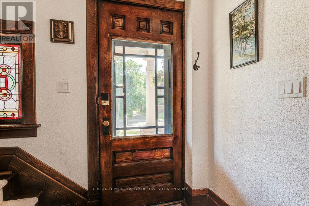 350 Queen Street S is a rare & beautifully restored century home just one block from Victoria Park, steps to the heart of downtown Kitchener, blending timeless charm with modern refinement. Inside, the home's historic character shines through original doors, rich hardwood floors, intricate millwork, and exquisite stained-glass windows. The elegant living room, centered around a cozy gas fireplace, flows effortlessly into the formal dining room. Original pocket doors offer the option of privacy while preserving the home's classic appeal. The heart of the home-the kitchen-has been thoughtfully updated with white granite countertops, custom cabinetry, and high-end stainless steel appliances, including a gas stove, warming drawer, trash compactor, under-counter bar fridge, and heated floors for an added touch of luxury. Upstairs, the second level features three generous bedrooms, including a peaceful primary suite with large windows and abundant natural light. The spa-inspired main bathroom includes double sinks, quartz countertops, a soaker tub, and a walk-in shower. A convenient second-floor laundry room enhances everyday functionality. The third-floor loft has been completely reimagined as a stylish and versatile in-law suite, complete with a modern kitchenette, cozy living area, a beautifully appointed bathroom with stacked subway tile and a floating wood vanity, and an additional bedroom offering privacy for guests or extended family. Outside, the private backyard retreat is designed for low-maintenance enjoyment, showcasing a built-in BBQ with black granite counters, a pergola, and lush, refined landscaping. A full-height basement with a separate entrance presents exciting potential for added living space, a home office, or another in-law suite. Meticulously upgraded with new windows, new boiler system, extensive exterior improvements, restored staircases, a fully renovated kitchen and loft, and a complete electrical update- this one-of-a-kind! (id:64974)