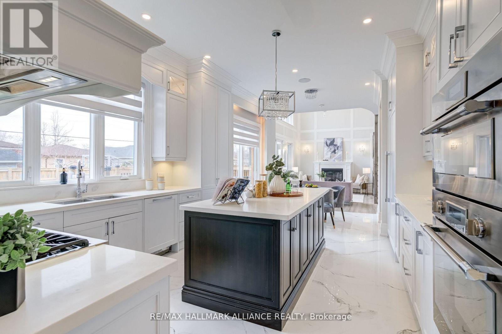Priced To Sell. This breathtaking custom built residence nestled on a quiet interior street in sought after South Oakville. Offering over 3,300 sq ft of luxurious above grade living space plus a fully finished basement suite complete with a full kitchen, full bathroom, and stone finished walk up, this home delivers exceptional flexibility and value. Soaring 10 foot ceilings on the main level and 9 foot ceilings on both the second floor and basement create an immediate sense of scale and elegance. The kitchen overlooks a dramatic 20 foot open to above family room, forming a striking focal point ideal for everyday living and entertaining.Expansive, sun filled principal rooms flow seamlessly throughout the home and are enhanced by coffered ceilings and refined moldings. At the heart of the home is a chef inspired kitchen featuring a premium Thermador appliance package, custom cabinetry, and a walk in pantry with a dedicated server room, thoughtfully designed for both function and sophistication.A formal dining room and a sophisticated home office further elevate the home's versatility. The serene primary suite offers a private retreat with a walk in closet and a spa inspired ensuite showcasing a deep soaker tub, glass enclosed shower, and a glass wrapped private balcony with tranquil views and exceptional privacy. The second bedroom includes its own ensuite, while the third and fourth bedrooms share a well appointed Jack and Jill bathroom. A generous second floor laundry room adds everyday convenience.Ideally located just steps from Lake Ontario and only a two minute drive to the prestigious Appleby College, this exceptional home offers unmatched access to top tier schools, scenic waterfront trails, and Oakville's finest amenities. Whether you are searching for a forever family home or a luxury investment, this one of a kind property presents an exceptional blend of location, lifestyle, and refined living. (id:64974)
