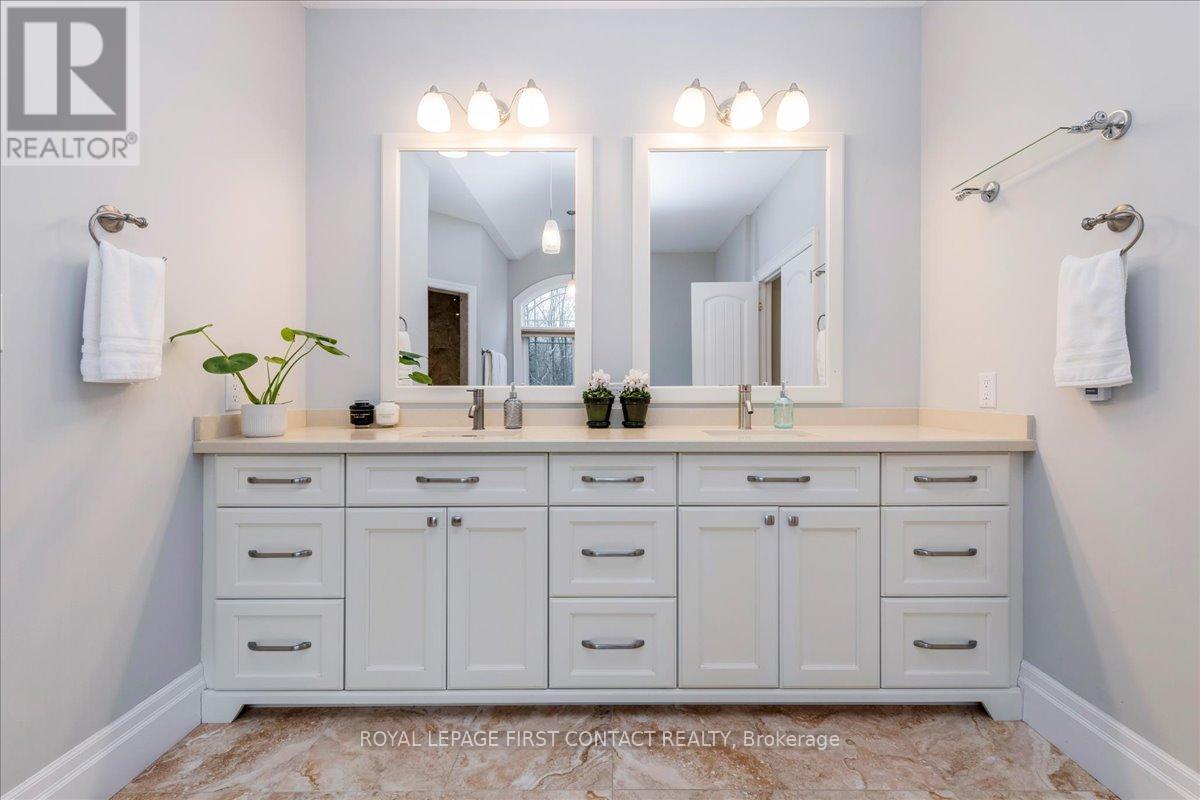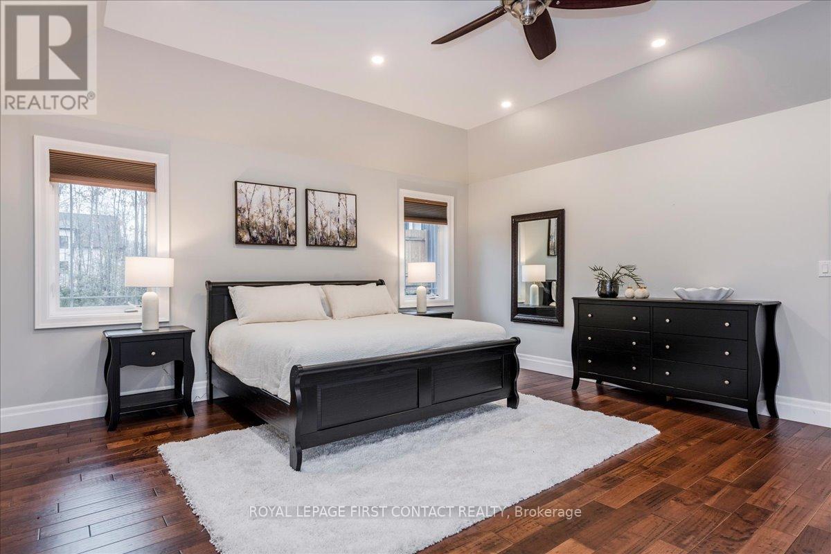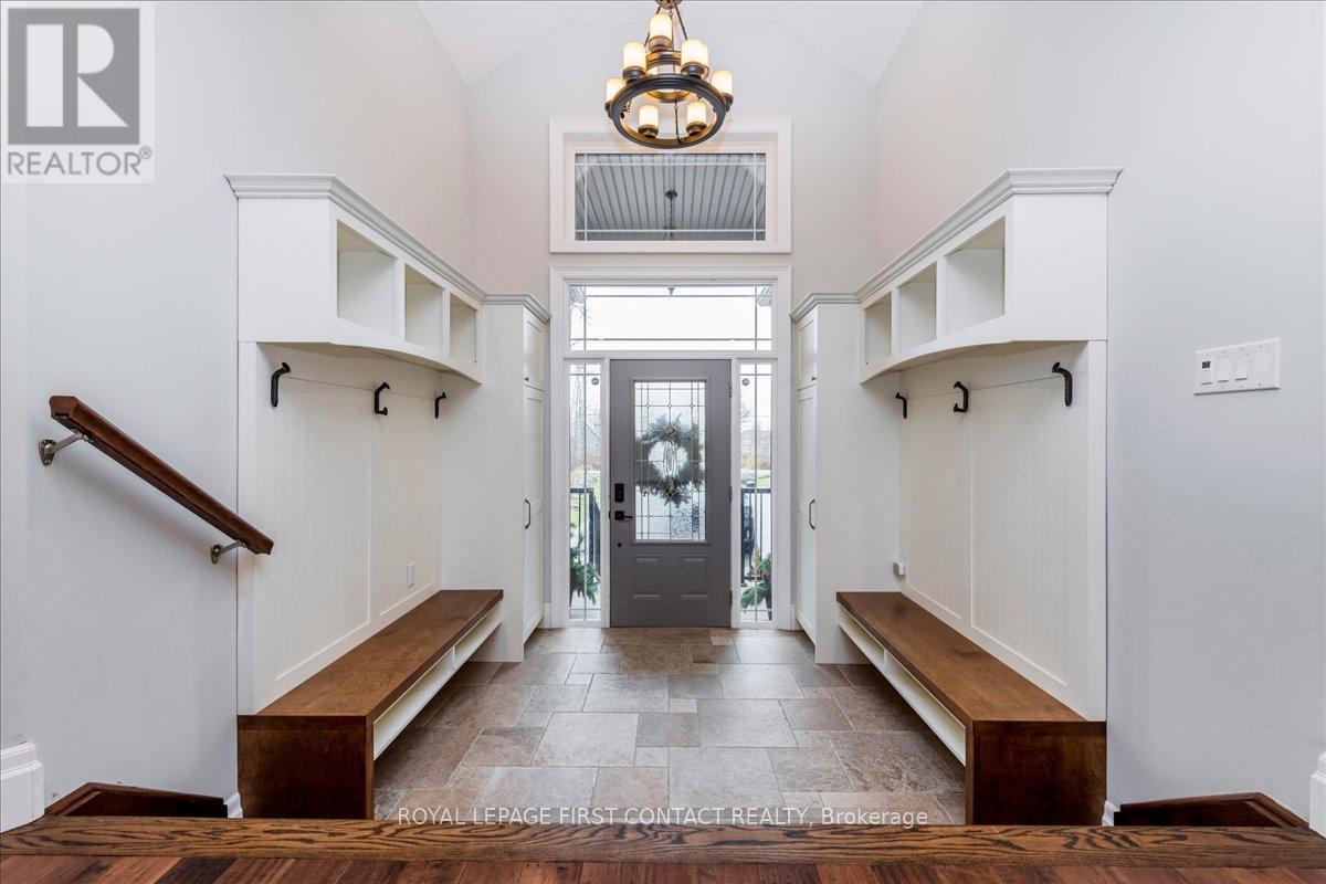 Nestled steps from the shimmering shores of Lake Simcoe, this exceptional estate invites you to experience a lifestyle defined by tranquility, sophistication, and nature. Set on a deep, beautifully treed lot, this home blends refined craftsmanship with a warm, inviting, comfort-creating residence that feels like a private sanctuary. The residence is a custom-crafted bungalow estate that blends stone, wood, and expansive glass into a warm modern retreat. The home sits on approximately two private acres in an exclusive Lake Simcoe community steps from the lake. The interior offers over 4300 SQFT above grade, featuring vaulted ceilings, wide-plank hardwood floors, and sun-filled rooms designed around peaceful forest views. The gourmet kitchen includes custom cabinetry, an oversized granite island, premium appliances, and a window-wrapped dining area with direct deck access. The great room showcases a statement stone fireplace, arched picture windows, and an open-concept layout ideal for everyday living and entertaining. The outdoor living space features a covered lounge deck, expansive yard, and natural rock landscaping nestled among the trees. The property includes 5 spacious bedrooms, multiple living areas, and a serene loft offering flexible use. A 3-car garage paired with an oversized driveway provides parking for 10 vehicles, making it perfect for gatherings, hobbies, or large families. This lakeside estate delivers privacy, craftsmanship, and year-round luxury living in one exceptional retreat. (id:64974)